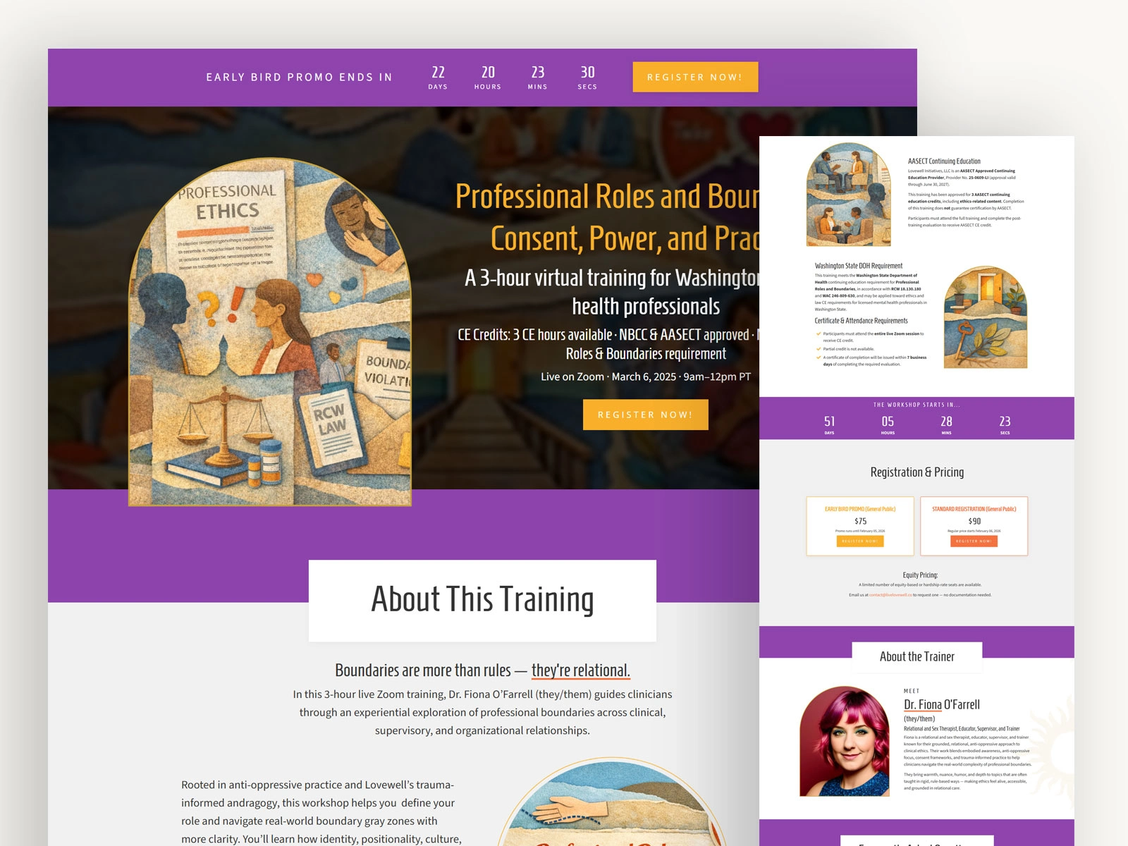 This project focuses on creating a registration page for a 3-hour virtual training with an Early Bird option. The goal is to clearly communicate the training’s purpose, audience, and value while making the registration process simple, engaging, and easy to navigate.