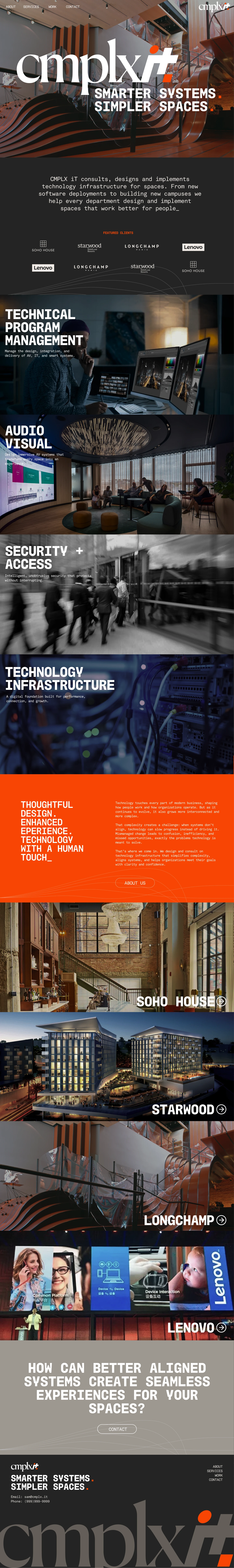 CMPLX iT is a technology consultancy that specializes in designing, consulting, and implementing technology infrastructure for physical spaces. Their work spans everything from targeted software deployments to the planning and execution of fully integrated, large-scale campuses.