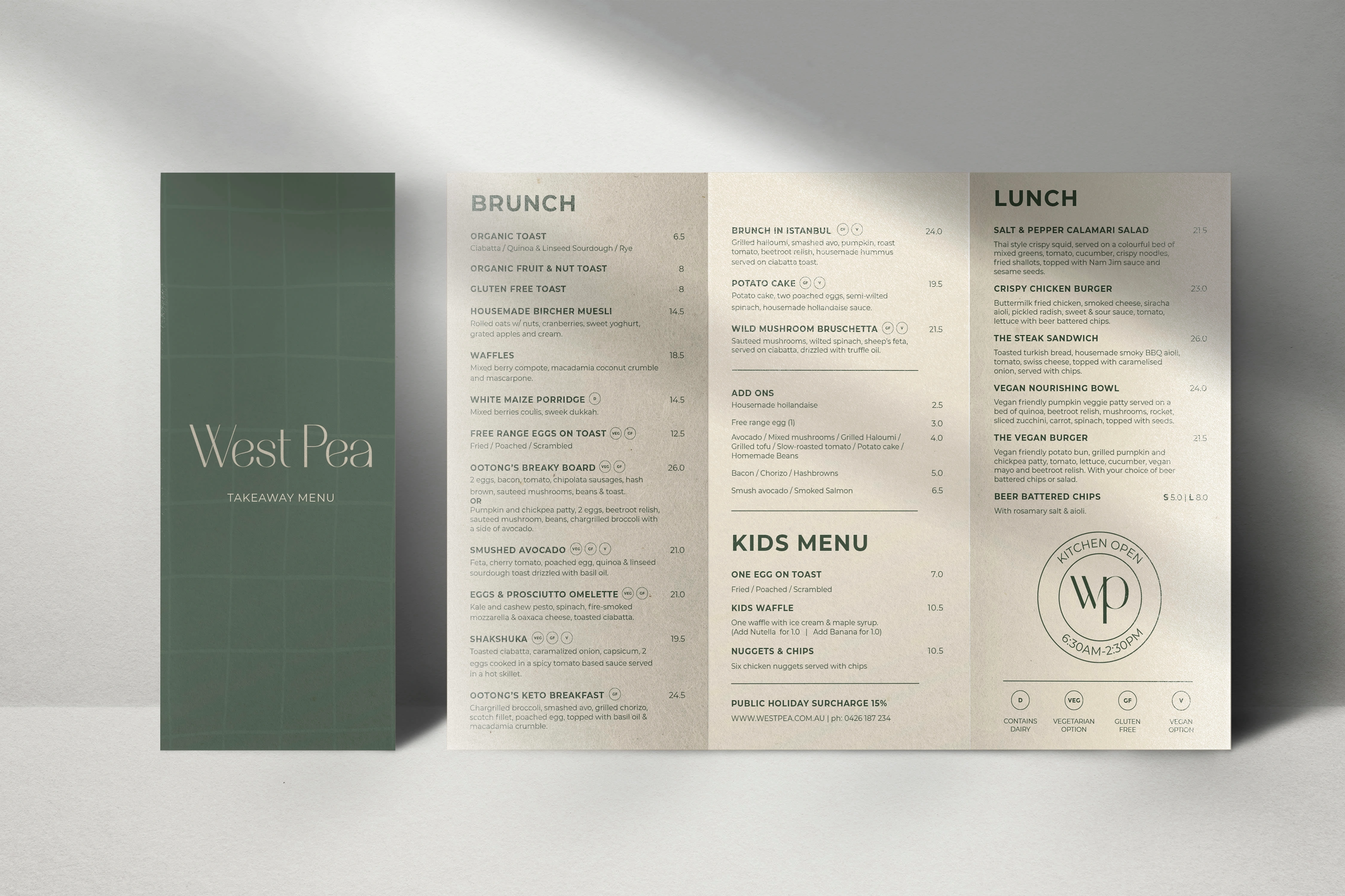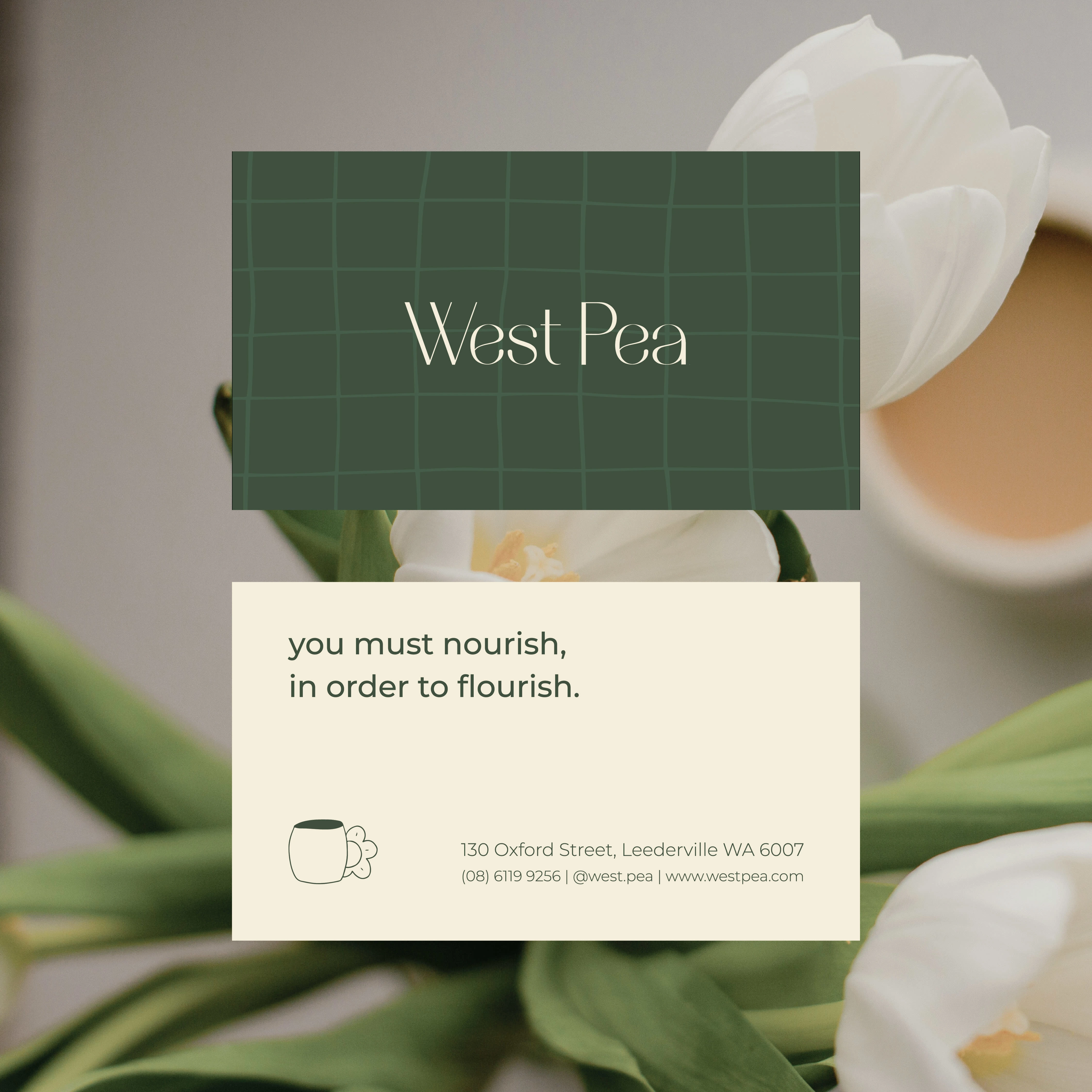 Primarily serving up healthy and fresh goods, the development of the West Pea brand identity consists of a clean and natural colour palette to reflect their fresh and healthy nature. This was paired with funky mug illustrations to give it a more fun and approachable atmosphere, to appeal to the wide audience of both families and Perth foodies.