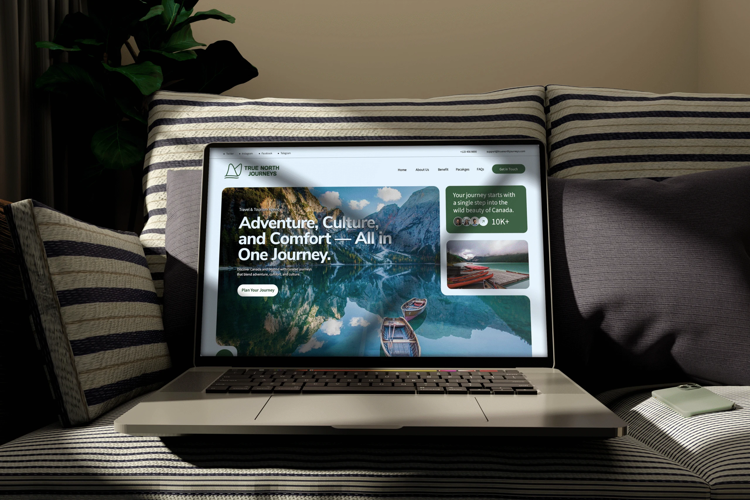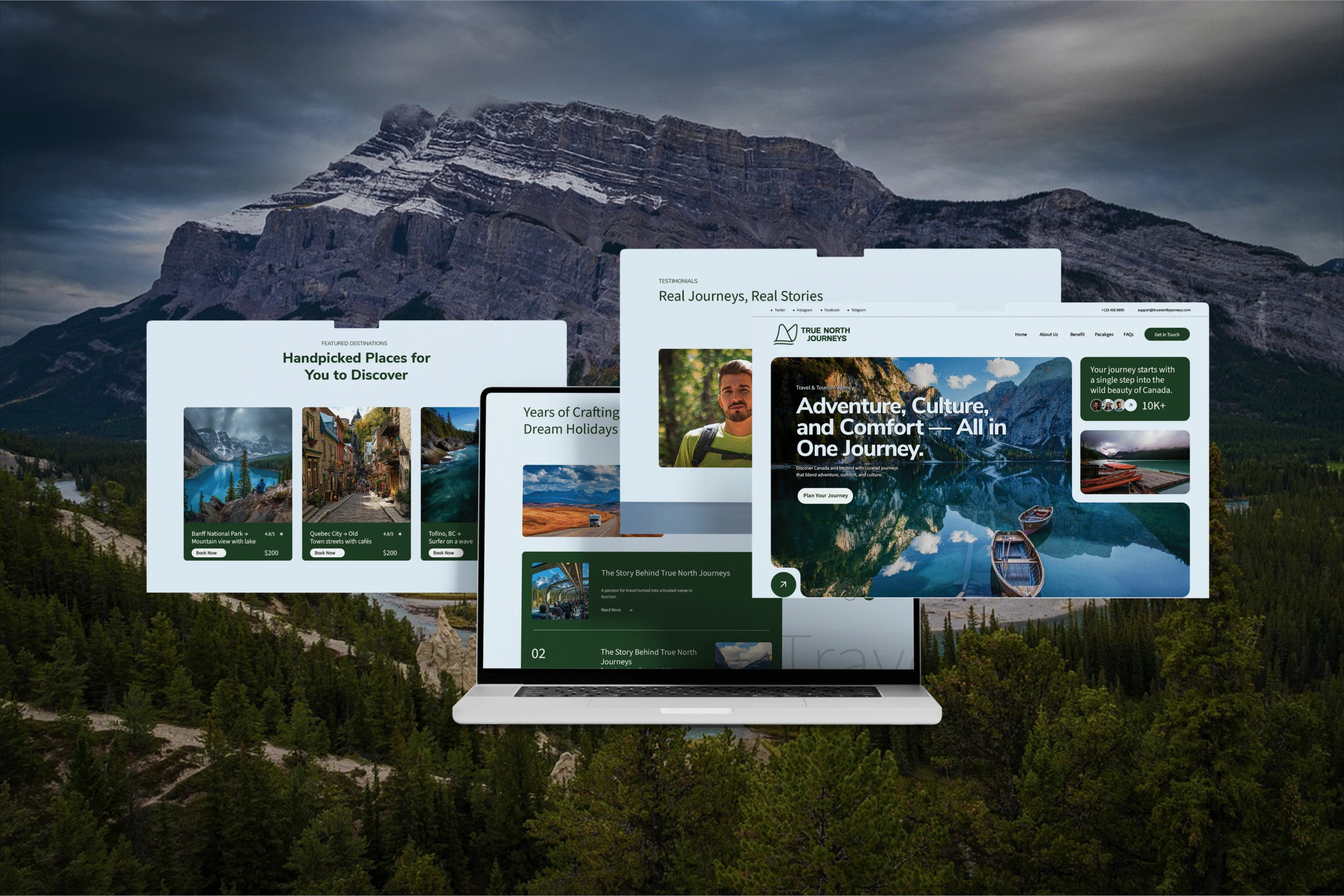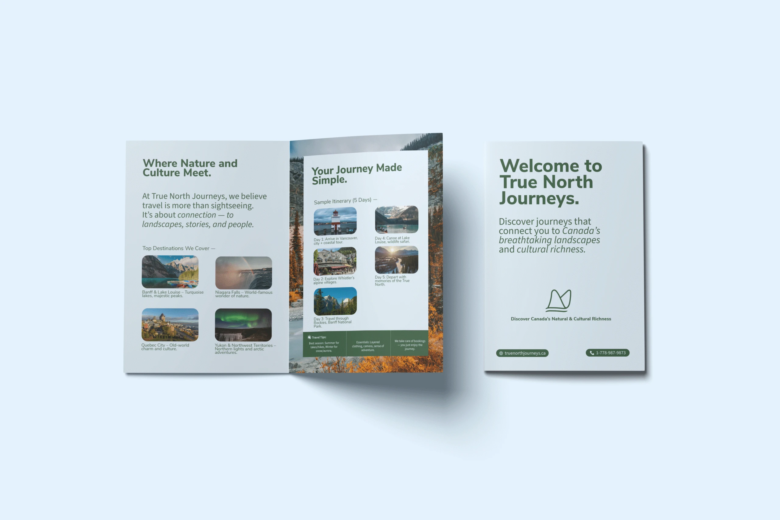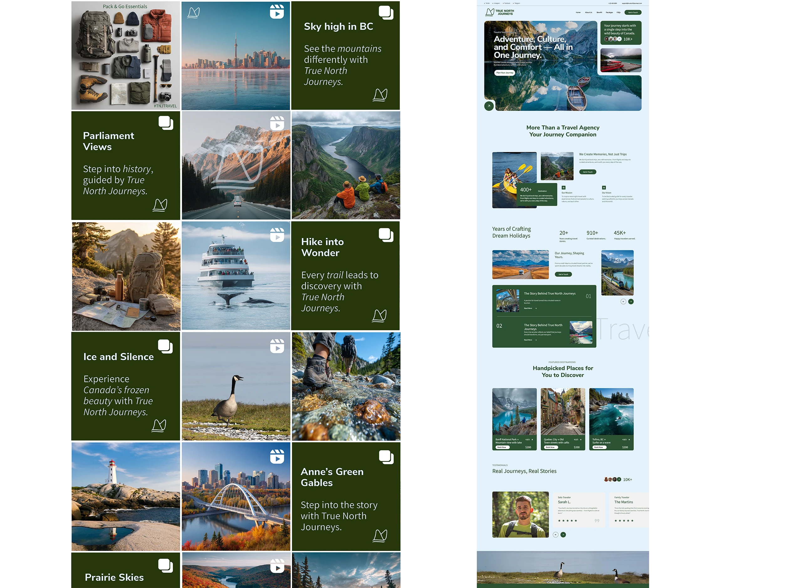 As a brand designer I led the entire brand creation for True North Journeys—from designing the identity system to copywriting, campaign concepts, and photography direction. Nunito Sans serves as the primary typeface, echoing the approachable curves of the logo mark inspired by wings and mountains, while Source Sans Variable provides clarity and adaptability across print and digital. The Dearly lettermark adds expressive character, tying emotion and storytelling into the system. Together, this trio balances clarity, consistency, and distinction—delivering a full brand identity that feels professional, human, and memorable.