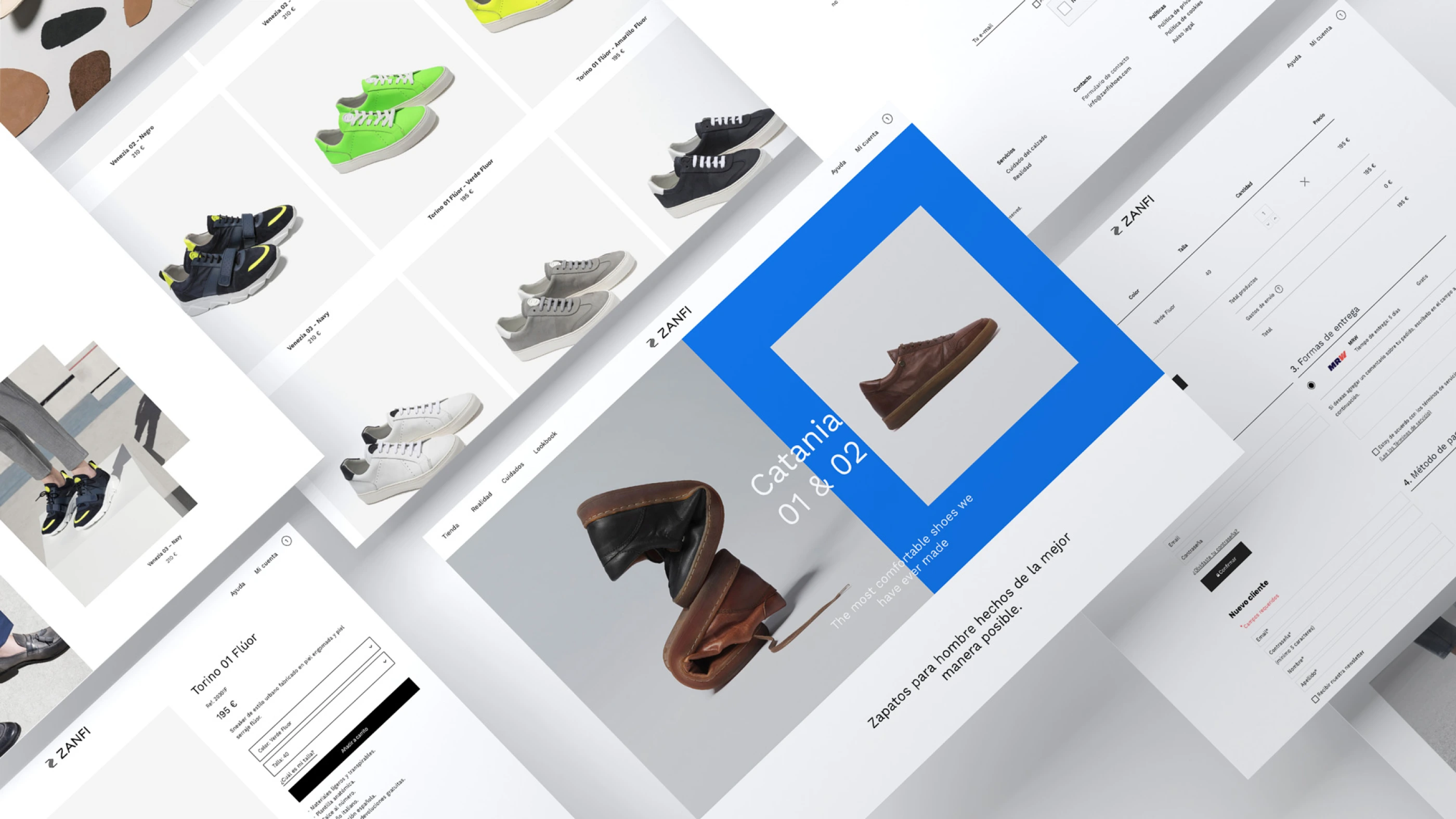 Branding, web design and art direction for Zanfi, a modern sneaker brand focused on bold visuals, clean layouts and a strong contemporary identity.
