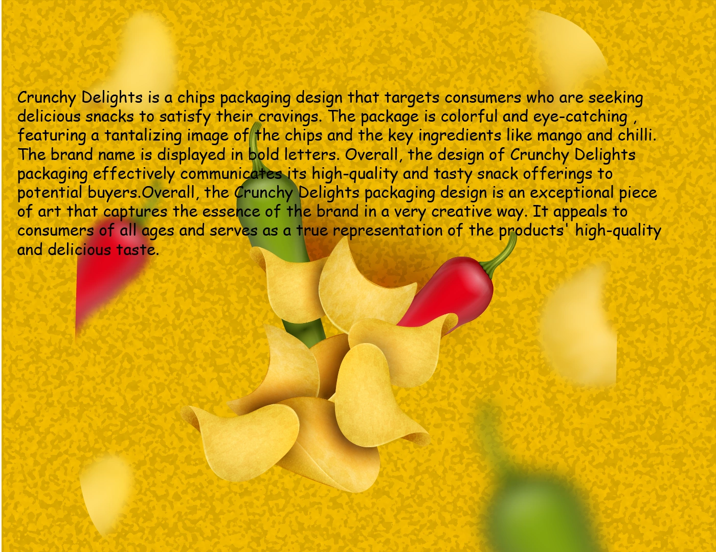 Crunchy Delight is an innovative chips packaging design project that focuses on creating an eye-catching, and eco-friendly packaging for new line of chips.