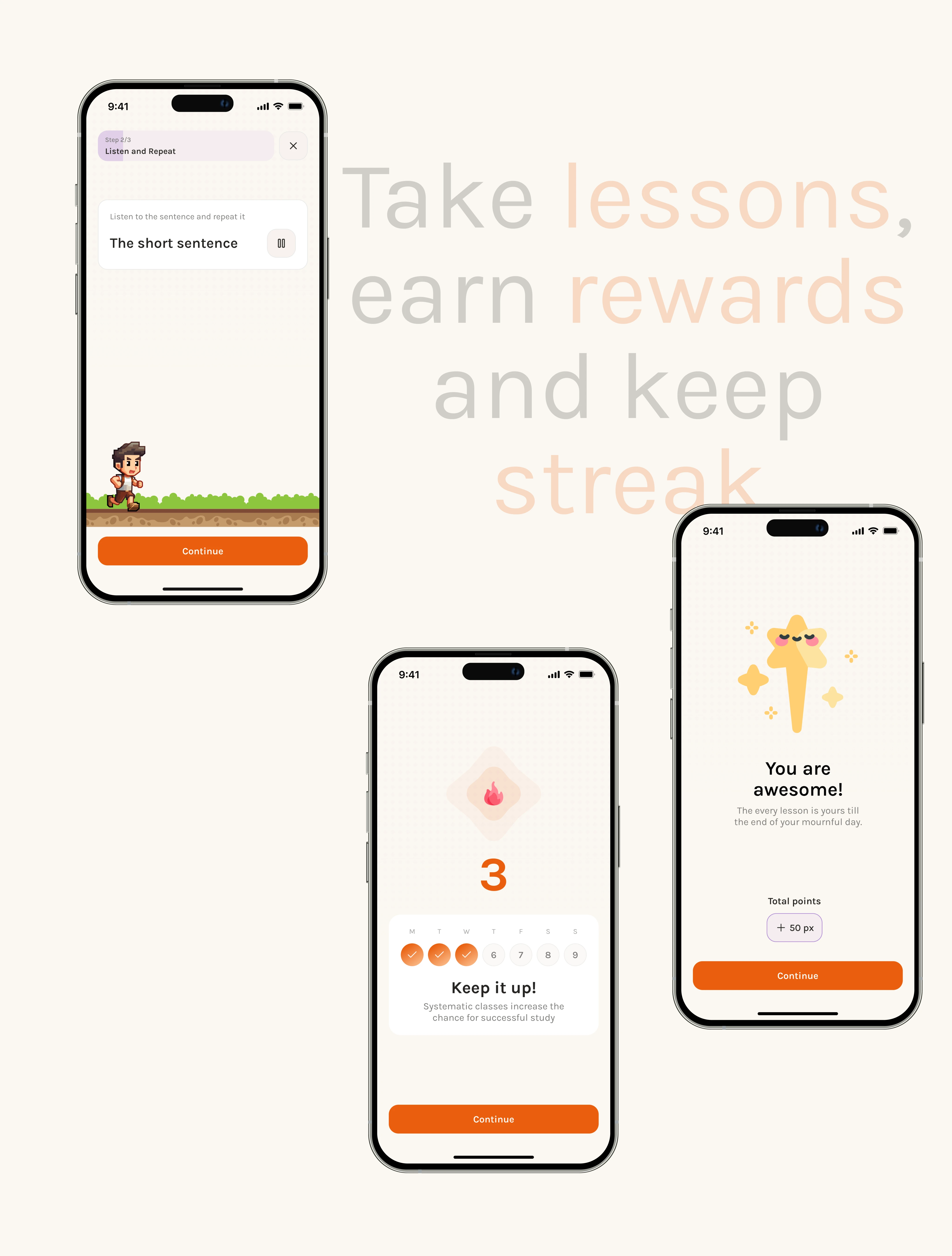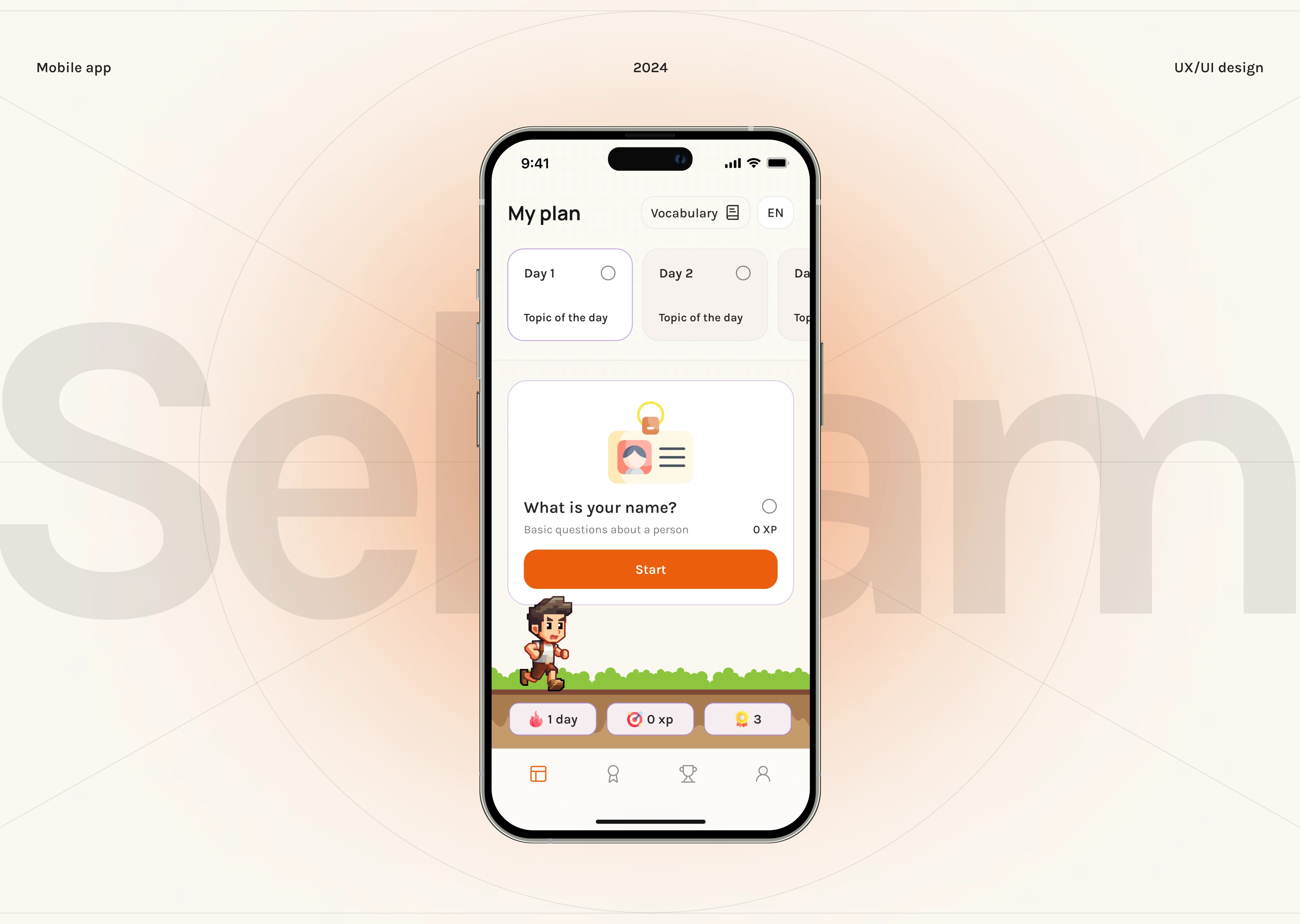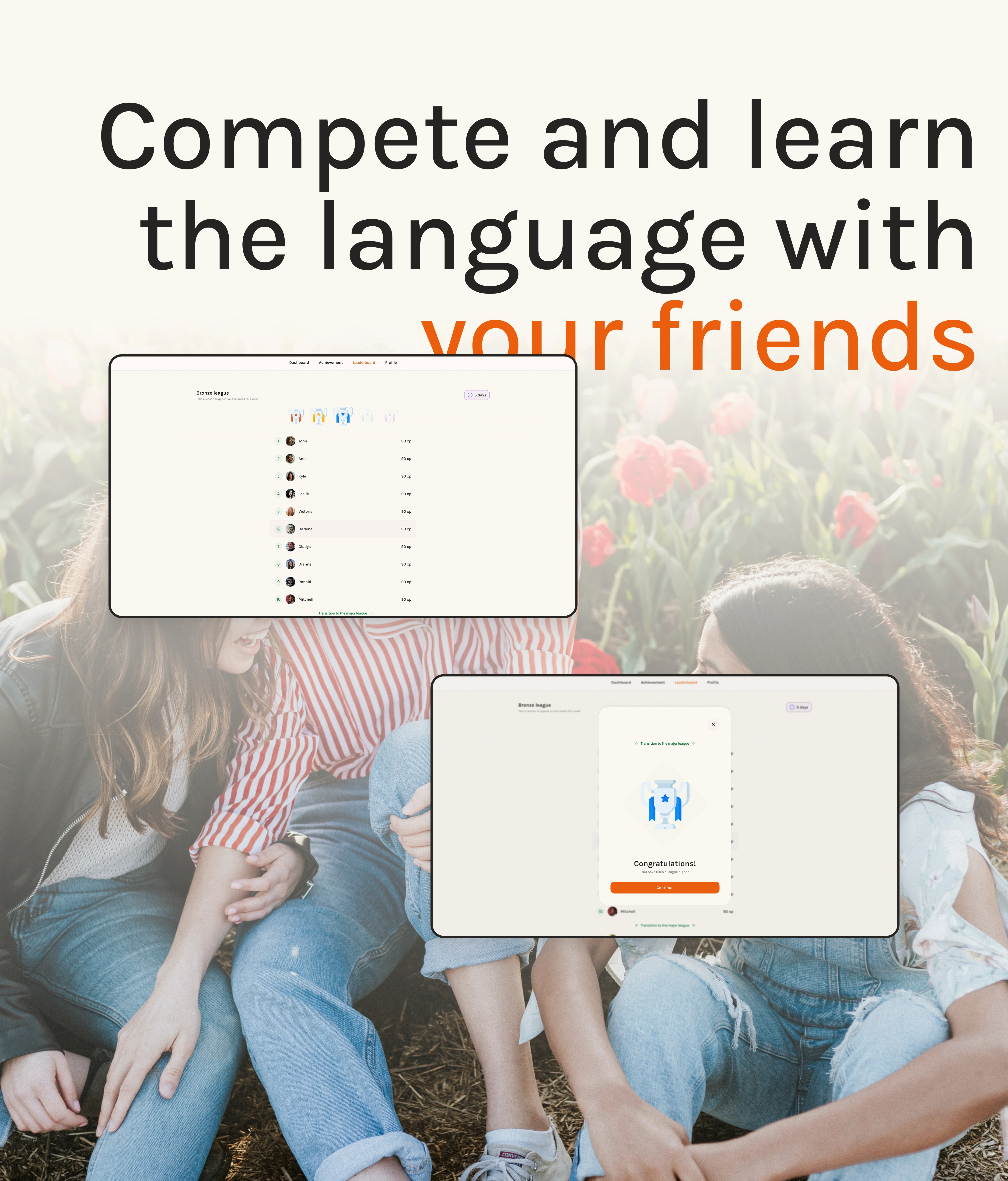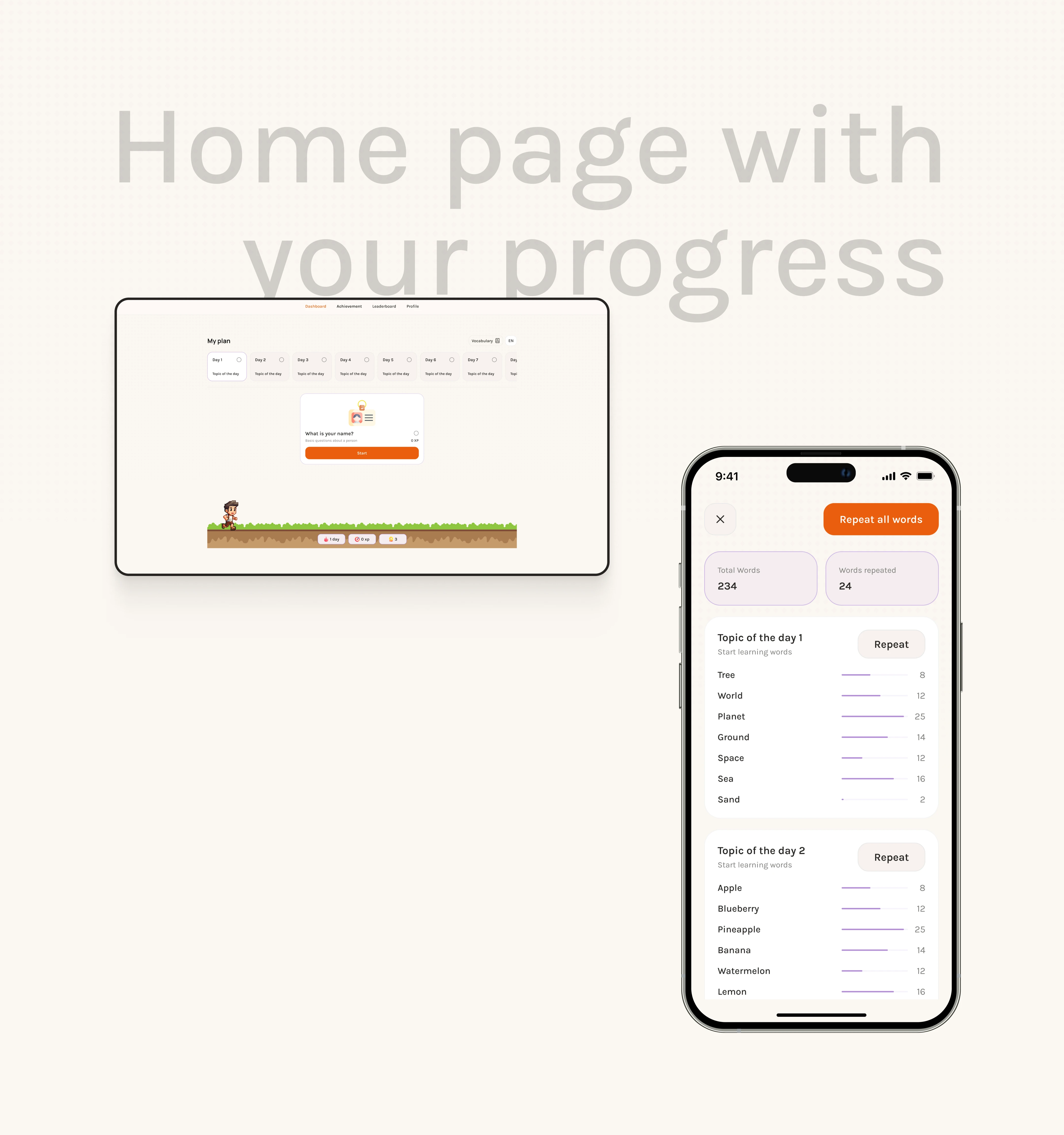Gamified language learning app with personalized plans, interactive lessons, daily XP goals, and a playful character-driven experience for mobile users.