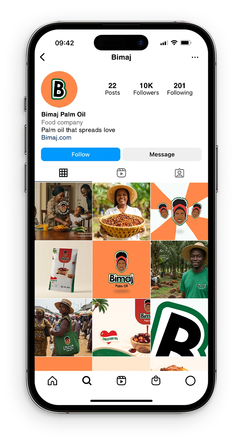 This project was a full visual identity design for a food brand. The brand is called BIMAJ, they produced and sell refined pailm oil. The goal was to make a cohesive visual identity that showcased their values. BIMAJ valued family bonding, joy, healthy living, and fun. They wanted their brand designs to tell their story at first glance.