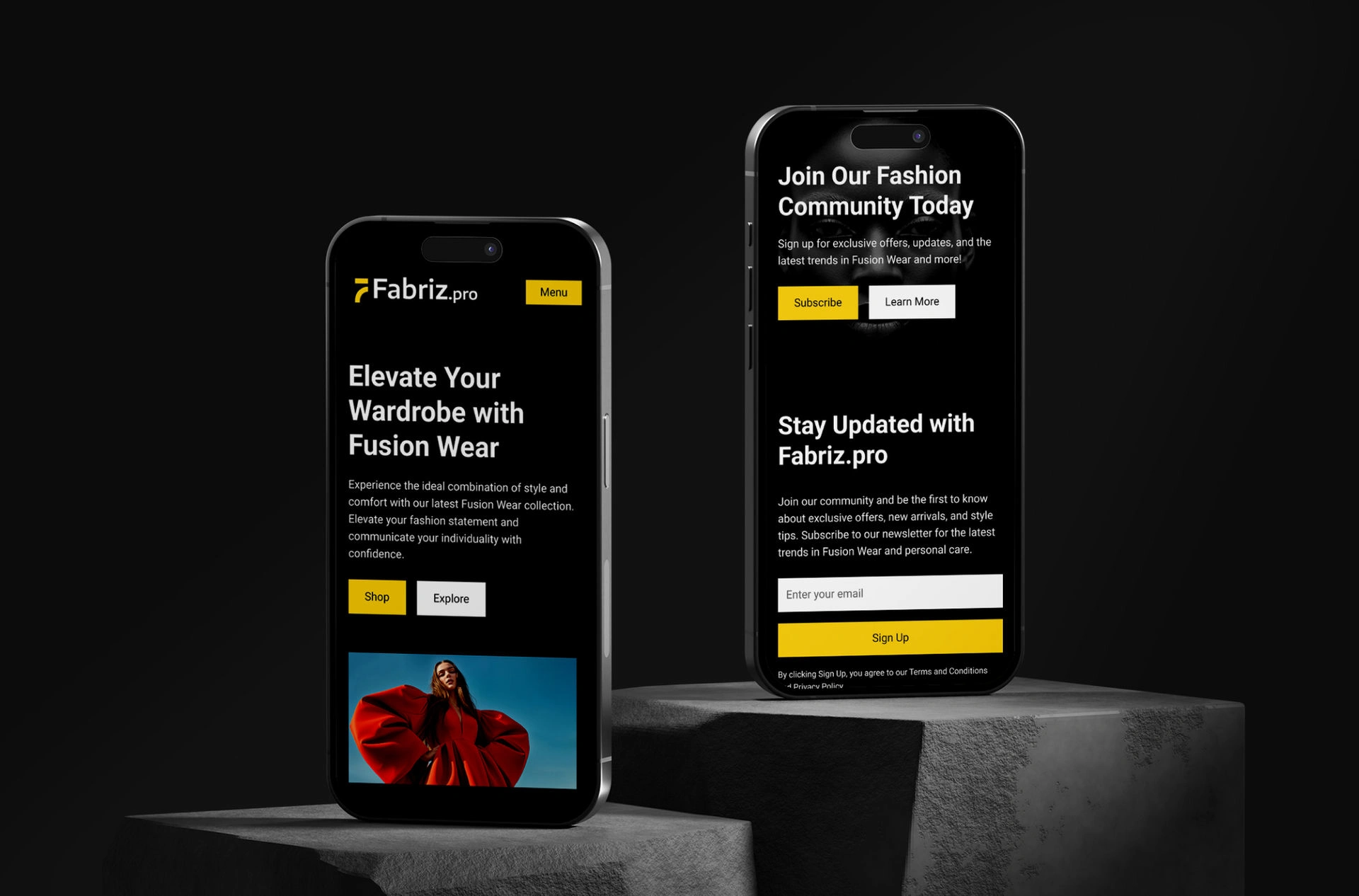 Fabriz.pro is a premium fashion brand that demands a strong visual identity and a seamless digital shopping experience. This project is a complete branding and digital transformation, covering everything from brand strategy, visual identity, and digital design to the fully responsive eCommerce platform that ensures an engaging customer journey across all devices.
