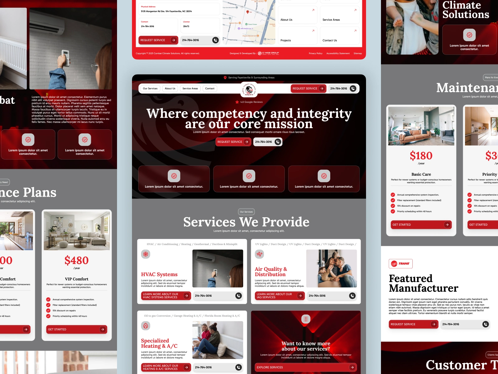 Combat Climate Solutions, a heating, ventilation and air conditioning (HVAC) services business, engaged us to redesign their website on Webflow. The objective was to create a modern, responsive website that clearly communicates their service offerings, builds credibility through testimonials and imagery, and provides a smooth user-experience for potential customers on desktop and mobile. Over the course of the project we mapped out user flows (request service, explore HVAC/air‐quality/heating & A/C options, review testimonials, view service area coverage), designed the visual layout and interactions, and developed it in Webflow to enable easy future updates and good performance.