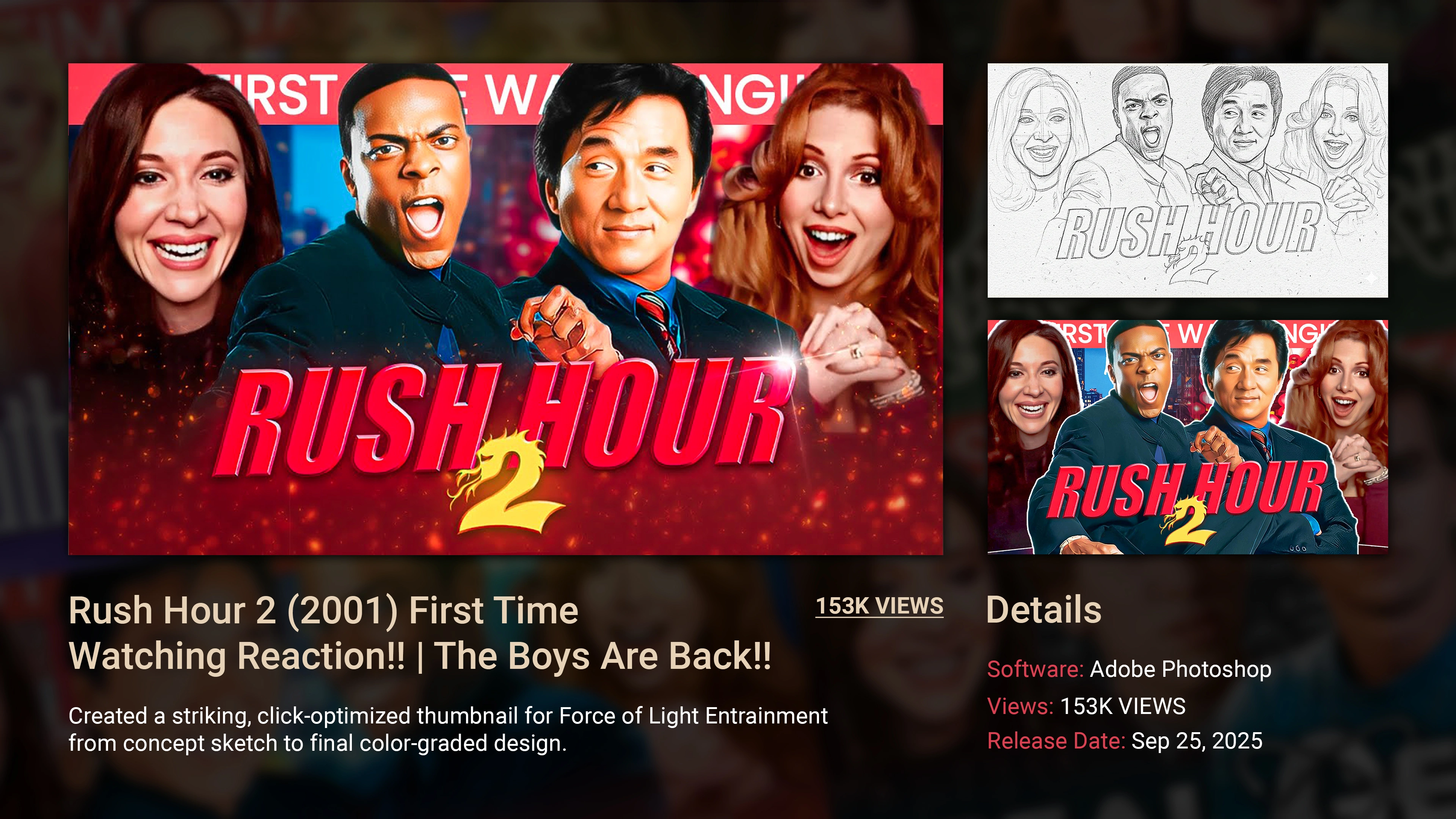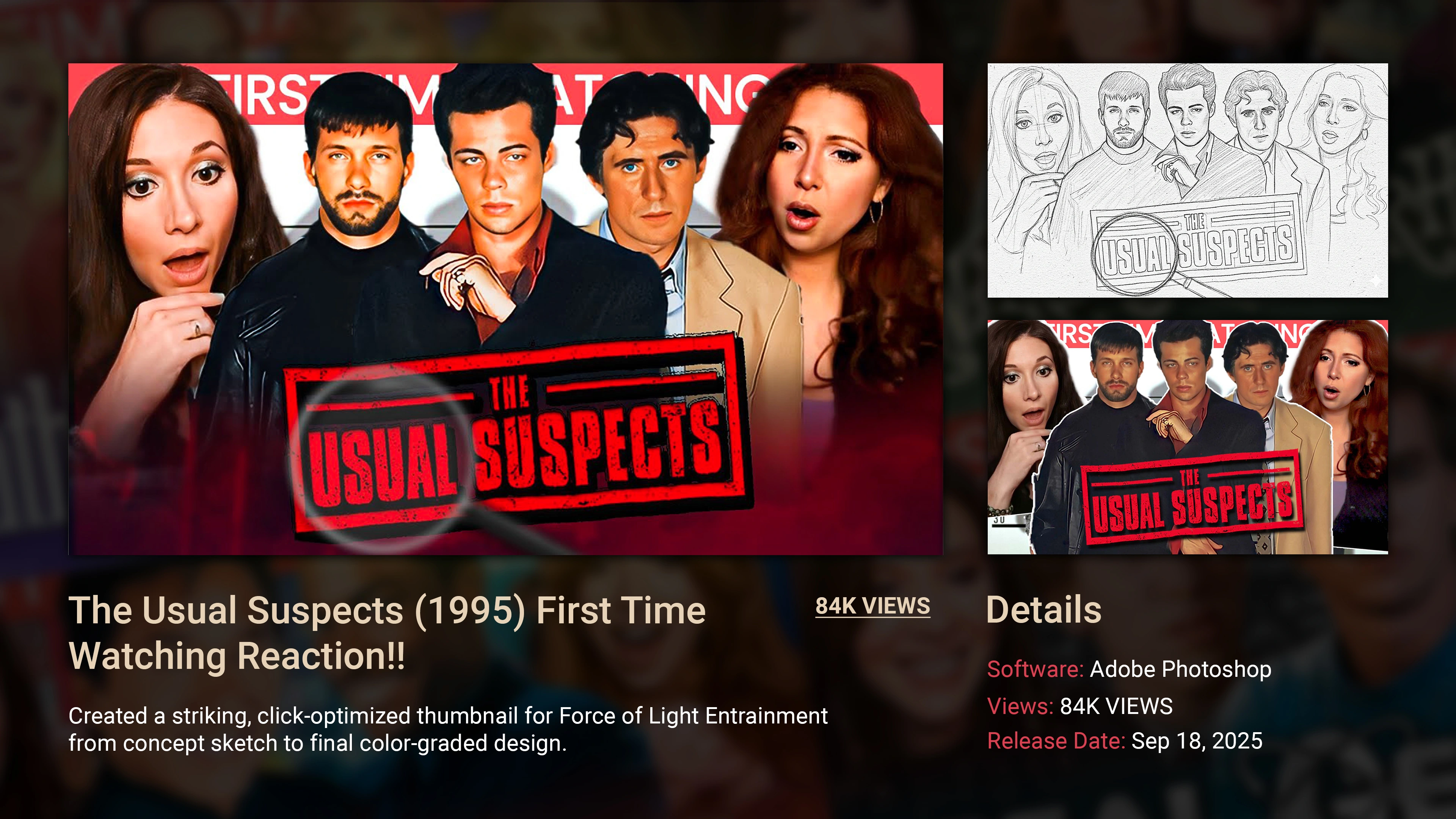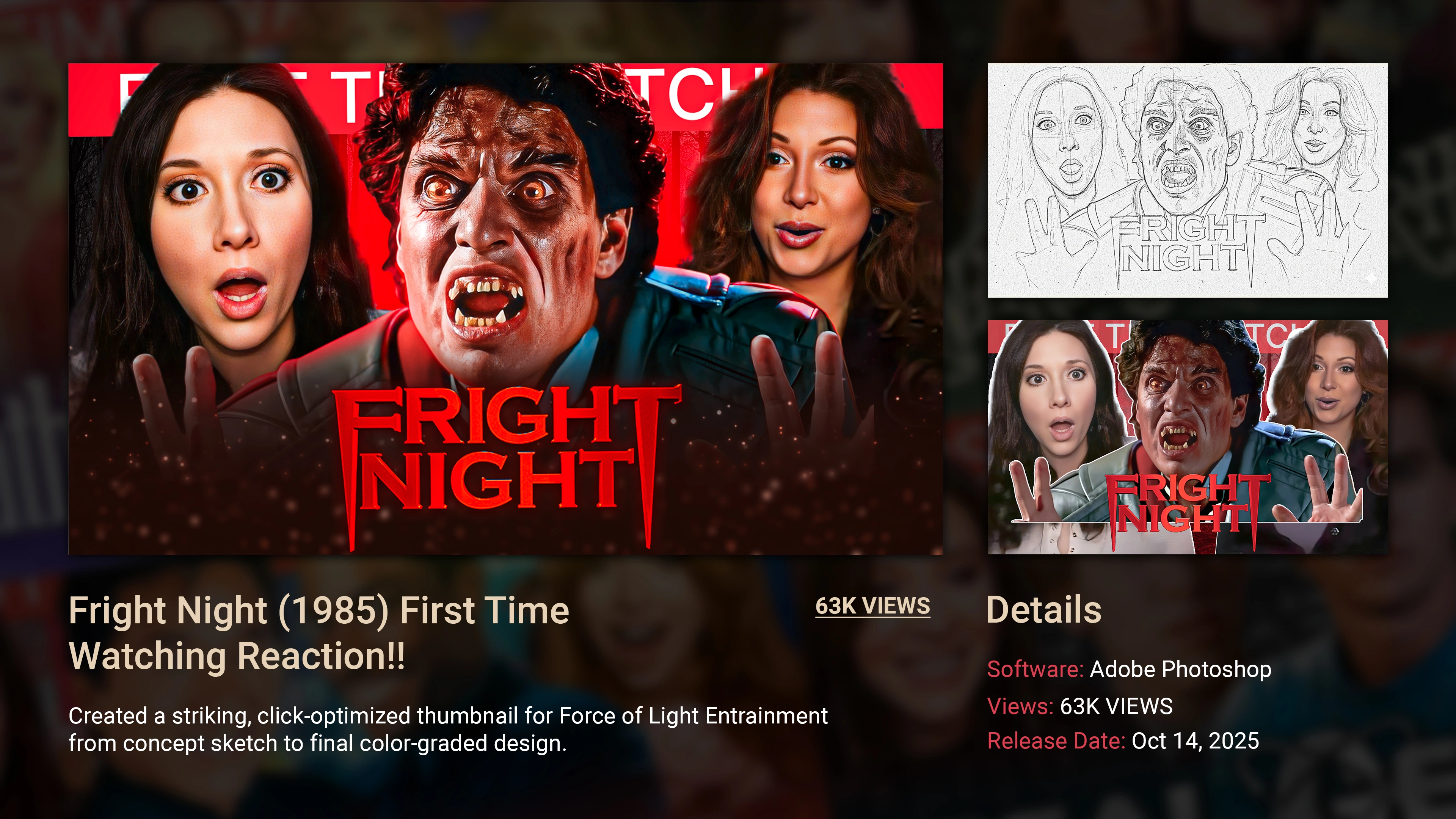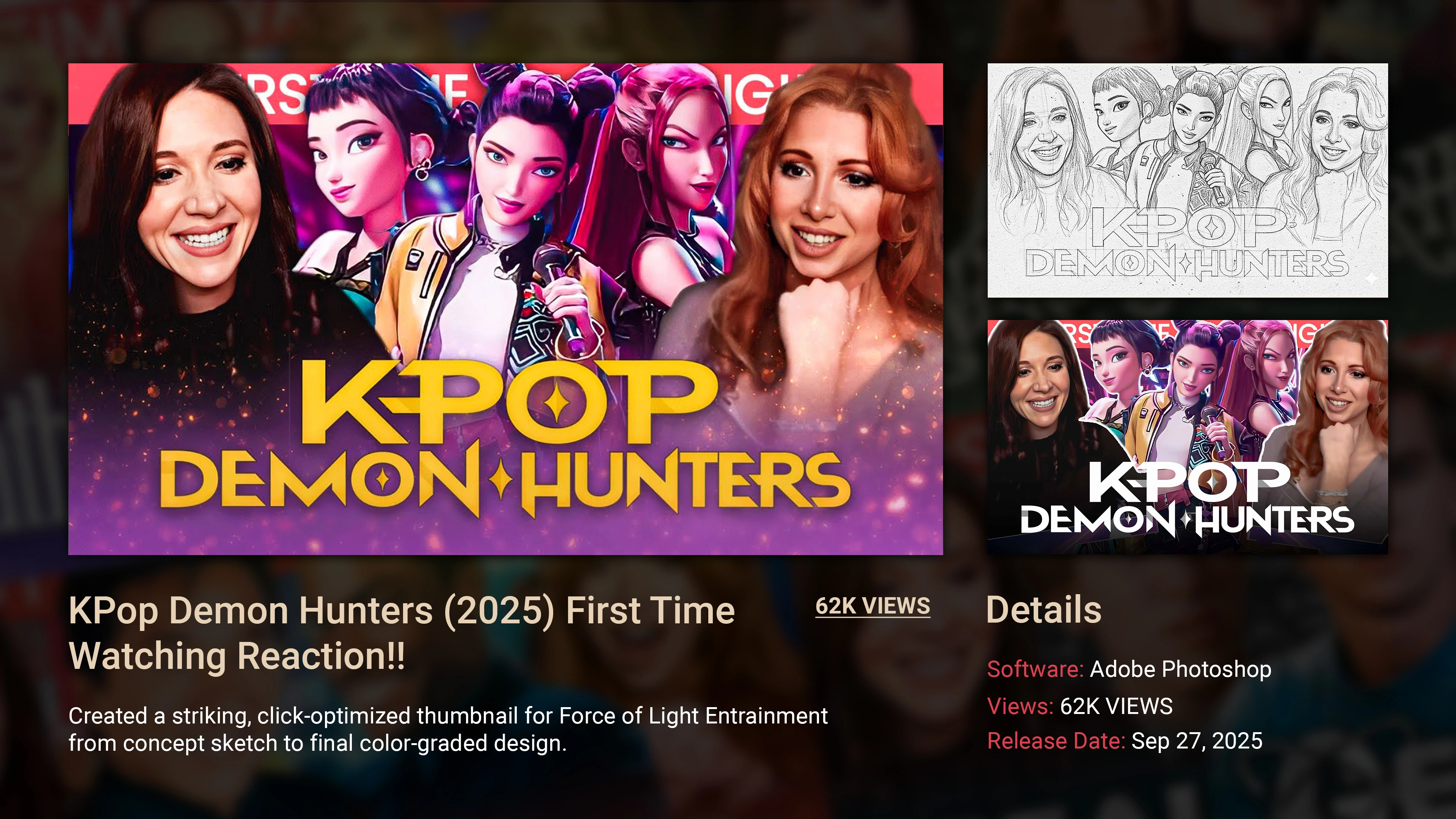 Professional movie reaction thumbnail designs created for YouTube and digital projects. Bold, eye-catching, and click-optimized thumbnails that help videos stand out, attract viewers, and increase engagement. Perfect for content creators, movie reviewers, and anyone seeking high-quality, custom thumbnail designs.