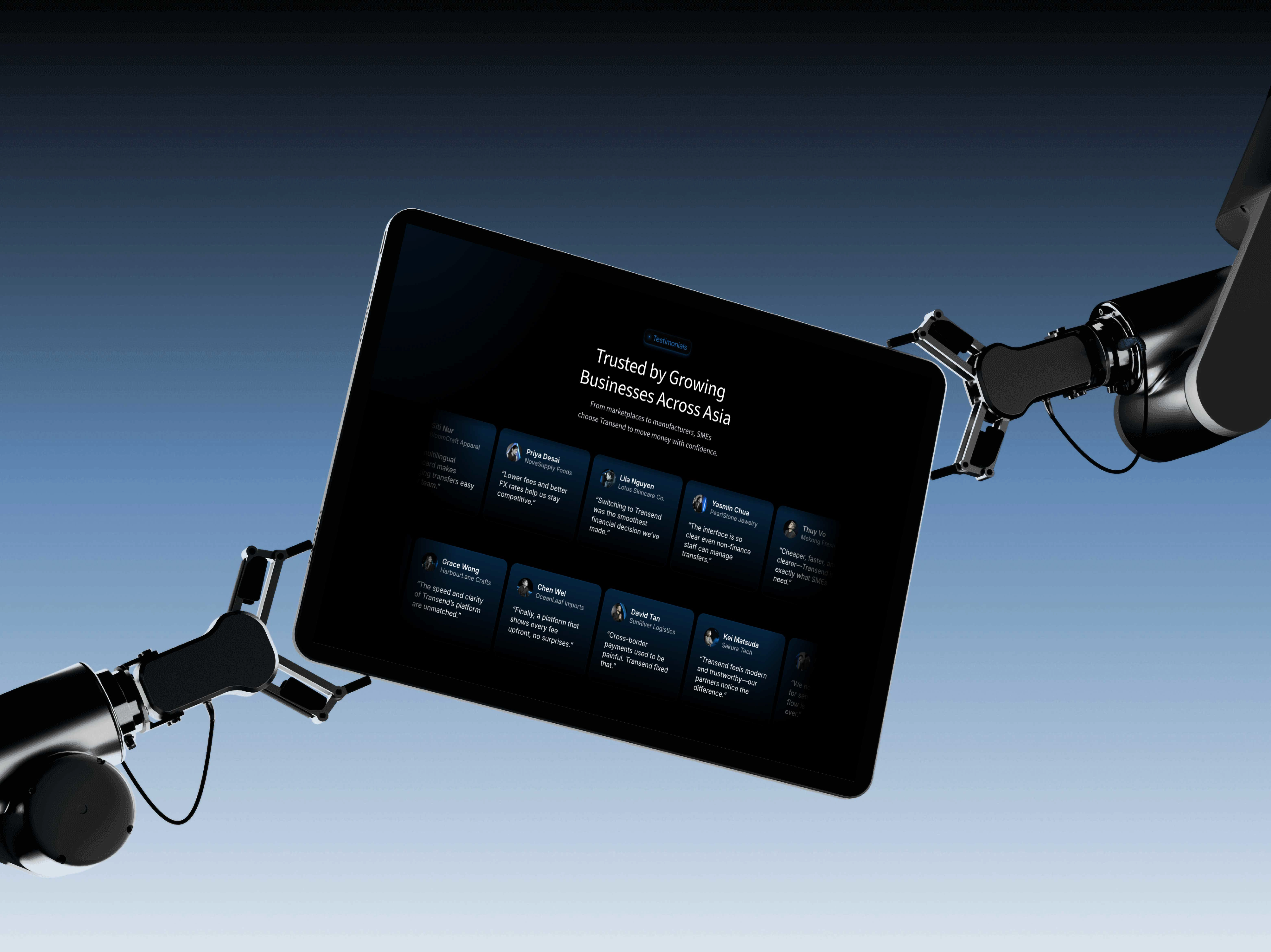 We designed a SaaS-focused landing website built around clarity and trust. The structure prioritizes plain language over technical explanation, guiding users through the product in a logical, confidence-building flow. A dedicated Product Features section breaks down functionality into tangible business benefits, while an Interactive Pricing Calculator allows users to understand costs upfront, removing uncertainty early in the journey. Multi-language support was integrated to ensure accessibility across key Asian markets, reinforcing Transend’s regional credibility and commitment to user-first communication.