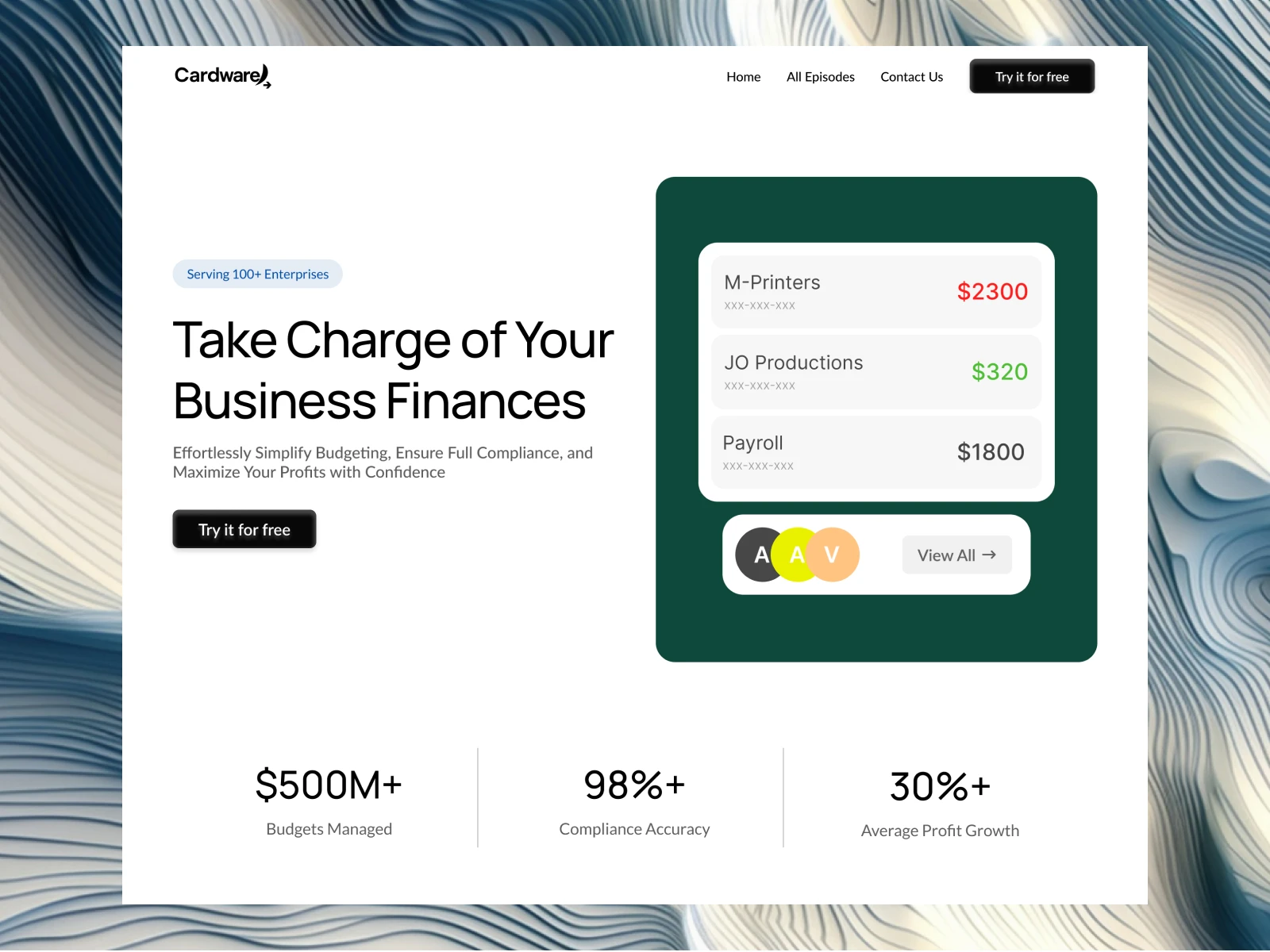 Landing page for a finance management app for small scale business and startups| Look & Feel : Premium, Minimal, Less cluttered | Tools : Figma Framer