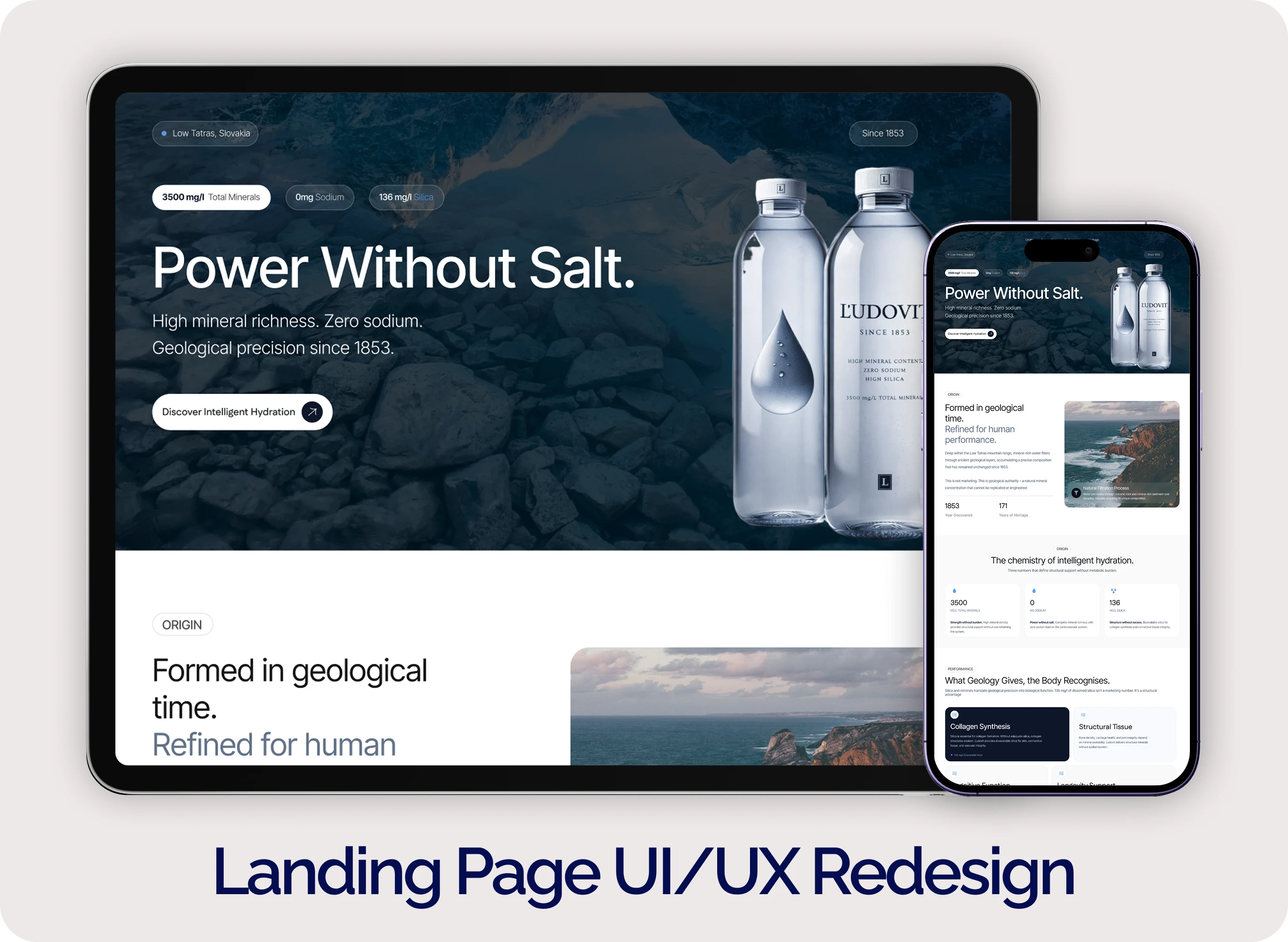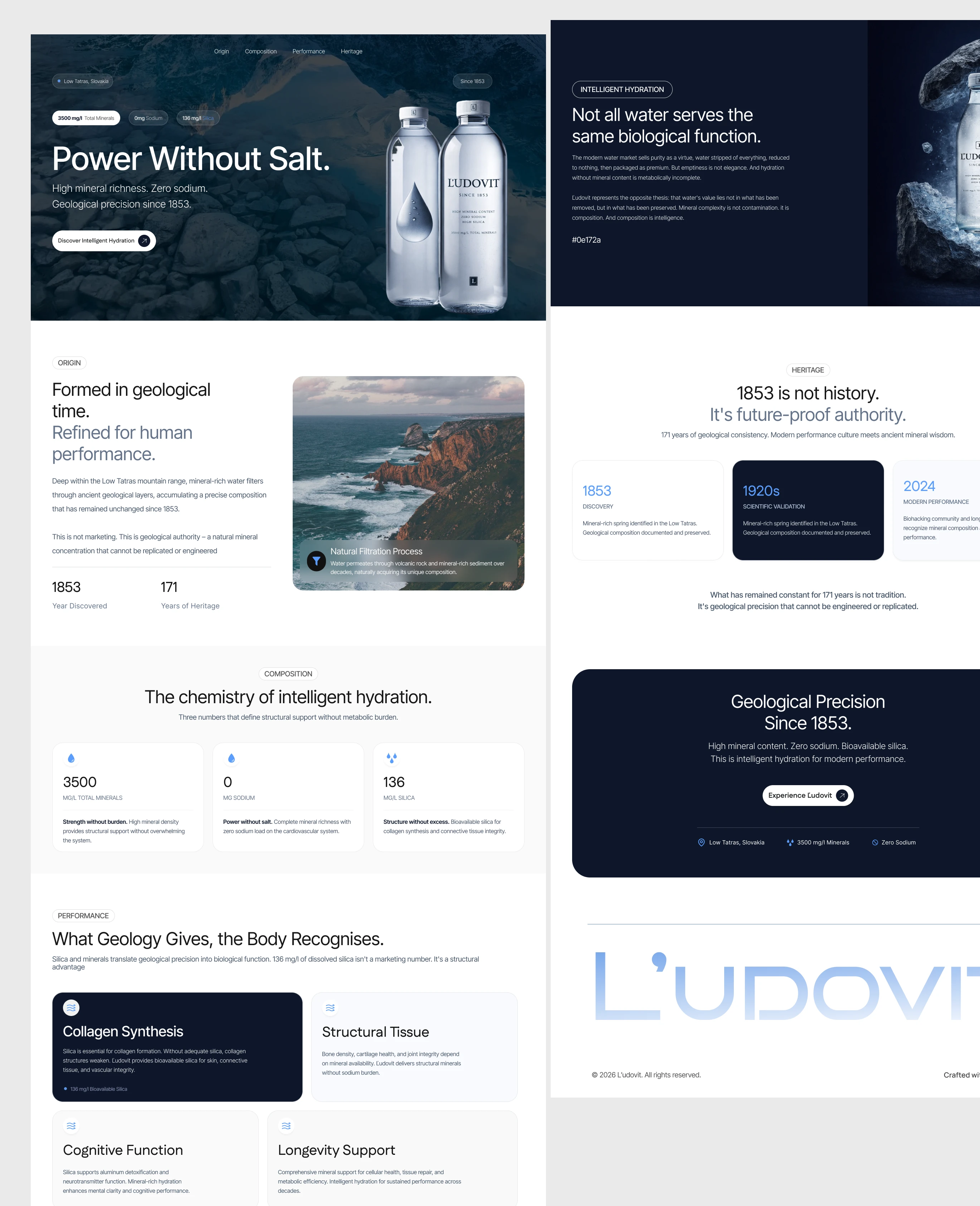 Redesigned Ľudovit landing page to turn heritage, mineral science, and zero sodium into a clear, structured experience that builds trust and drives action.