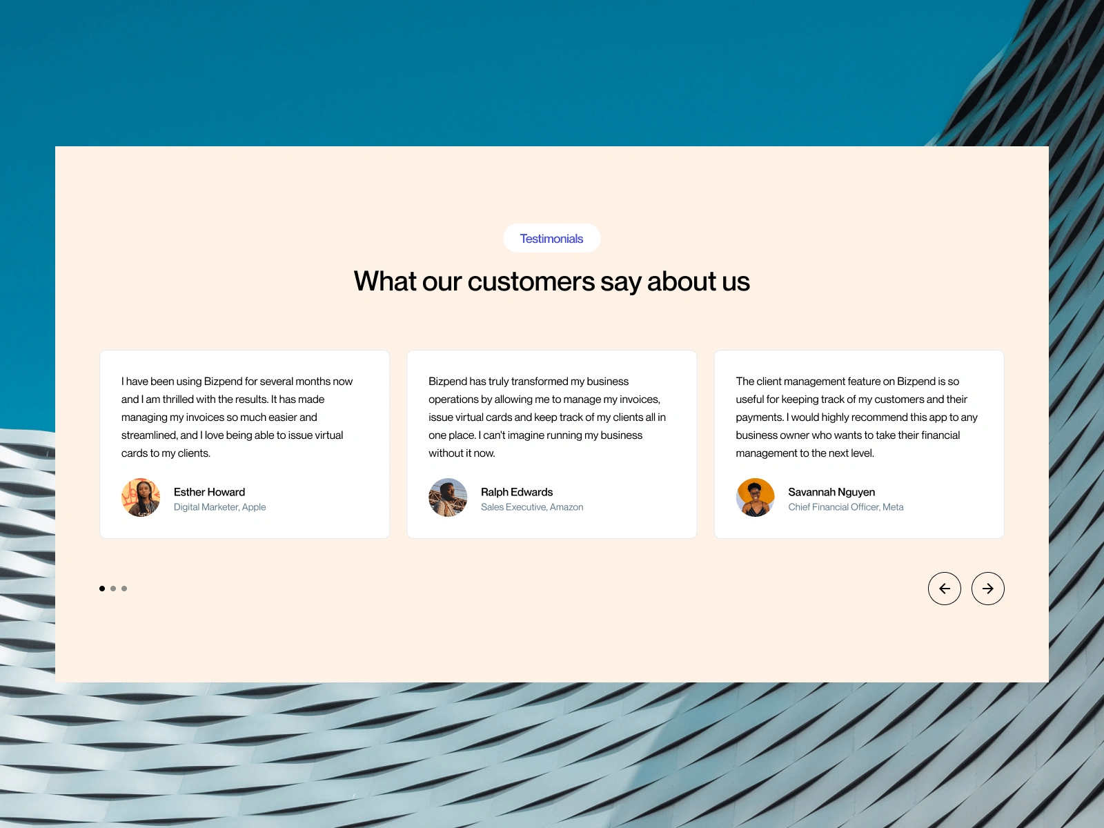 I'm excited to share the marketing website/landing page I designed for Bizpend, a fintech startup looking to create financial management solutions for businesses.