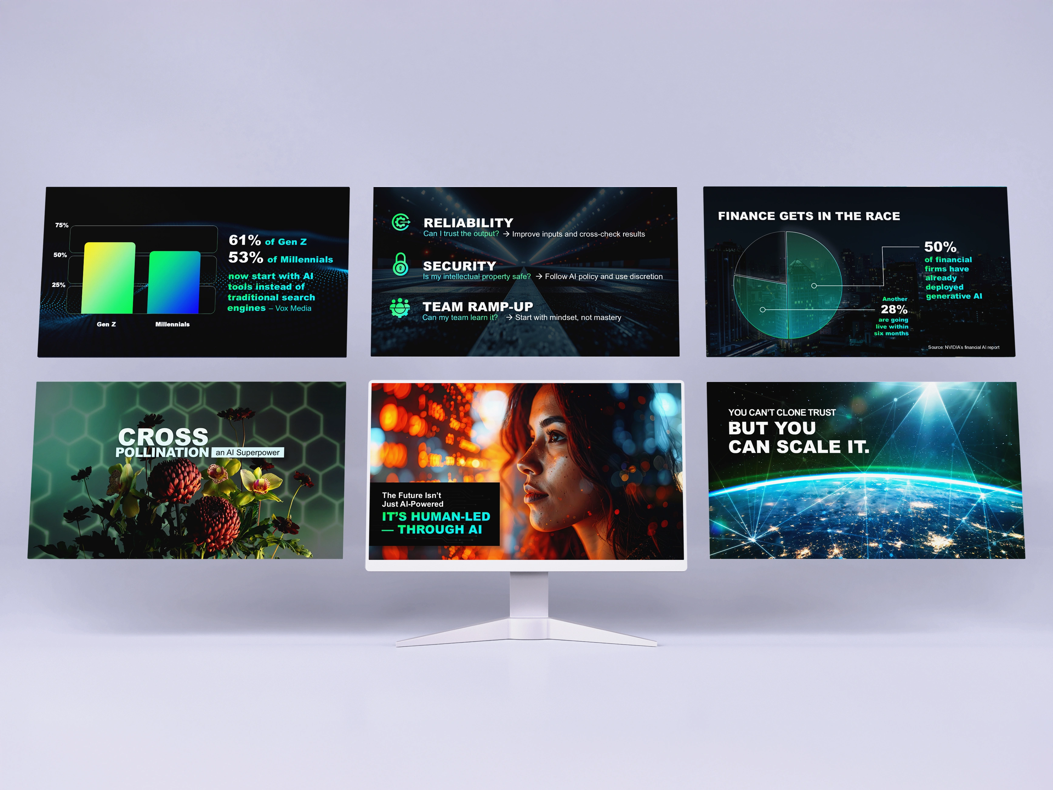 The use of AI-generated imagery and a focus on creating a cohesive yet diverse set of slides made this project stand out.