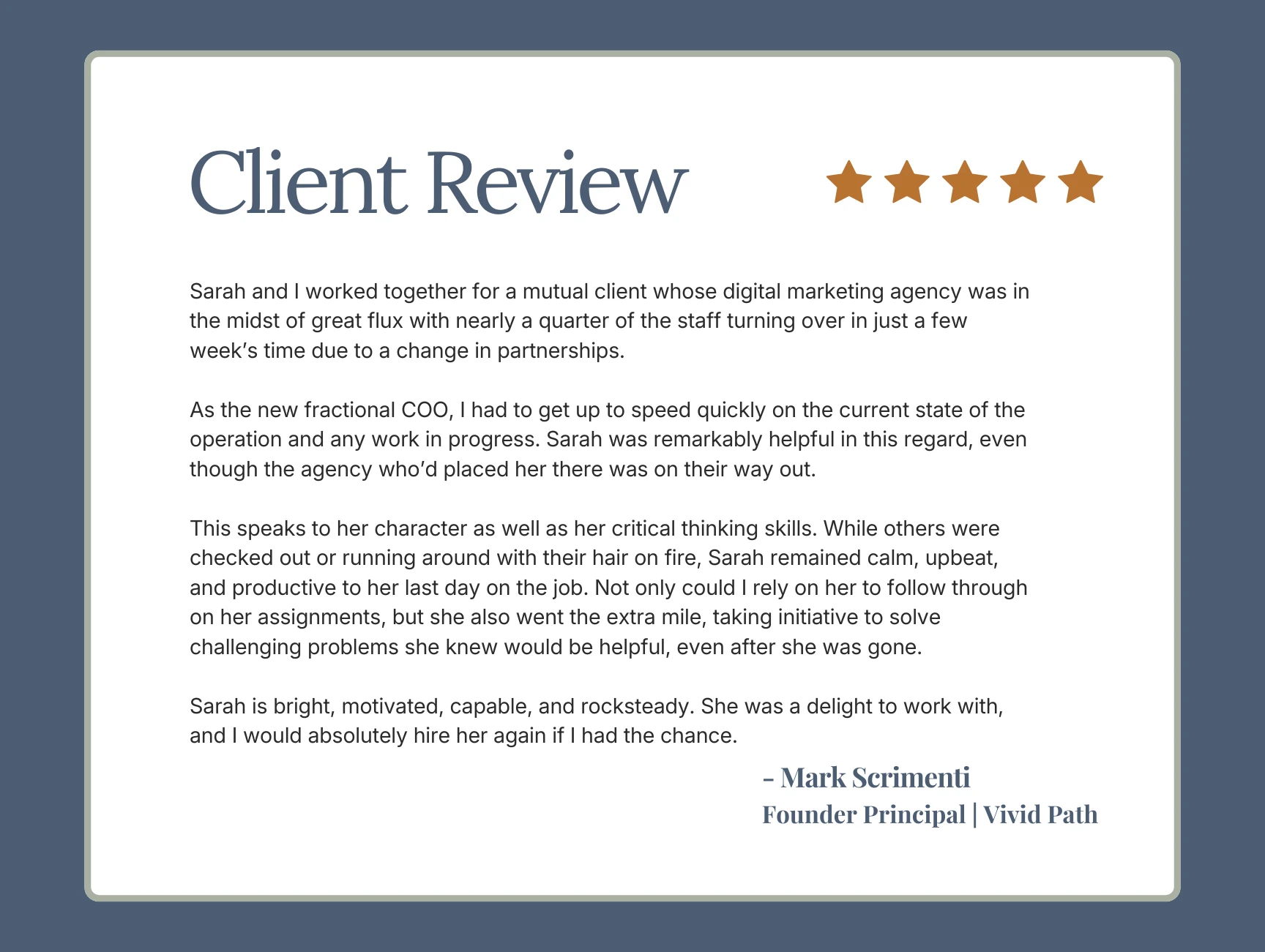 I assessed team workflows, ops, and scaling needs, then created tools and project management systems to support their growth.