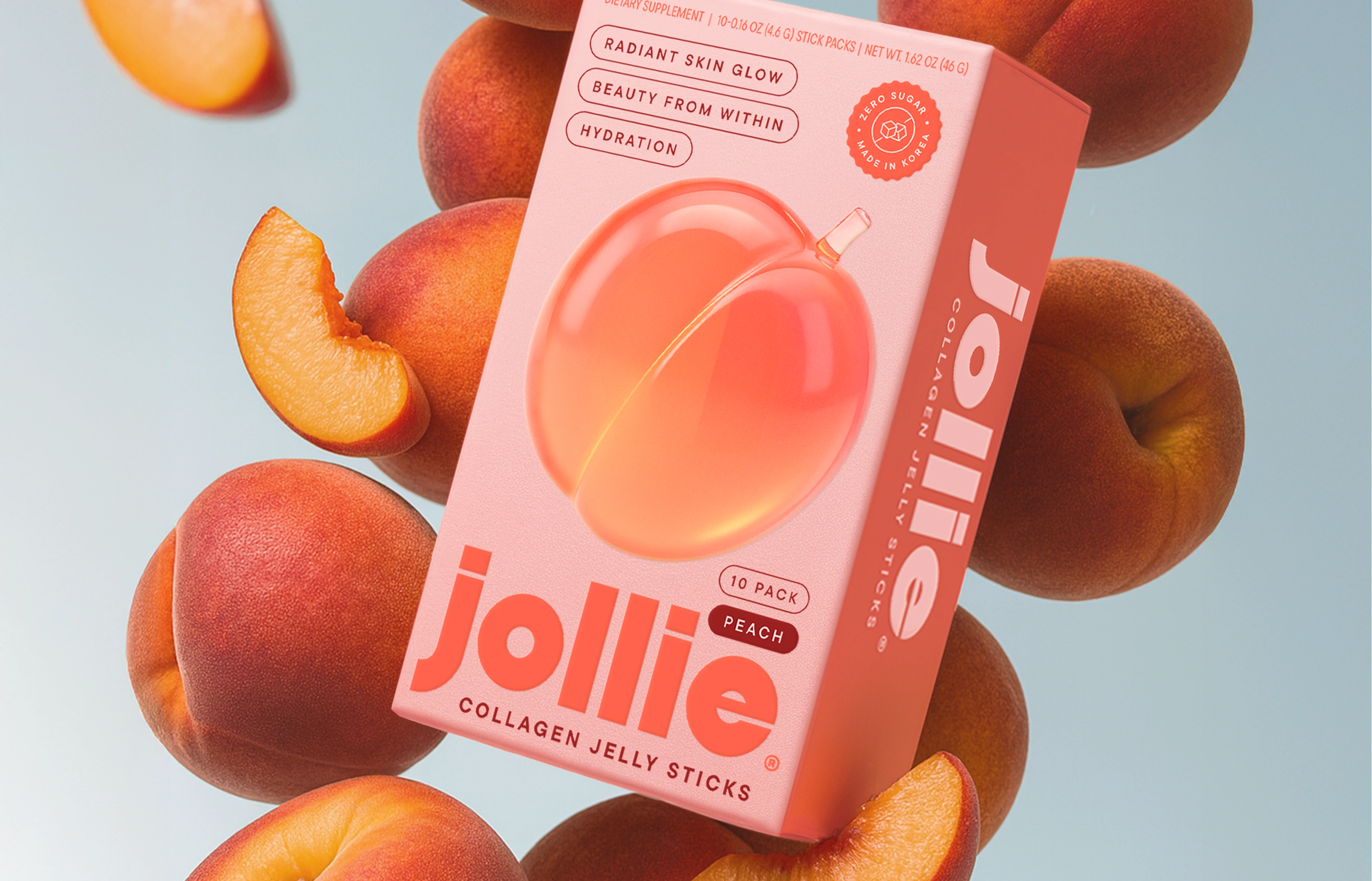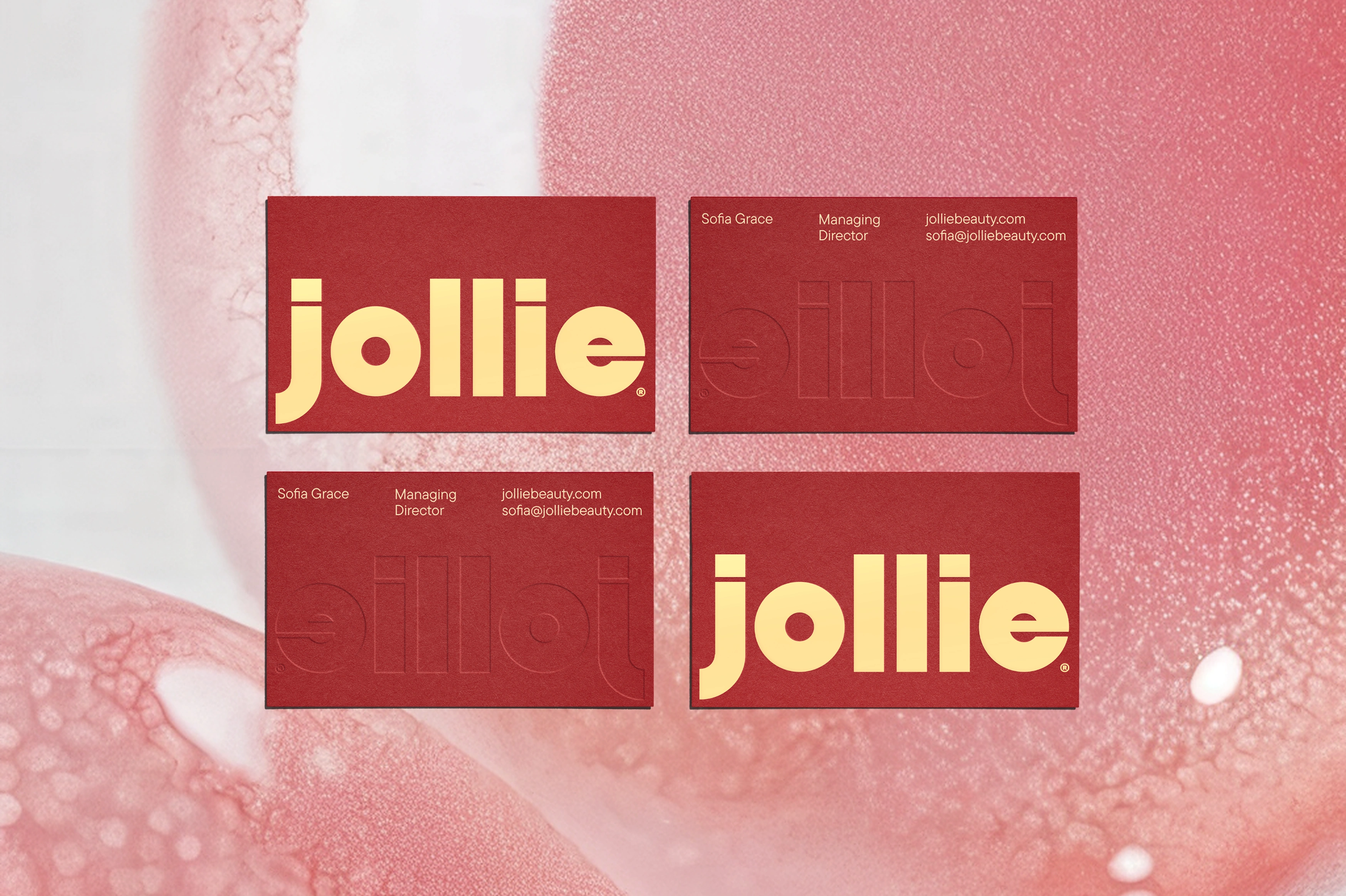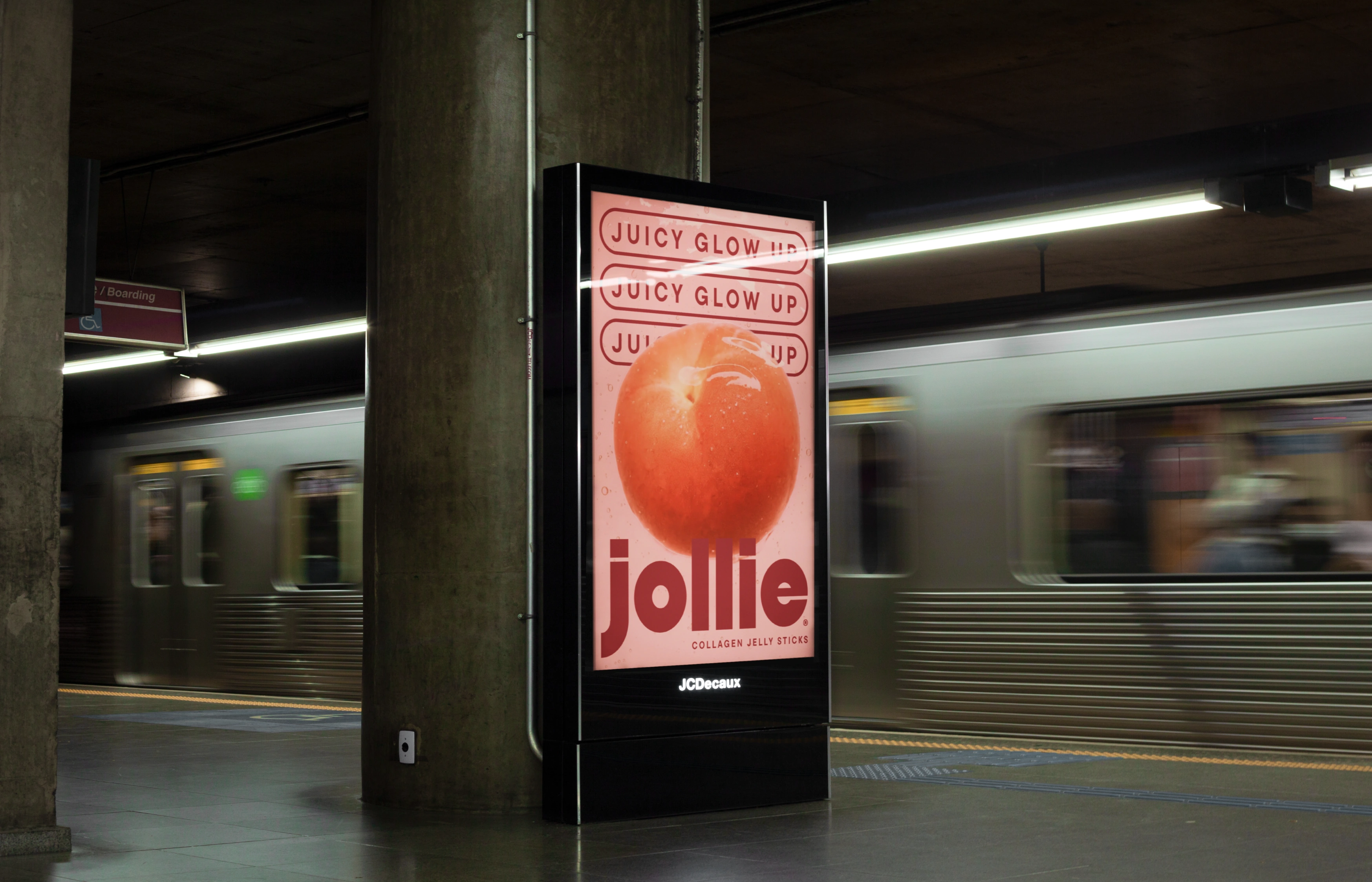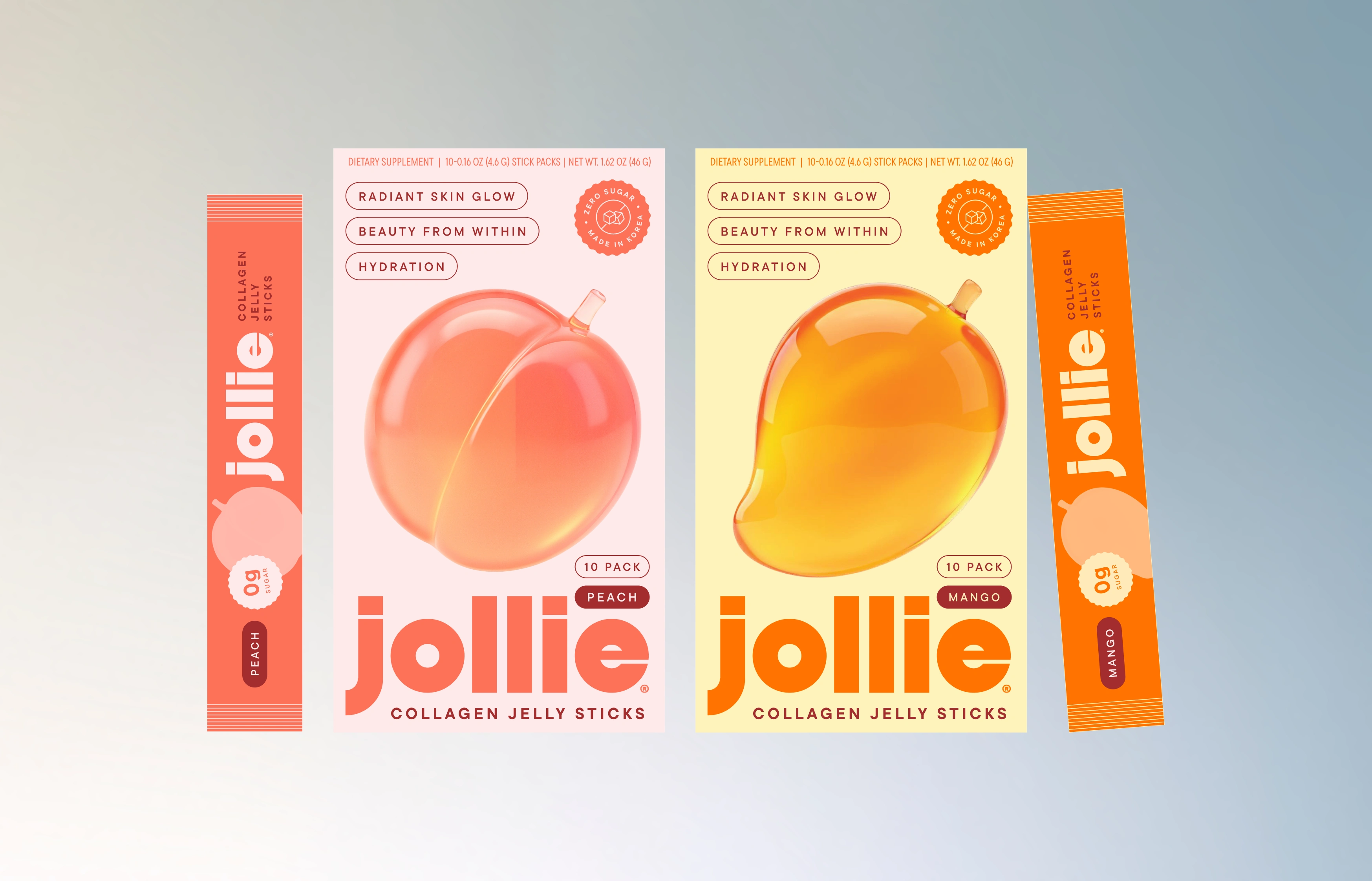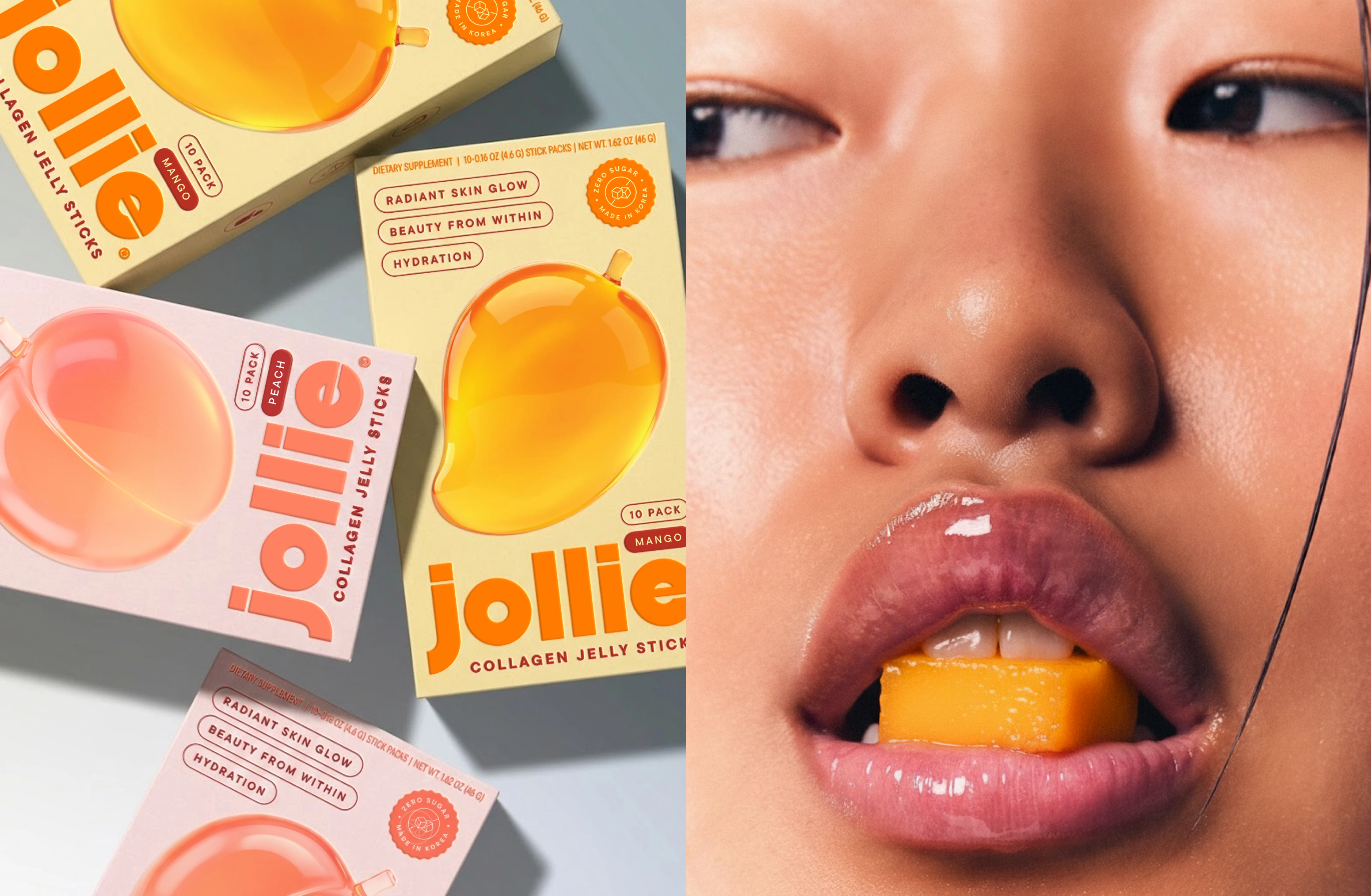 Jollie Collagen Jelly Sticks’ brand identity transforms skincare into a sensorial, joy-driven ritual inspired by juicy fruit textures and soft jelly forms. Built around the idea of “Juicy Glow Up,” the visual system uses a pastel yellow and maroon-red core palette, extended into flavor-led packaging. A minimal, rounded typeface mirrors the soft geometry of the logo, reinforcing a modern, approachable tone. Clean-girl aesthetics meet Korean beauty minimalism, creating a fresh, polished, and highly desirable wellness brand where glow feels delicious, effortless, and aspirational.