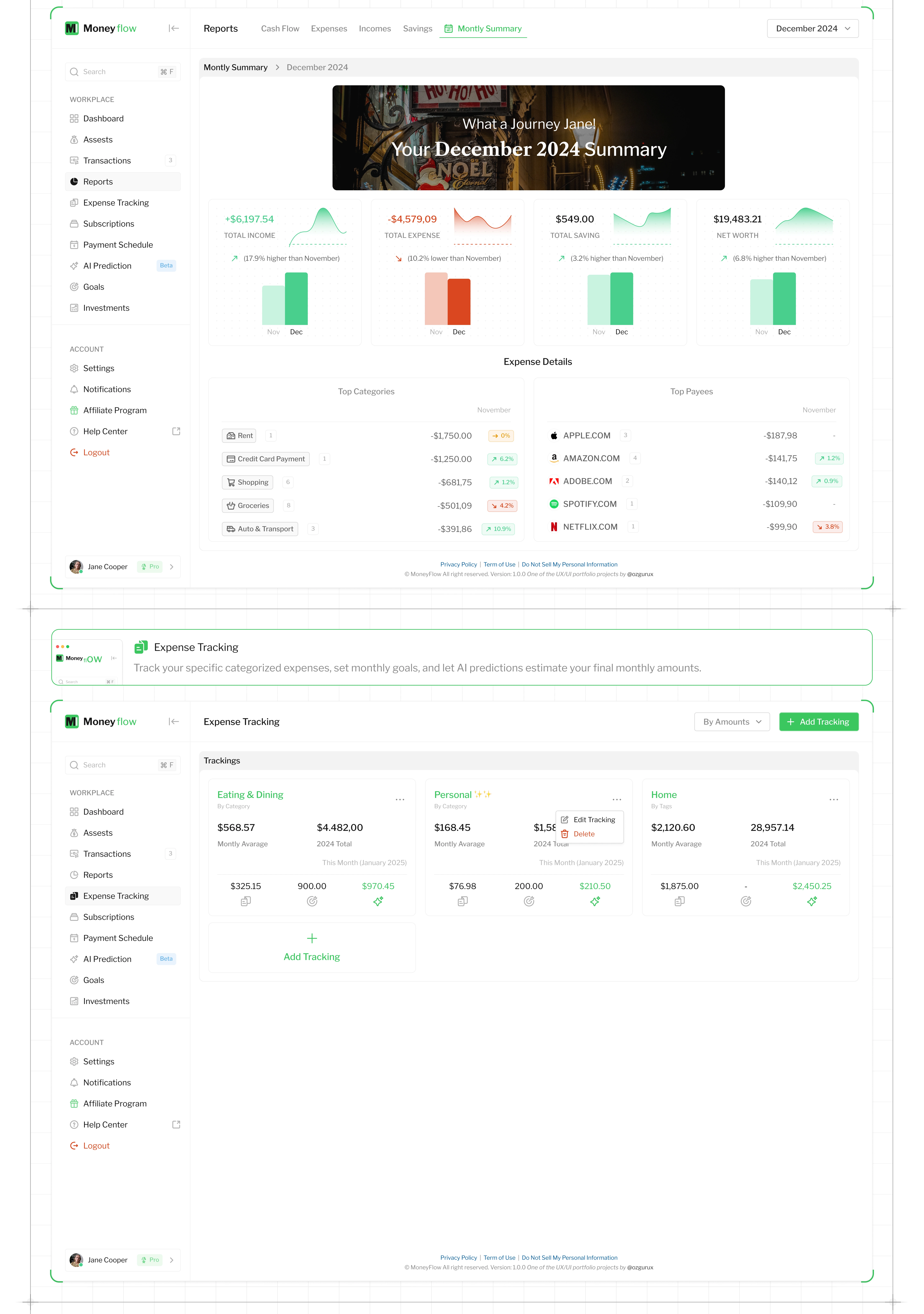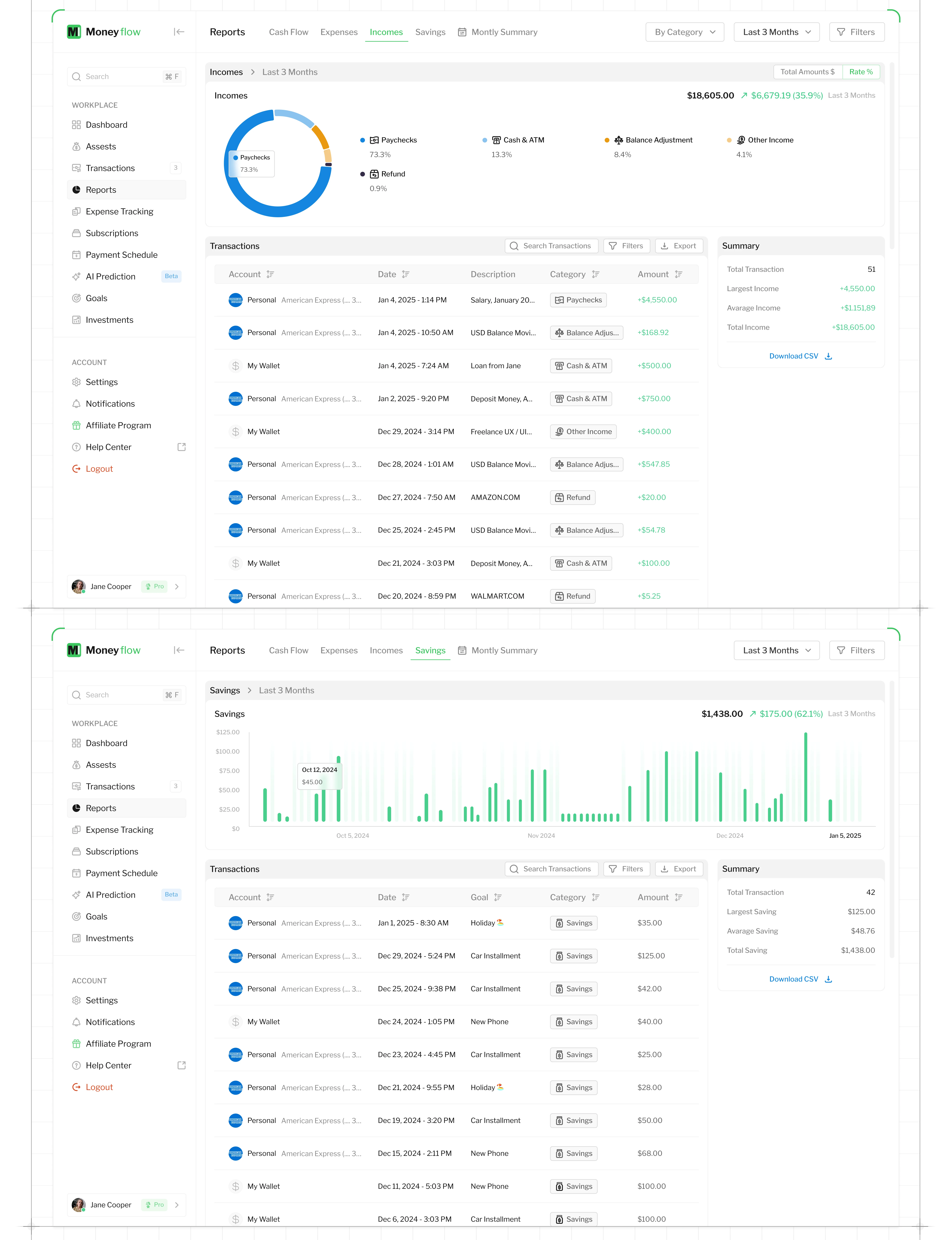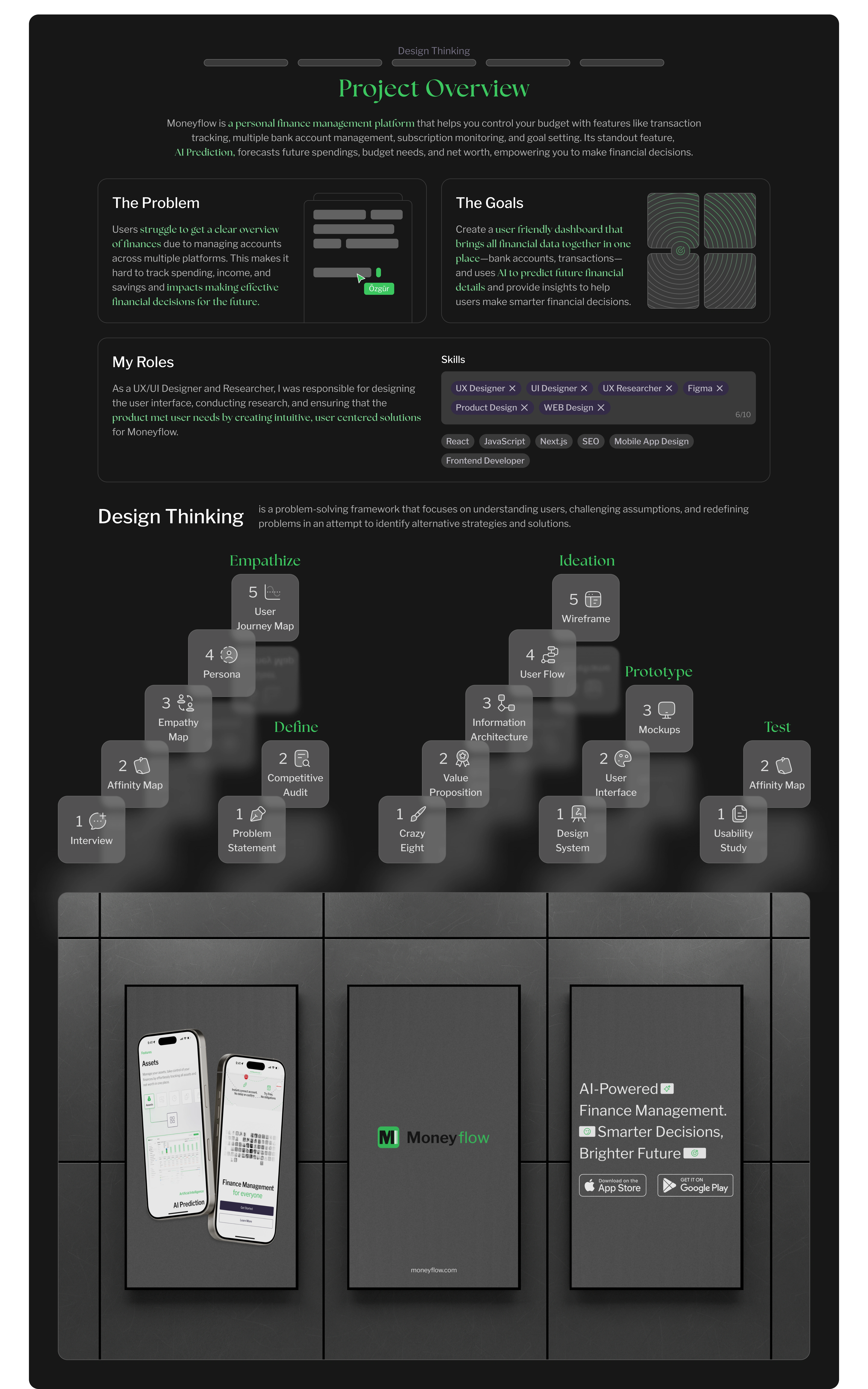 Designed with a Design Thinking approach, Moneyflow is a SaaS fintech platform that enables users to track expenses.