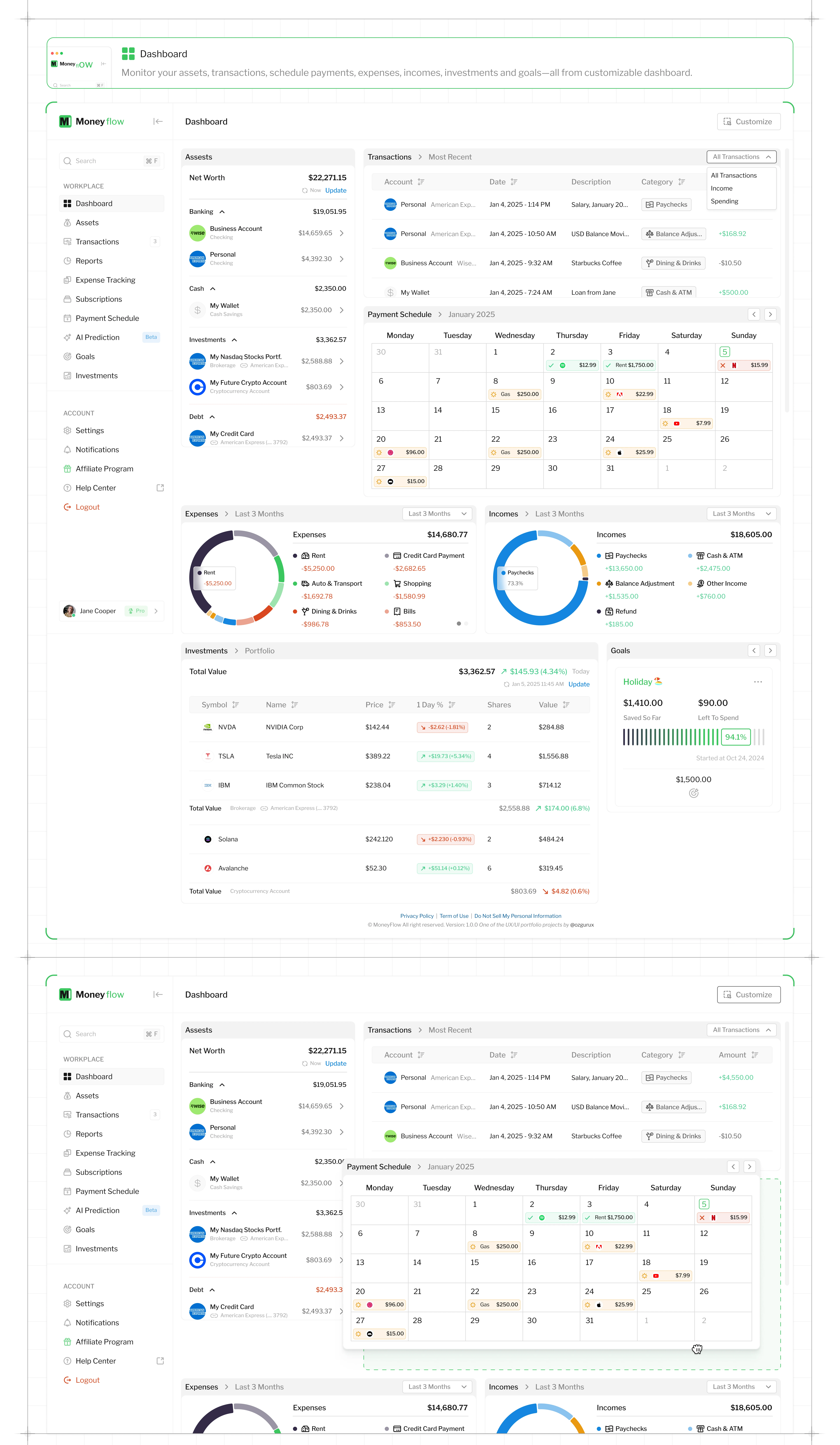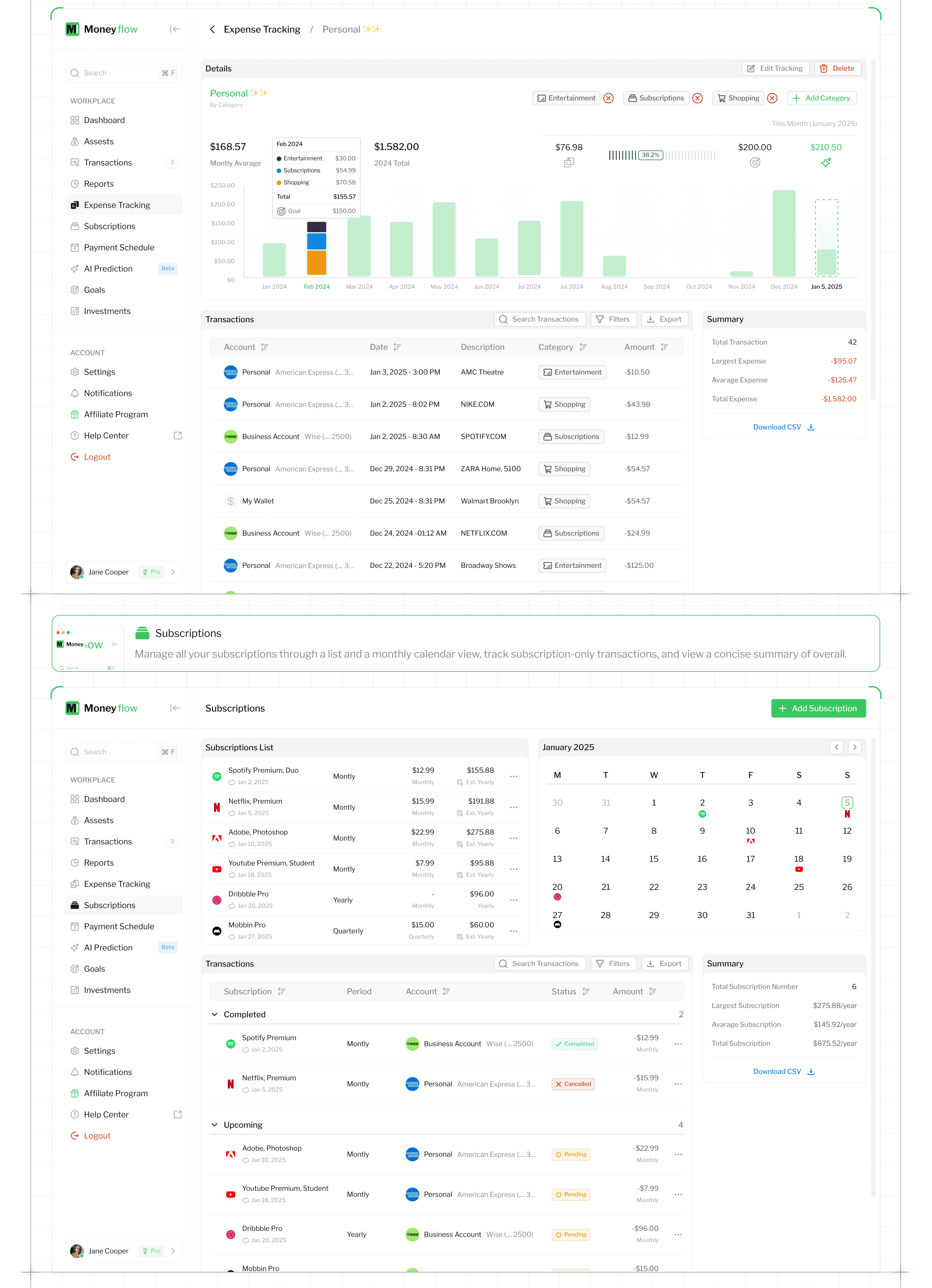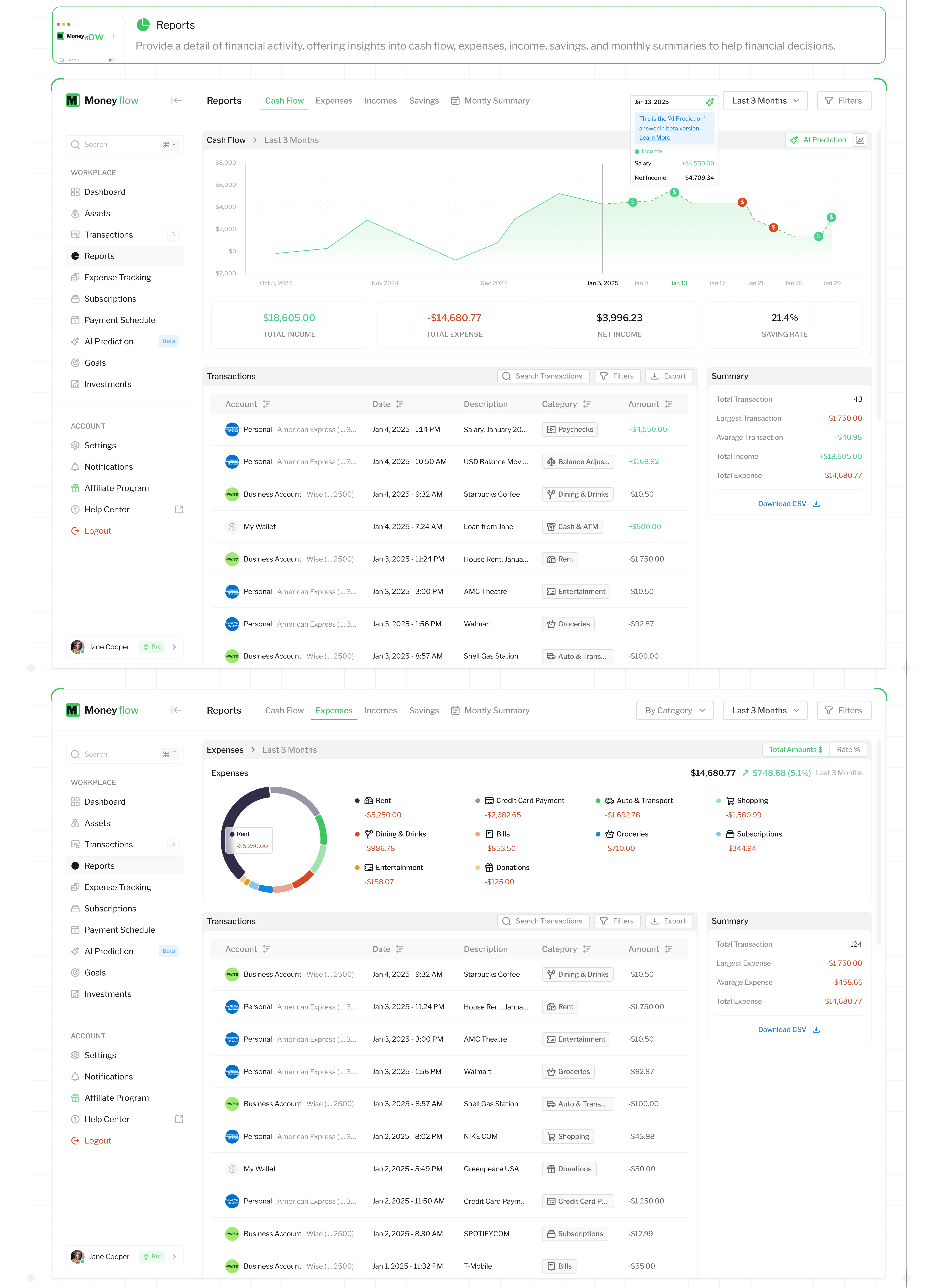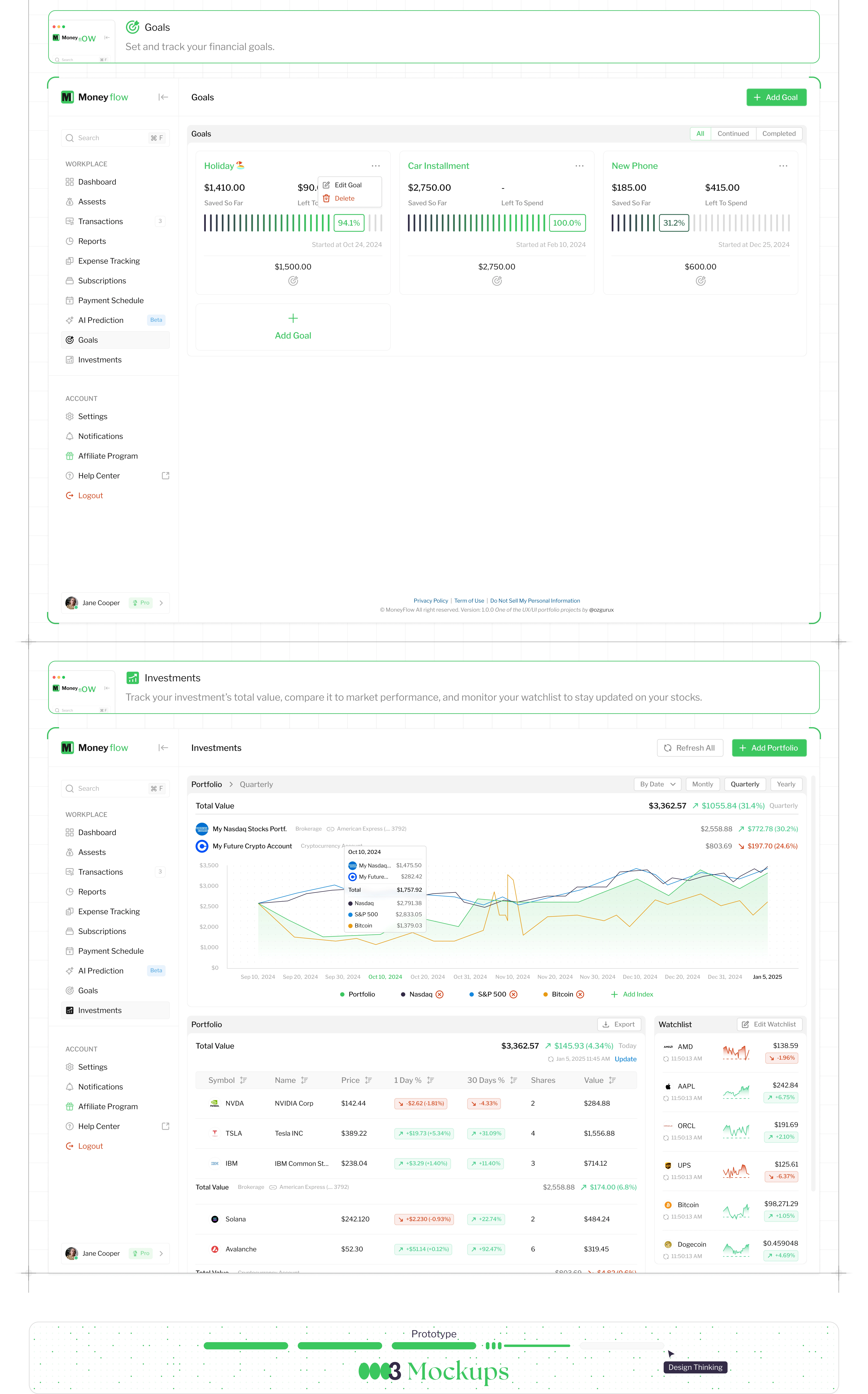Designed with a Design Thinking approach, Moneyflow is a SaaS fintech platform that enables users to track expenses.