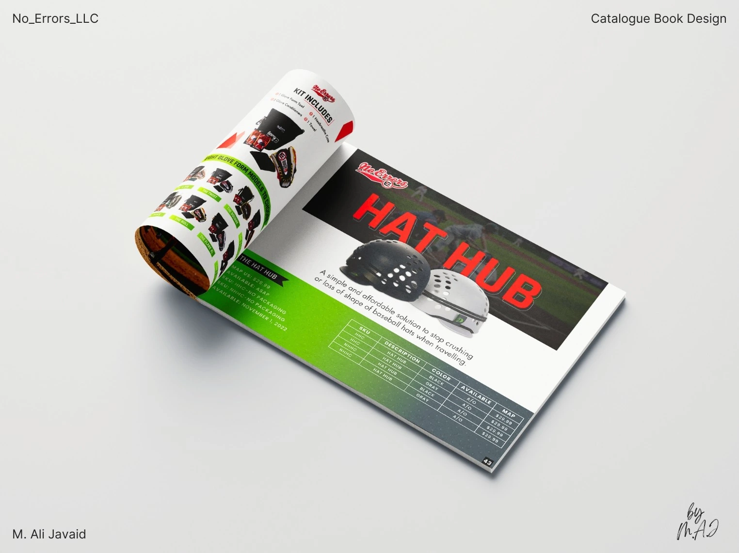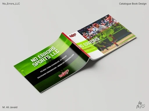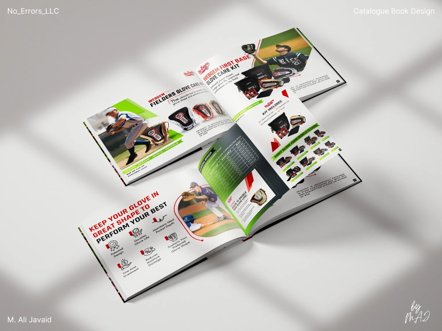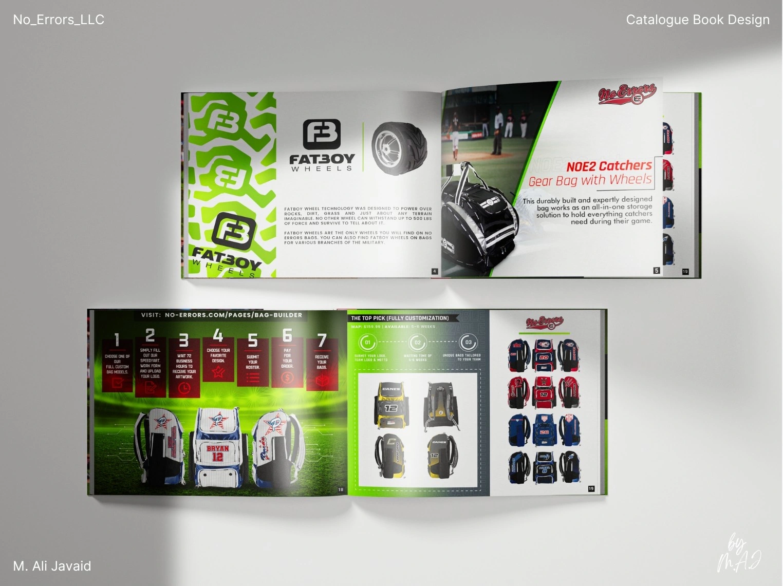 To move away from the brand’s usual red and blue, I introduced a secondary color palette centered on yellowish-green (#9ACD32). This choice wasn’t random: it was rooted in the sport itself. The tone mirrors the color of softballs and the field, while large areas of white space reference the clean, minimal aesthetics of baseball uniforms. Together, the gradient blends gave the catalog a look that felt fresh, focused, and directly tied to the world No Errors serves.