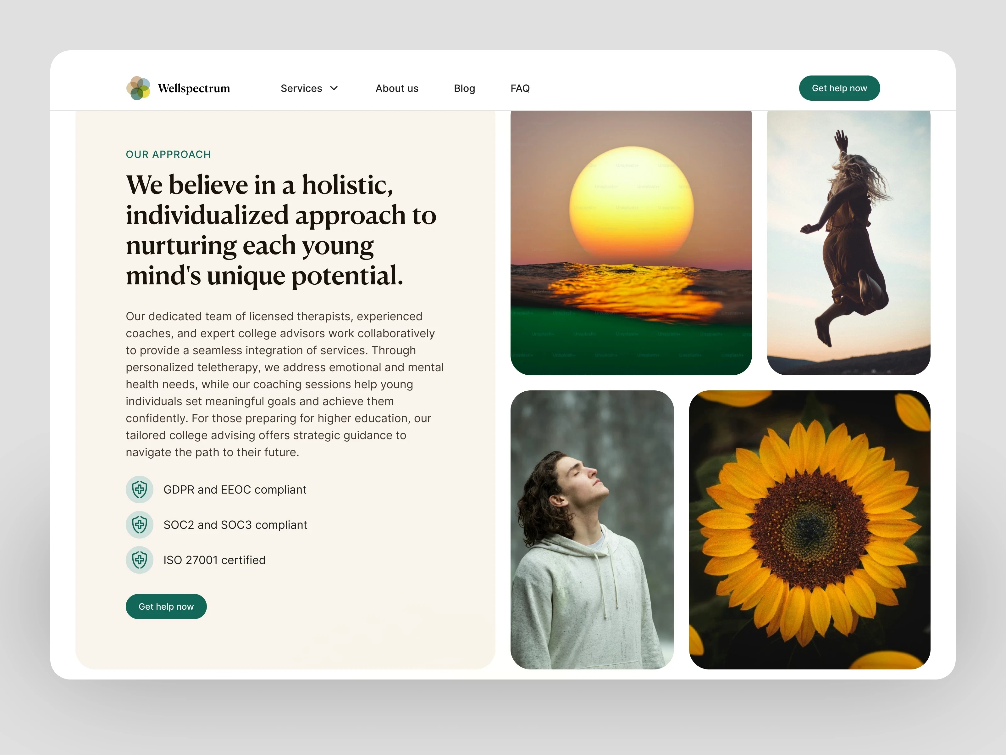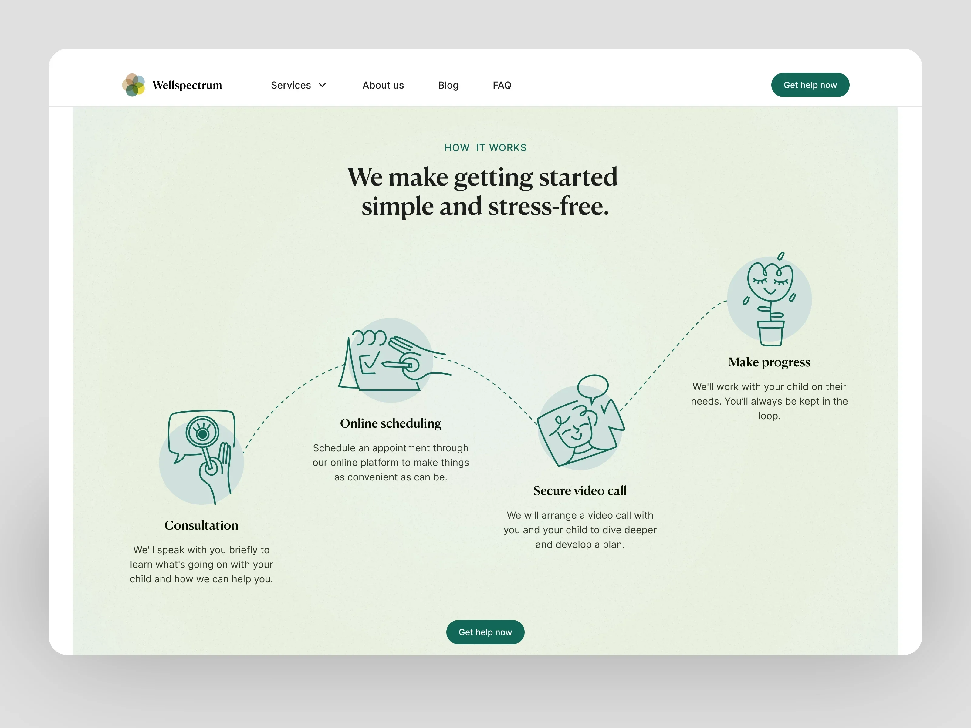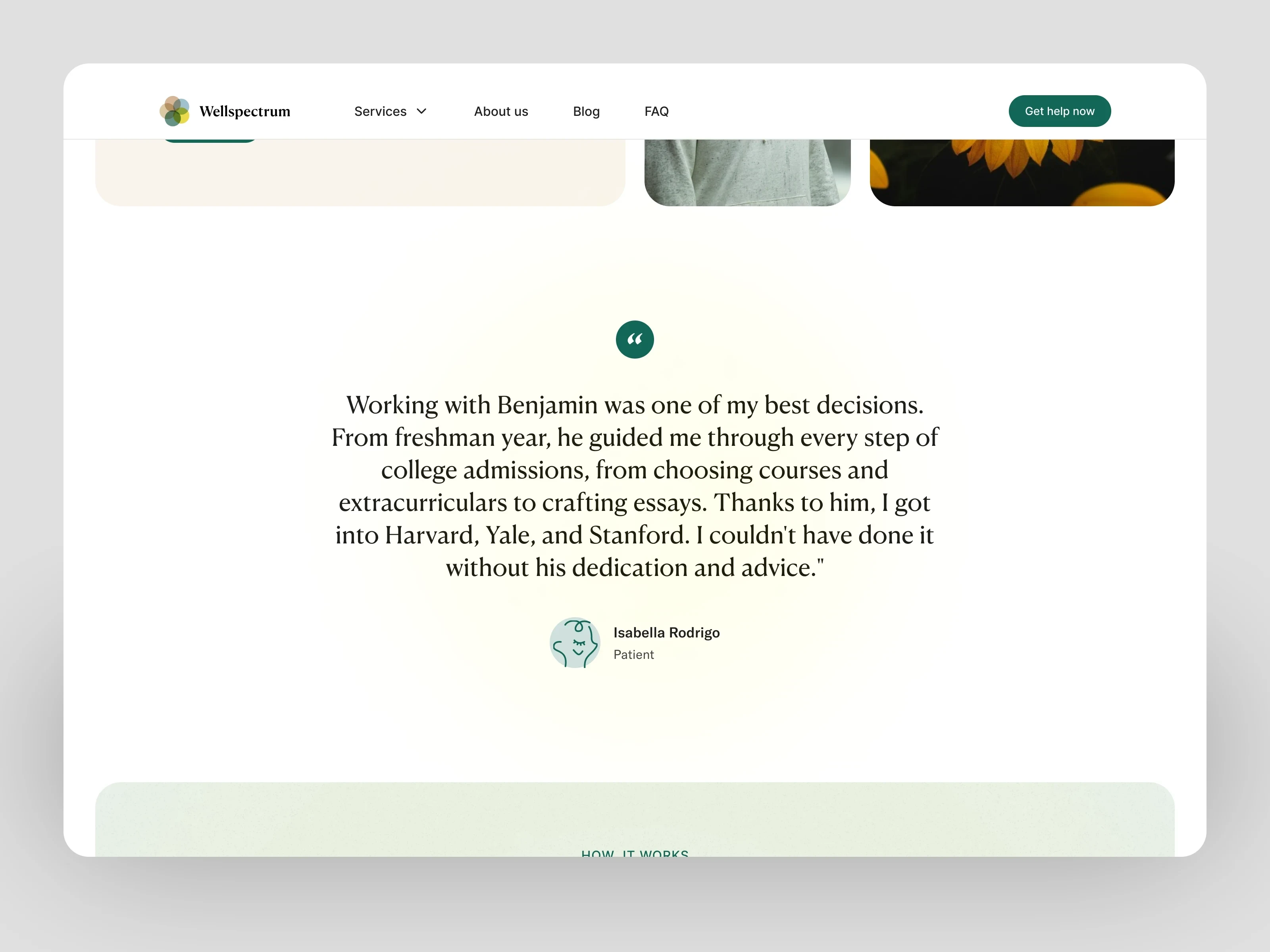 Wellspectrum is a 100% online platform that offers accessible comprehensive mental health care, coaching, and college advising to children, teens, and young adults.