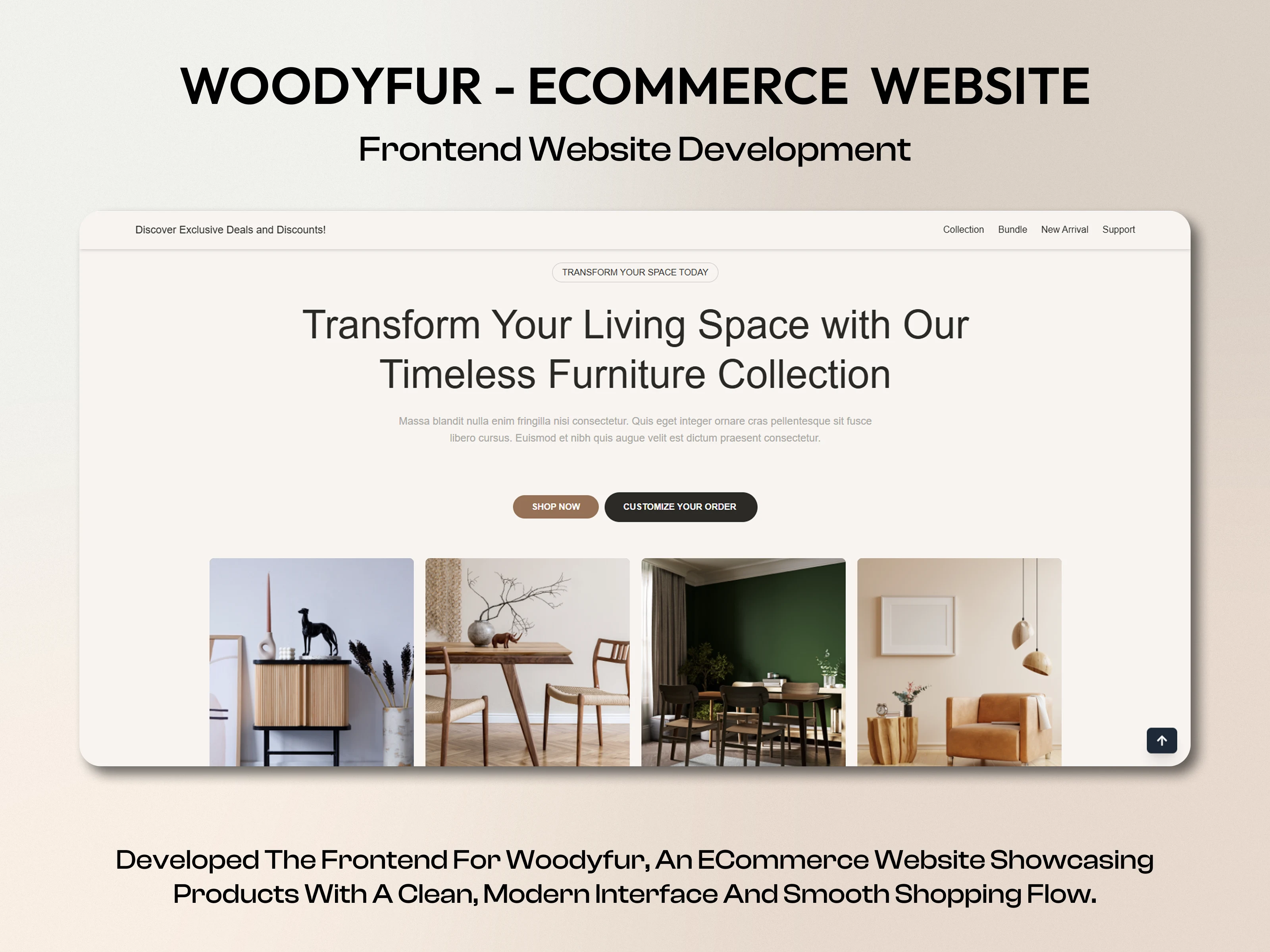 Woodyfur is a modern ecommerce platform for a furniture brand, built to deliver a visually rich and engaging shopping experience. The project involved transforming a static Figma design into a fully interactive, animation-driven web application that balances aesthetics, performance, and usability.