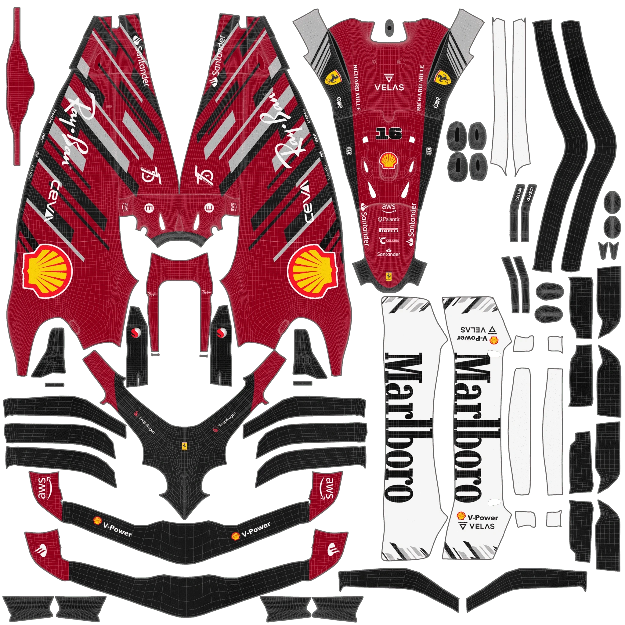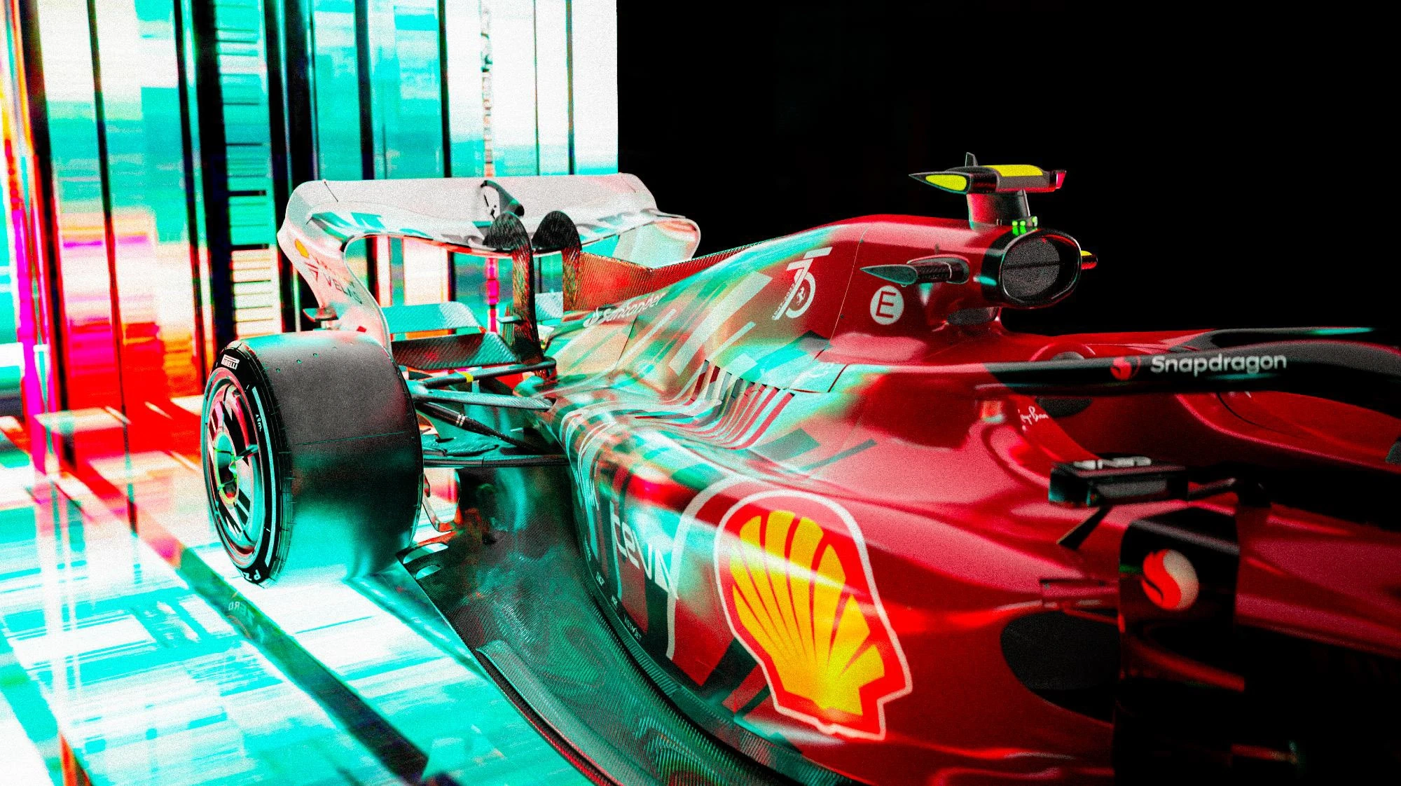 A bold livery blending Ferrari’s heritage and speed, with rich Rosso tones and sharp geometry to celebrate 75 years of racing legacy and innovation.