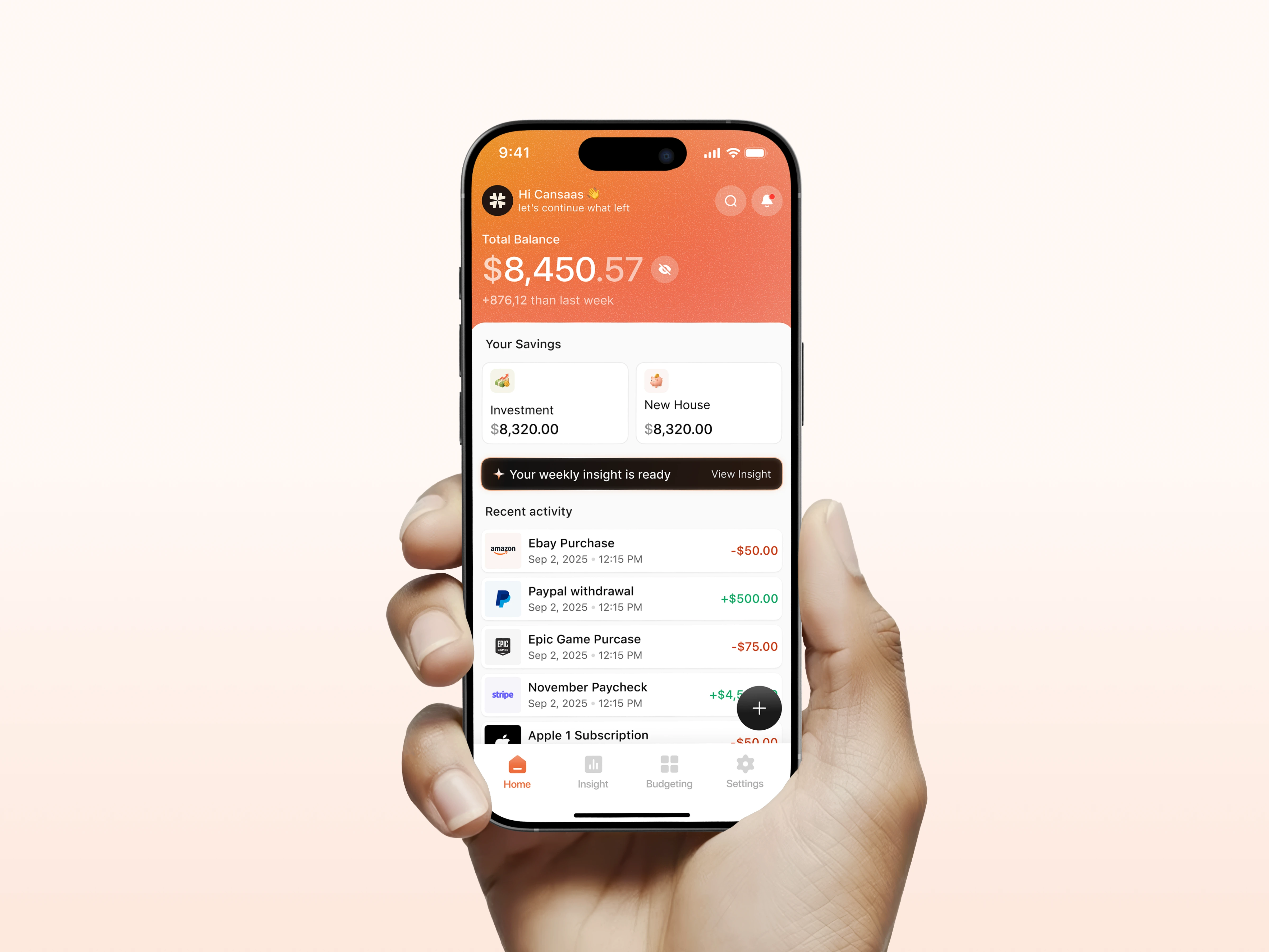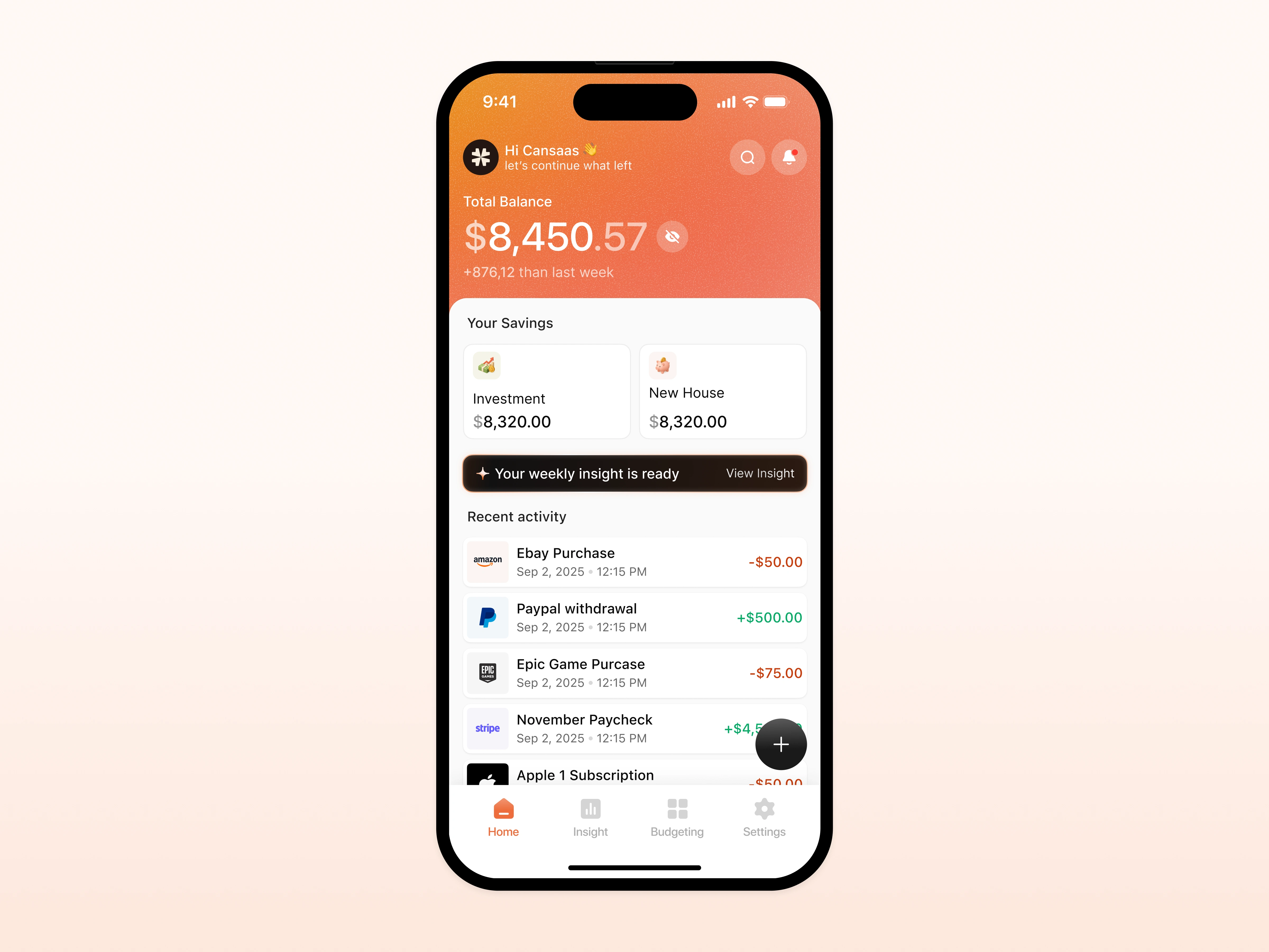 Money Tracker Mobile is designed to simplify personal finance management through a clean, modern, and visually intuitive dashboard. The interface blends functionality and aesthetics — balancing soft gradients, clear typography, and well-structured data visualization. Users can monitor their income, expenses, and weekly budgets effortlessly while gaining instant insights into their spending habits. The warm orange palette and fluid card layout create a sense of familiarity and trust, turning financial tracking into a calm and empowering experience.