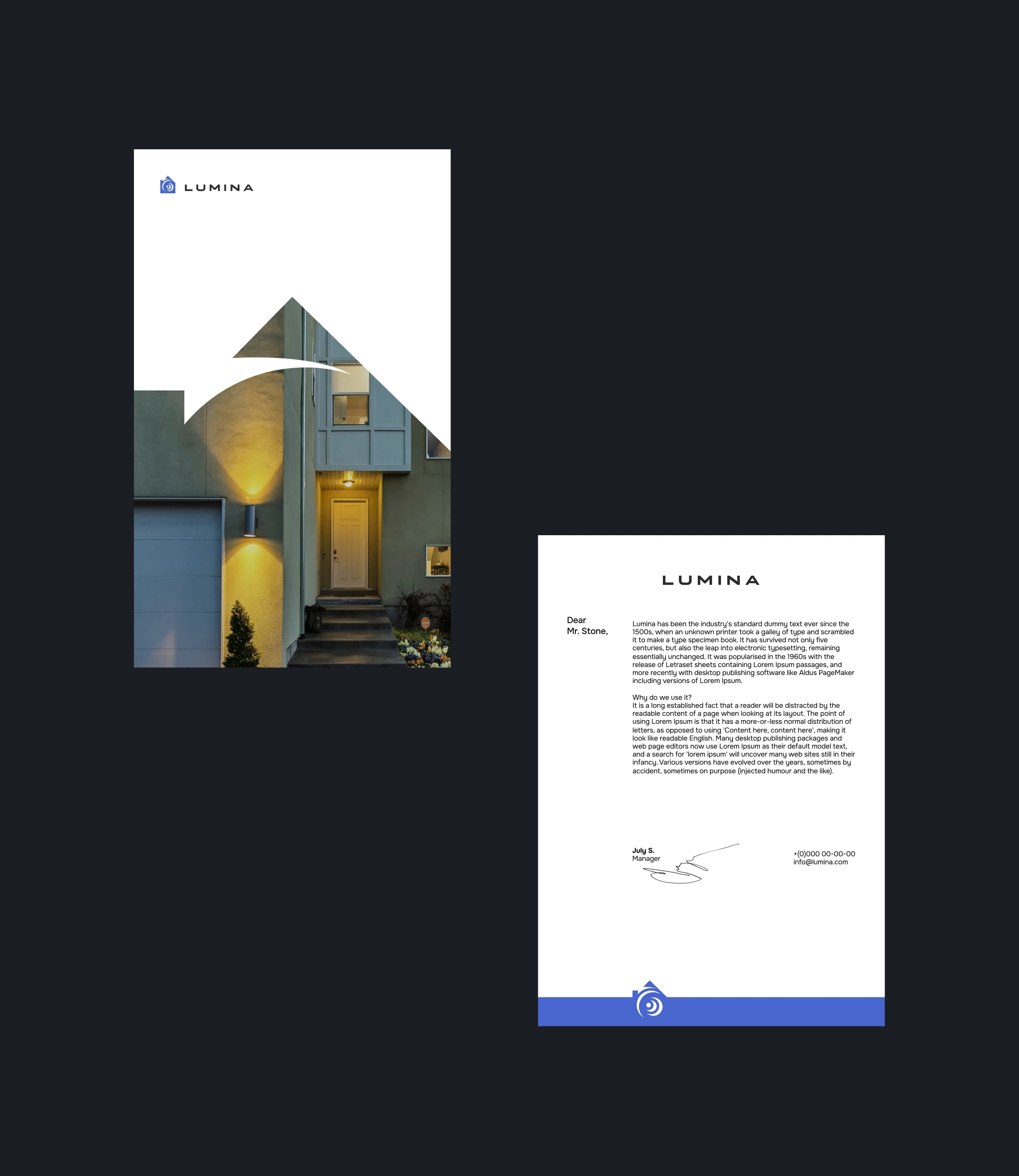 The resulting design combines a house silhouette with a camera lens in negative space, symbolizing Lumina’s expertise in real estate visuals. This minimalist yet impactful logo has become a key element of their branding, praised for its elegance and ability to convey trust and innovation.