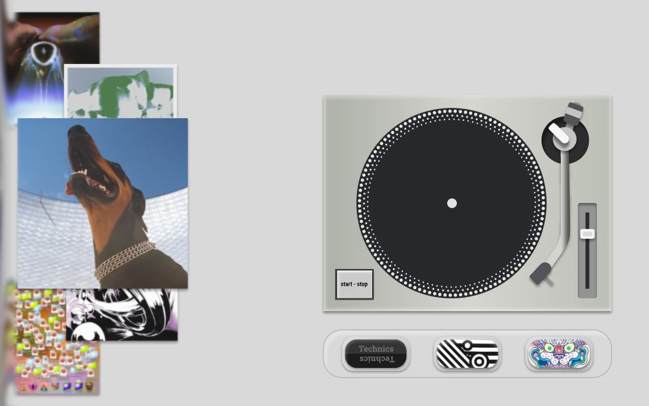 Attention to detail: The Technics-inspired turntable design, tonearm, pitch slider, and start/stop button were all modeled to feel familiar to anyone who's touched a deck. The record covers on the left are stacked and browsable, adding depth to the interaction.
