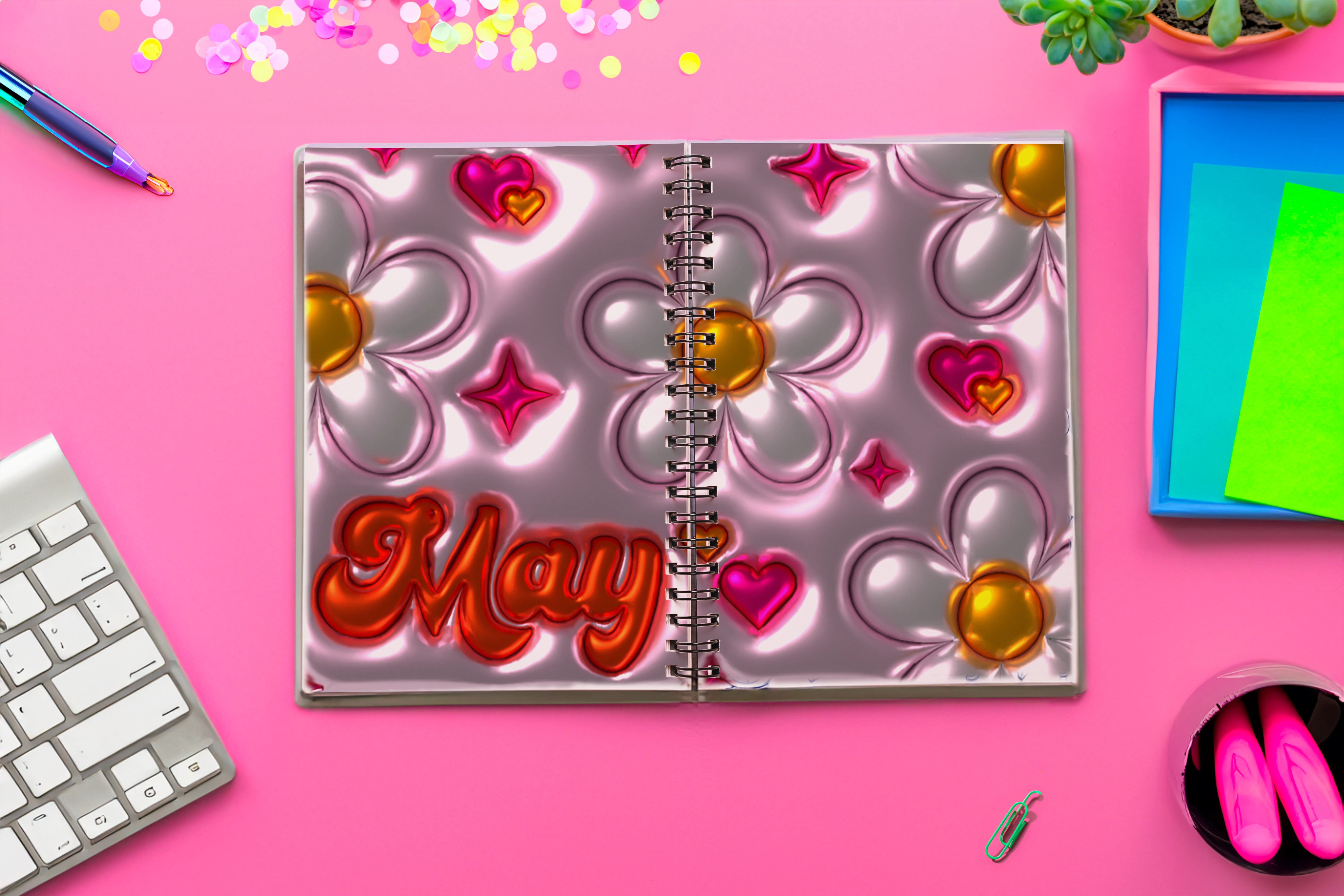 also serves as a platform for displaying art from other artists and small businesses. I had the honor of designing specific elements for the month of May, including a spread design,