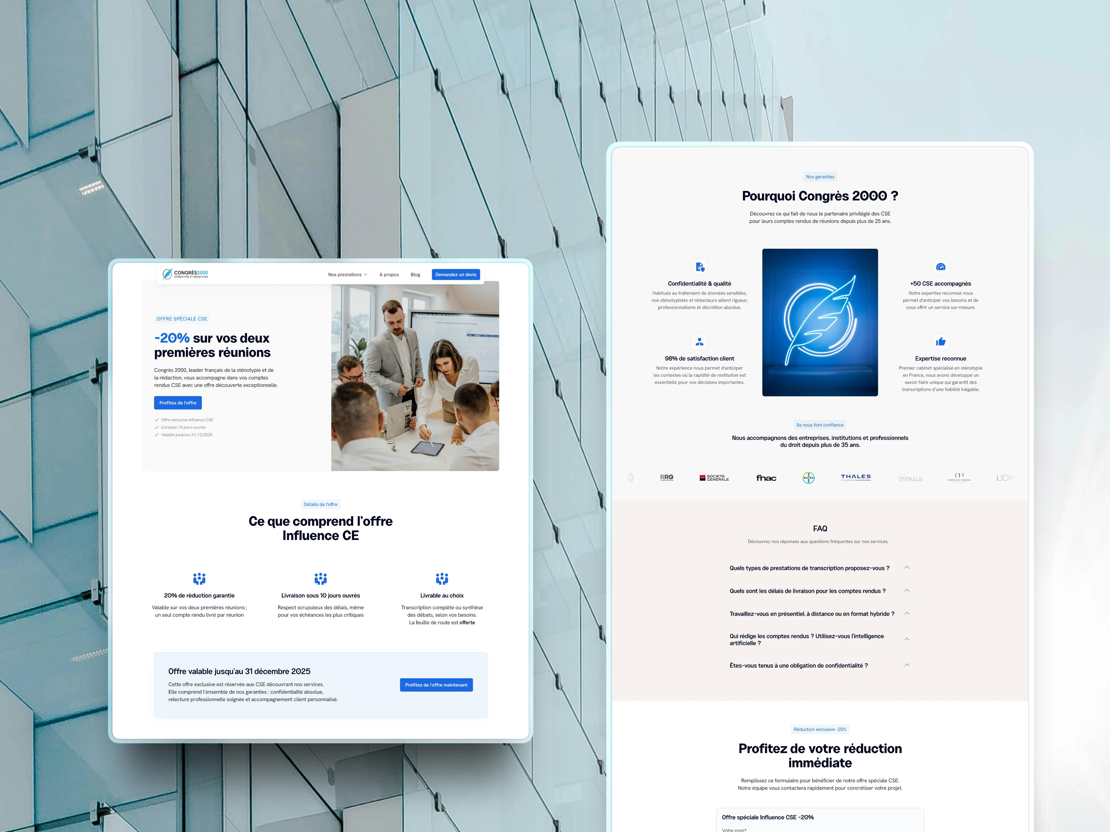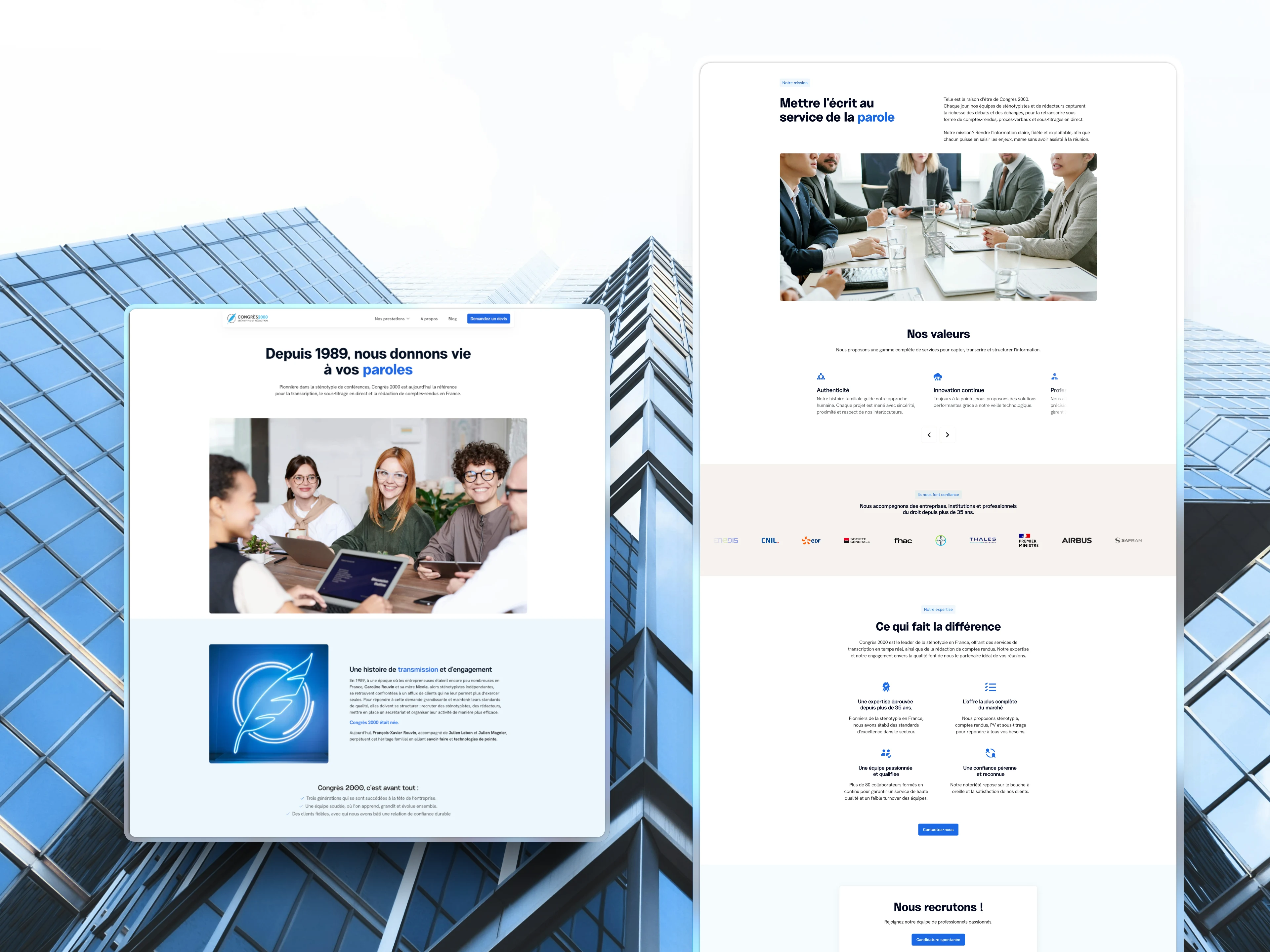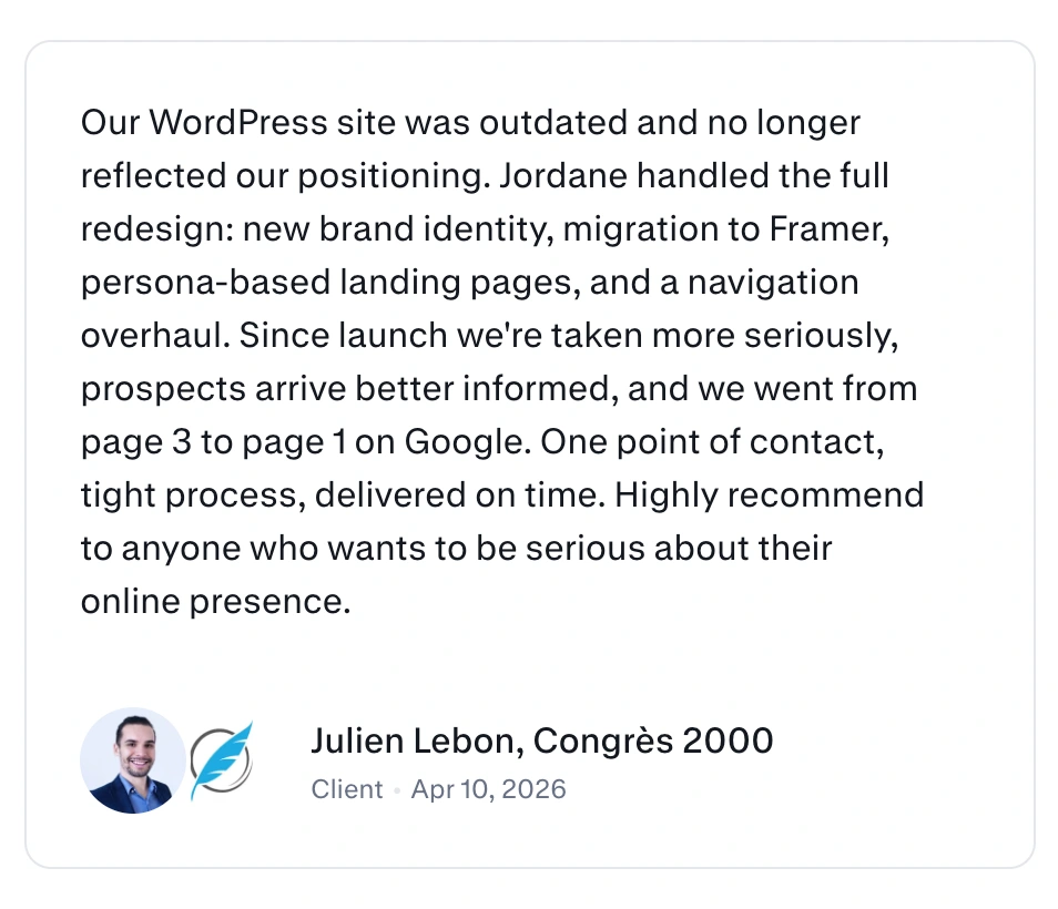Congrès 2000 is one of France's most specialized and longstanding transcription and stenotypy firms. 35 years of service to companies, institutions, legal experts, and HR professionals who need every word captured with zero margin for error. But their digital presence told a different story: an aging WordPress site, riddled with technical SEO issues, visually outdated, and completely misaligned with their actual offer. A business built on precision and trust was nearly invisible online.