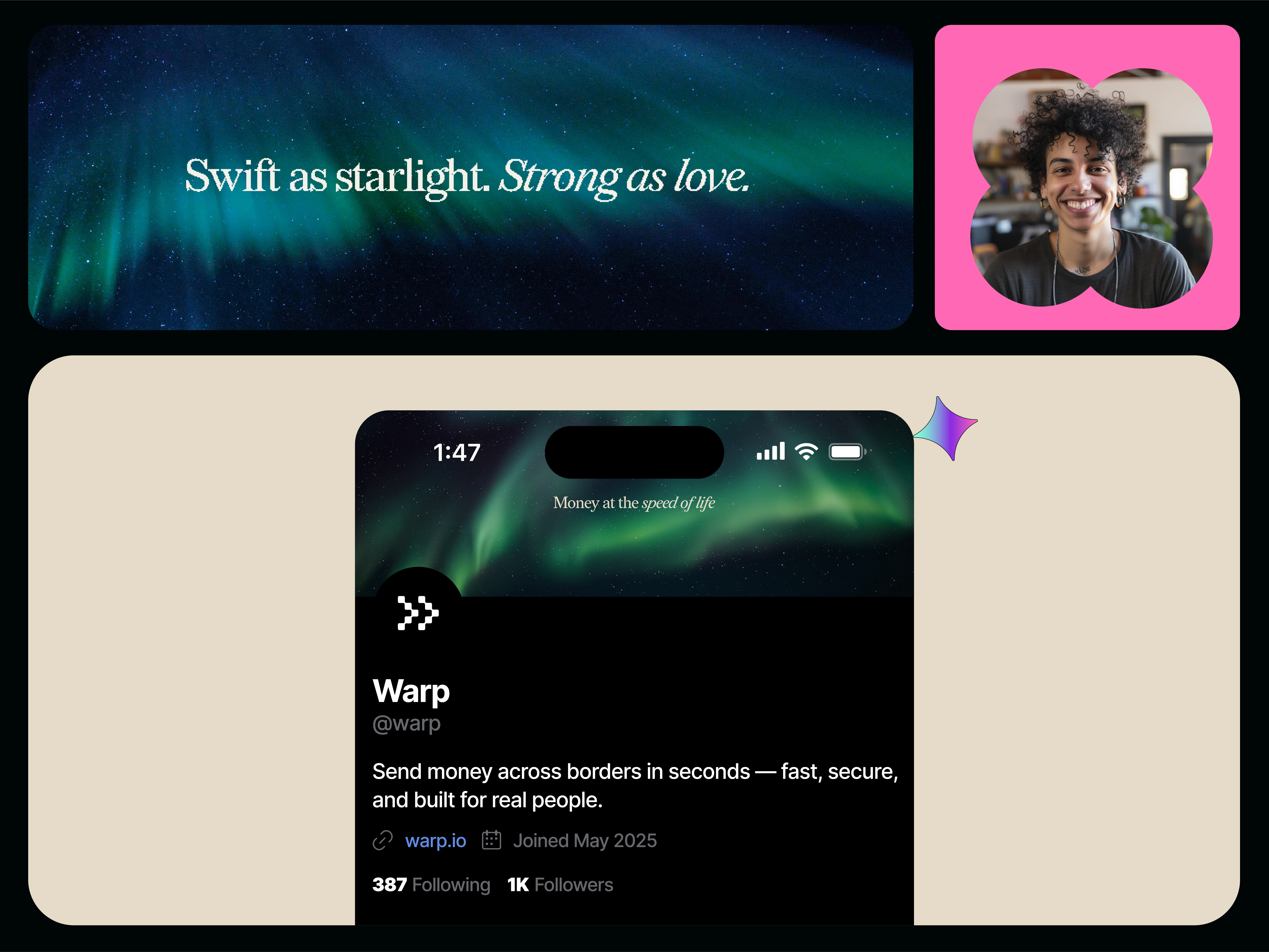 It takes just a few seconds to send a message, and with Warp, that’s all it takes to move your money too. In those fleeting moments, bills are paid, families are supported, and tuition is covered...across continents, currencies, and time zones. With Warp, fast, secure cross-border payments feel as easy as texting.