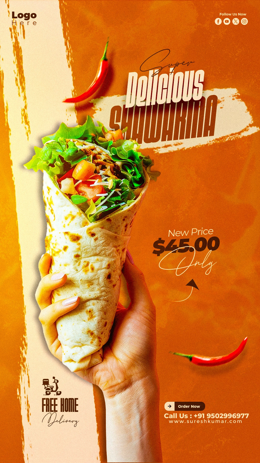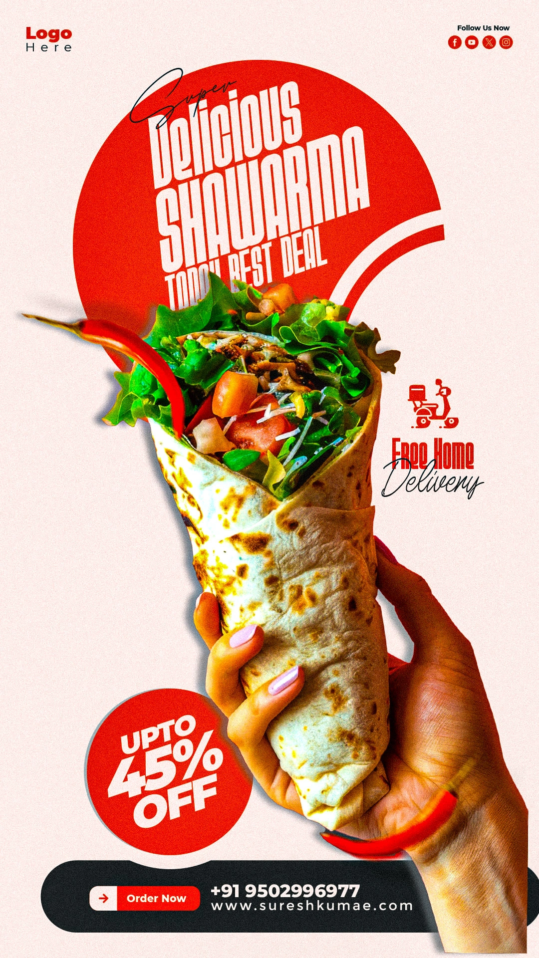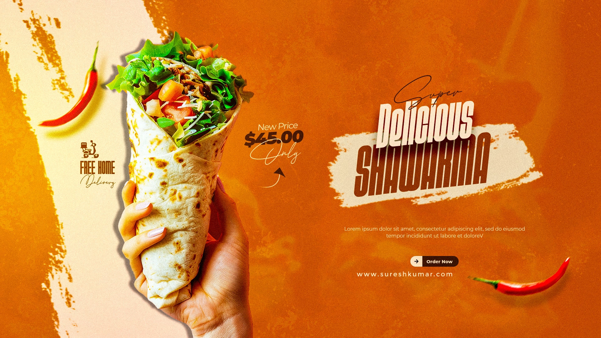 Premium shawarma banner with bold typography, rich colors, and clean composition designed to capture attention, highlight offers, and drive customer engagement.