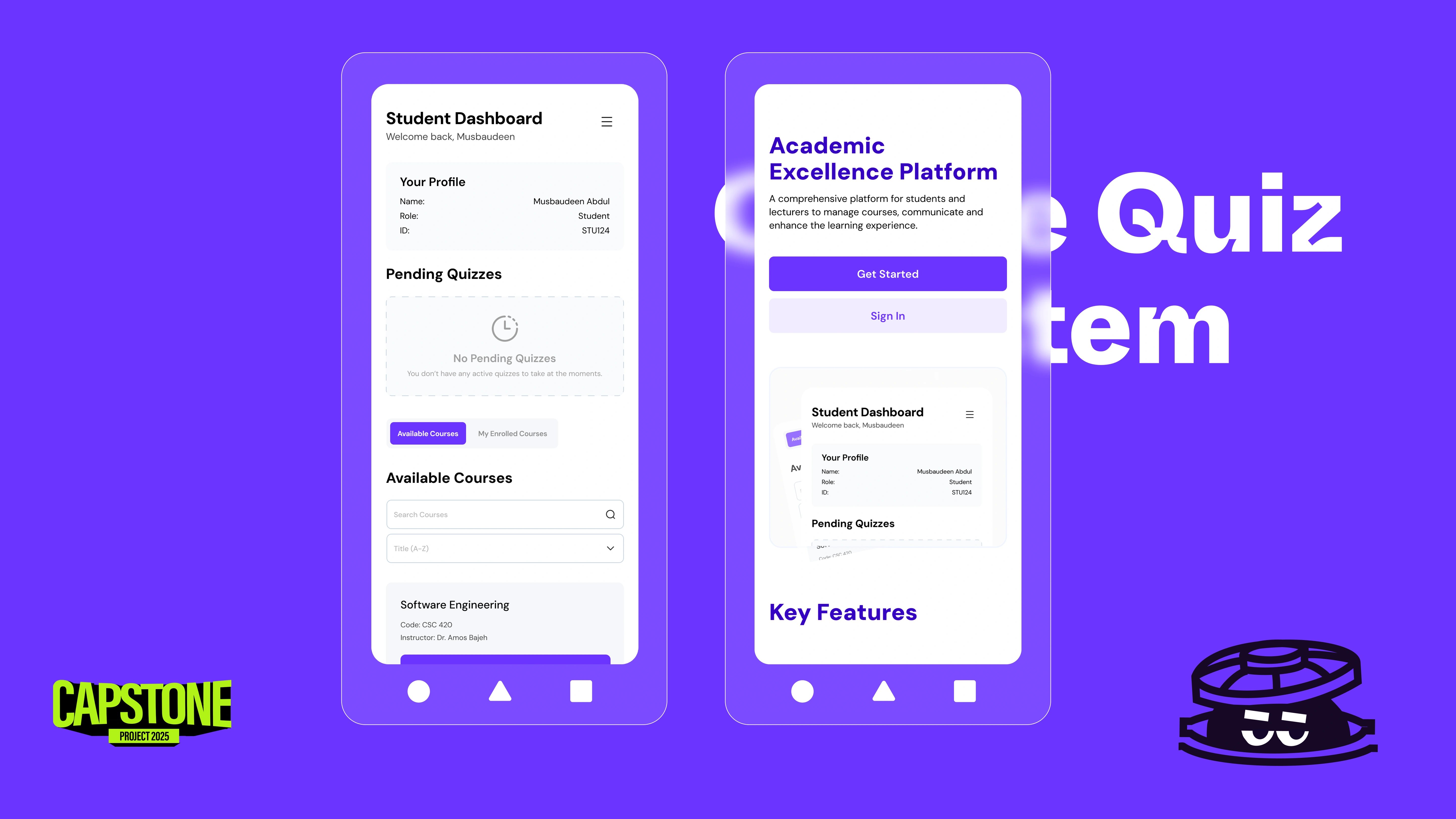 I crafted a mobile UI for Online quiz system in a Capstone project, applying UI principles of spacing, typography, and contrast for a clean, aesthetic look.