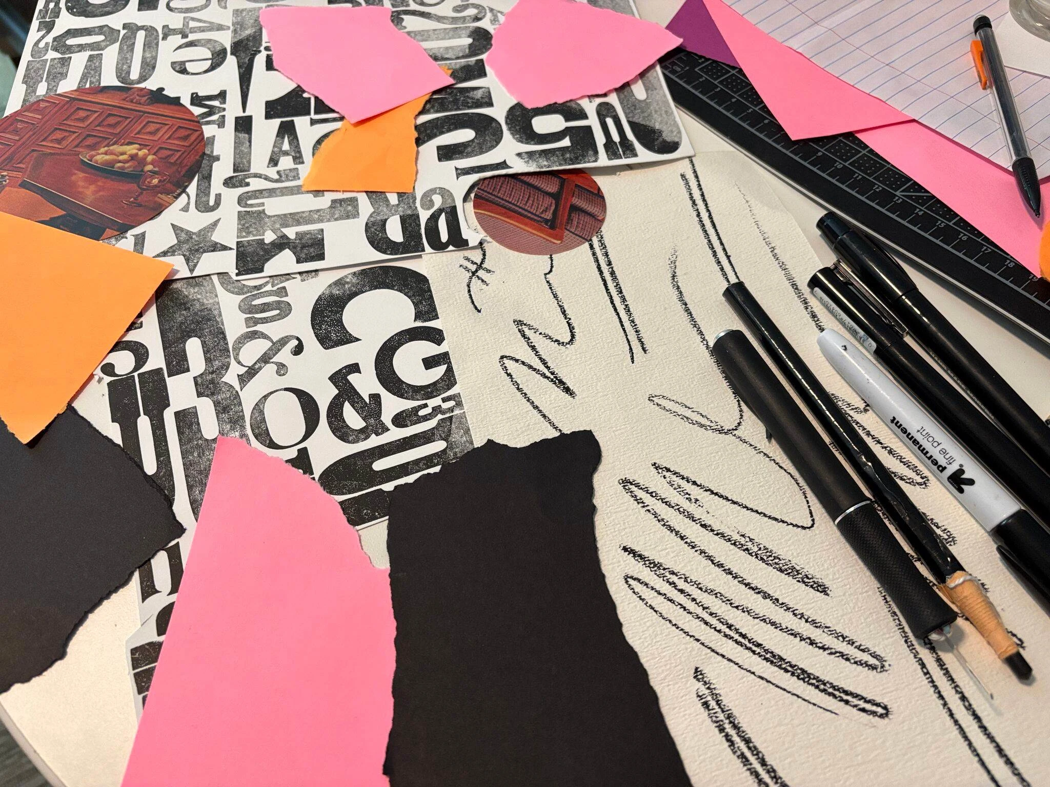 Wealth.com Illustration. Analog and Digital combination. (*Hand made) Using antique paper, china markers, graphite, and wood block prints mess-ups I bought.