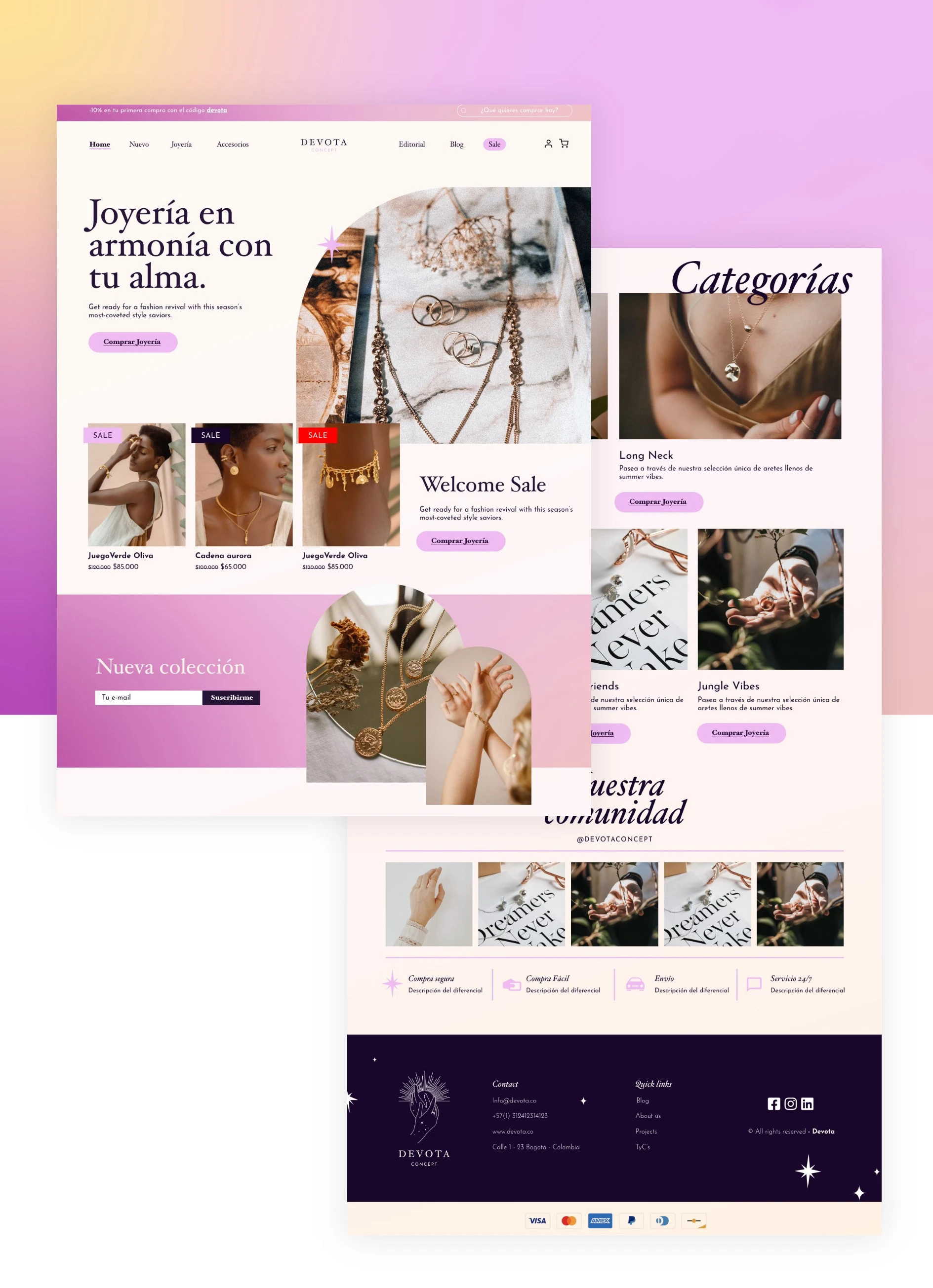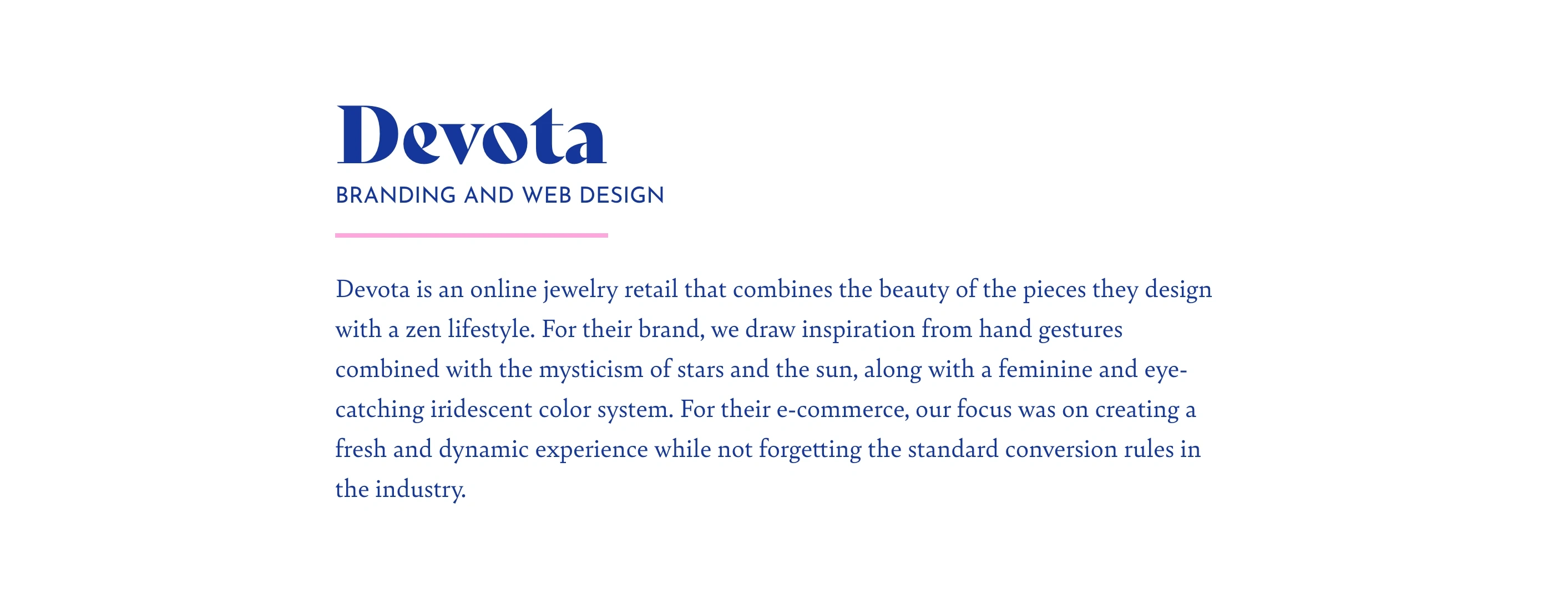 Devota is an online jewelry retail that combines the beauty of the pieces they design with a zen lifestyle. For their brand, we draw inspiration from hand gest…