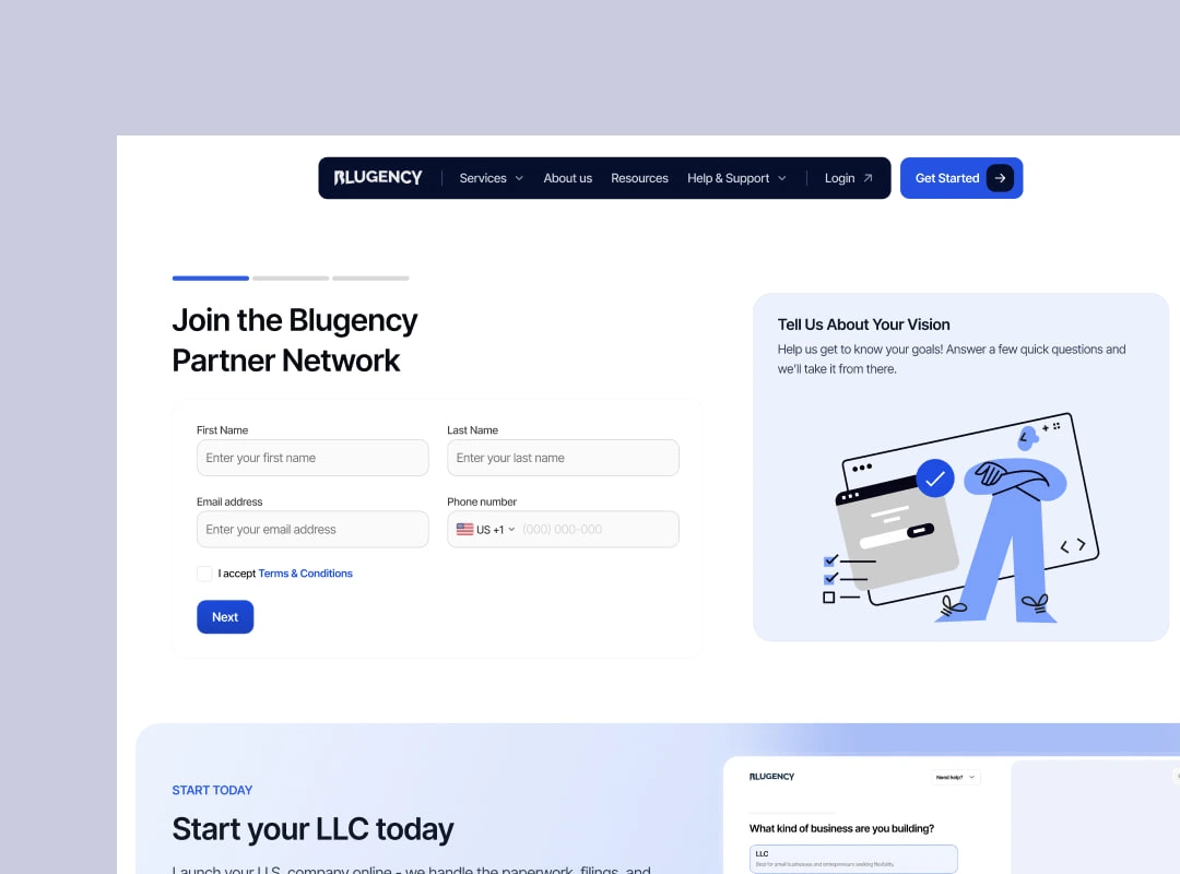 From strategy and branding to product design, development, and growth, Blugency partners with teams to turn ideas into high-performing digital experiences. We focus on clear communication, fast execution, and measurable results - no fluff, no wasted time.