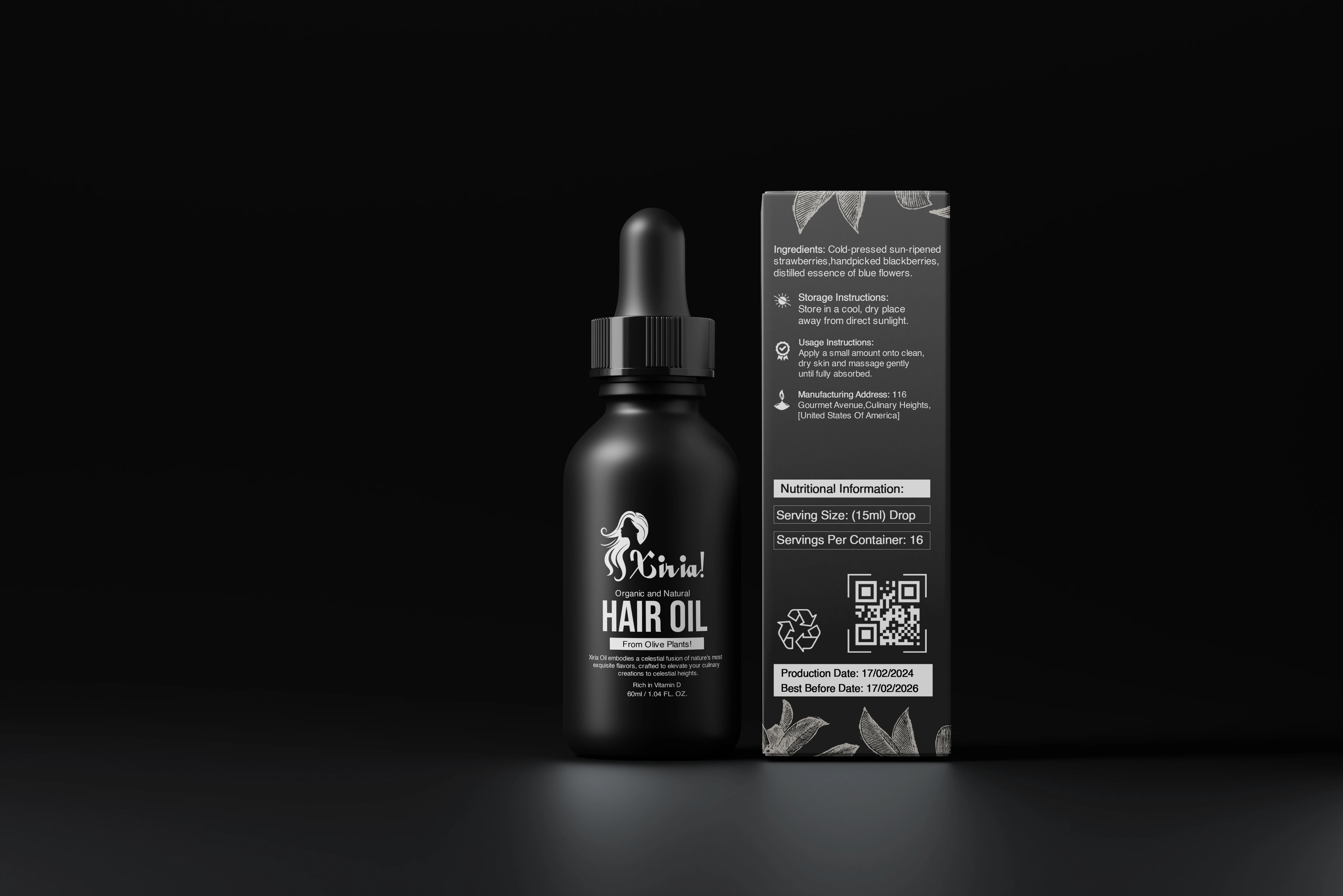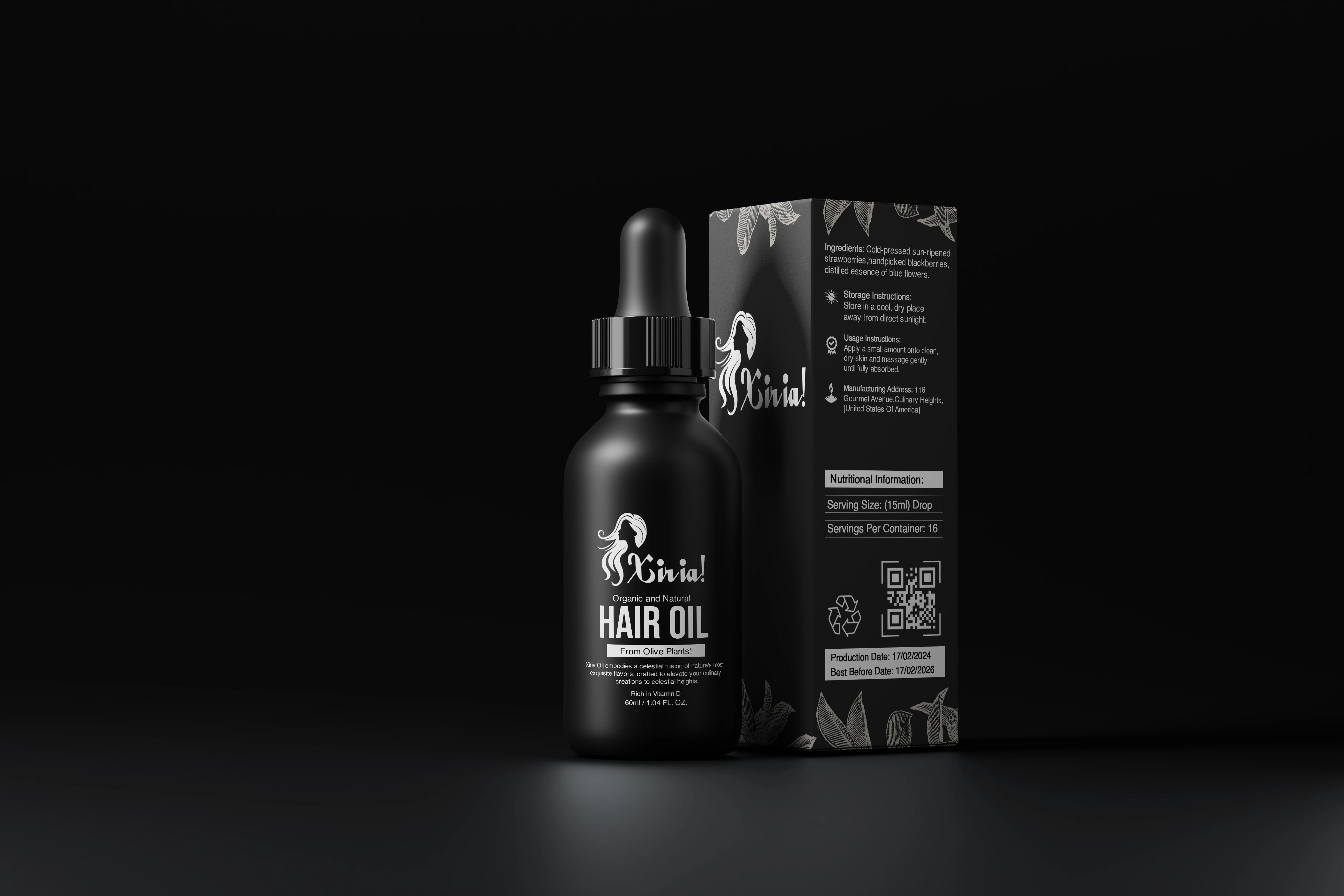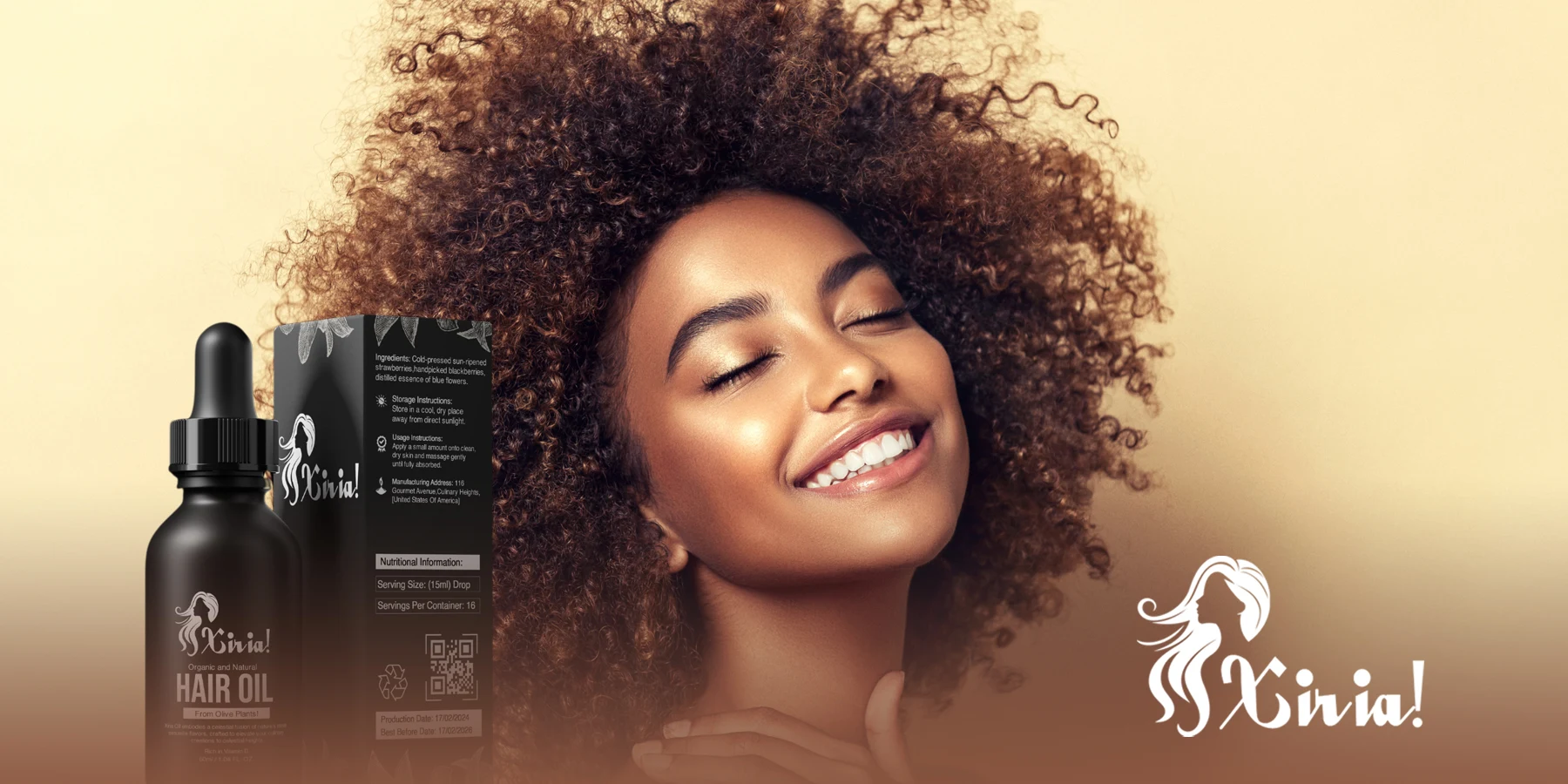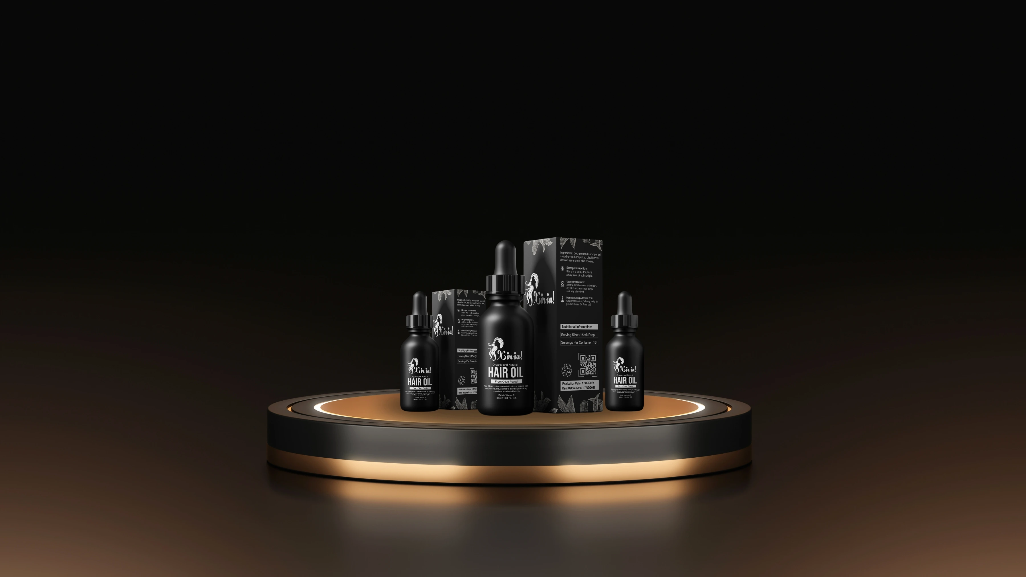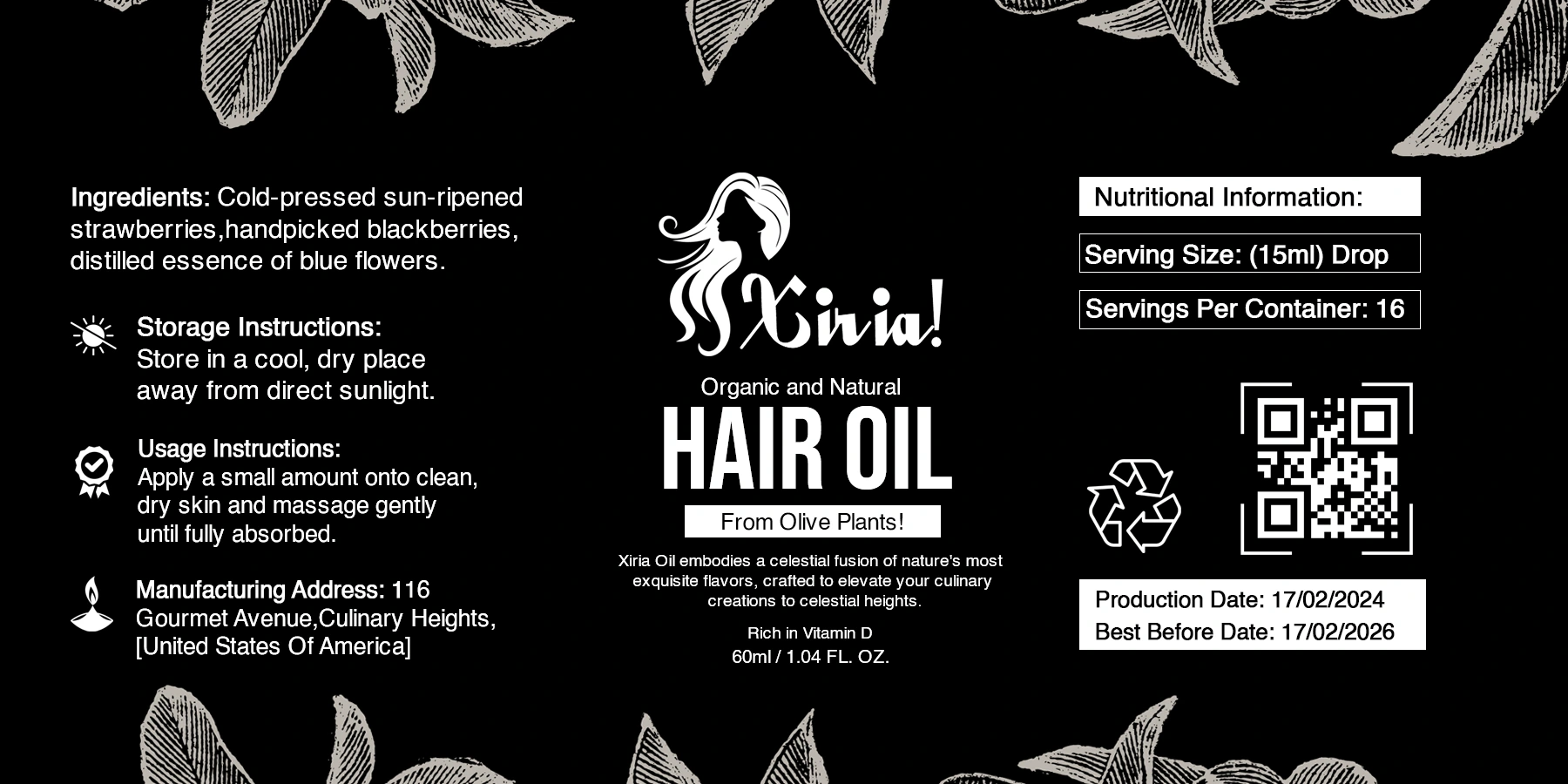 I Created an elegant, and modern label design for Xiria Hair Oil, focusing on natural beauty, wellness and self-care lovers.