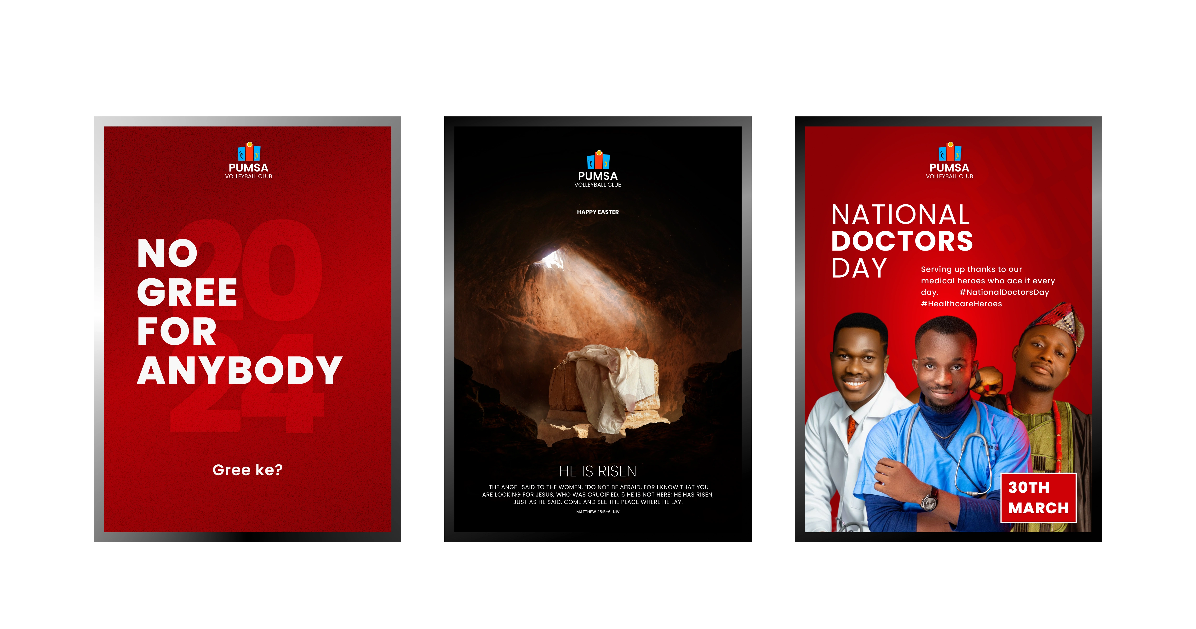 Posters for Sports events campaigns. The minimalistic and clean design was able to put the brand out there and led to great engagement and turn up for events.