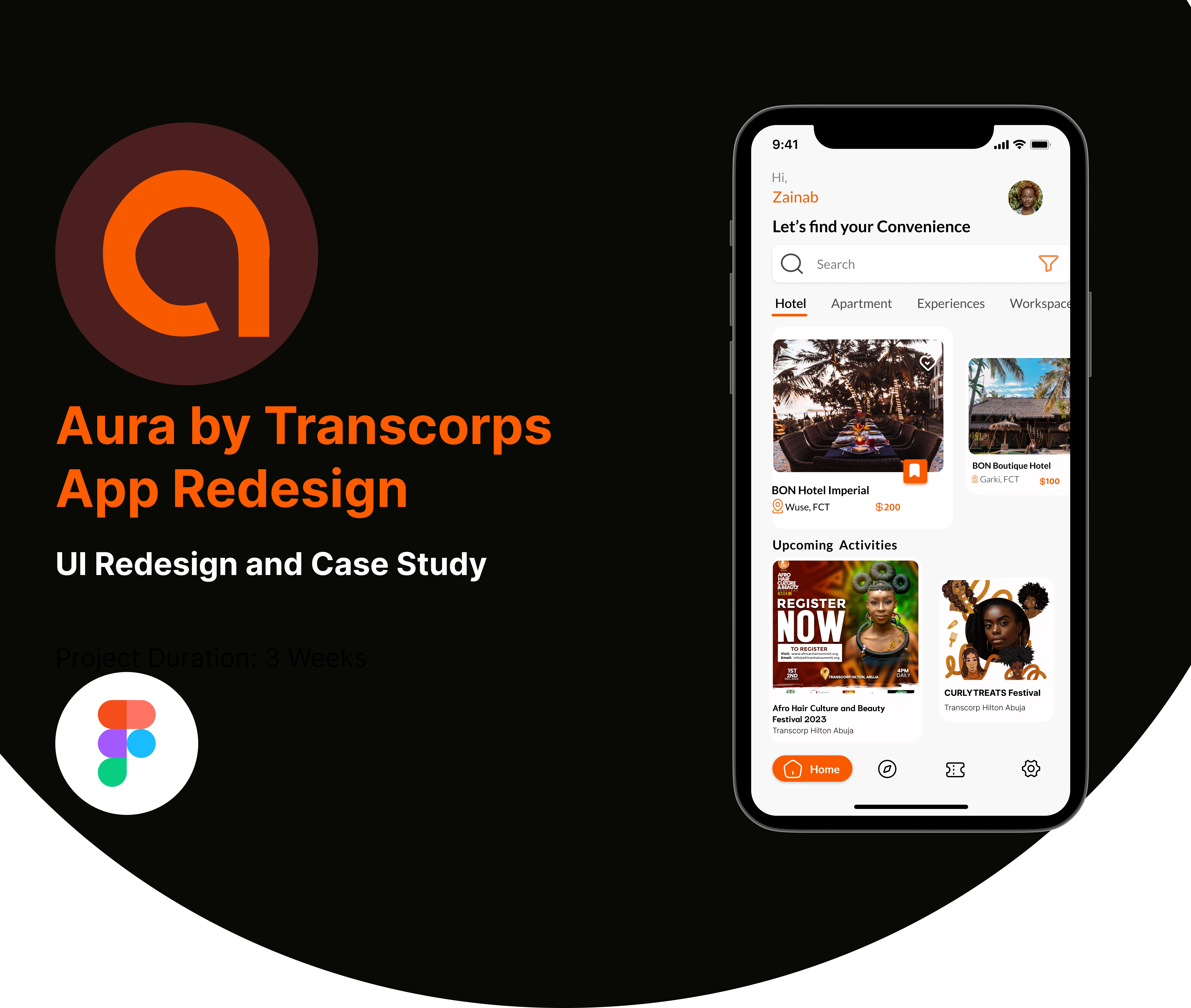 Redesigned Aura App for Transcorp Hotels your all-in-one companion for a seamless, elevated stay with smooth booking, room service, and guest experiences.