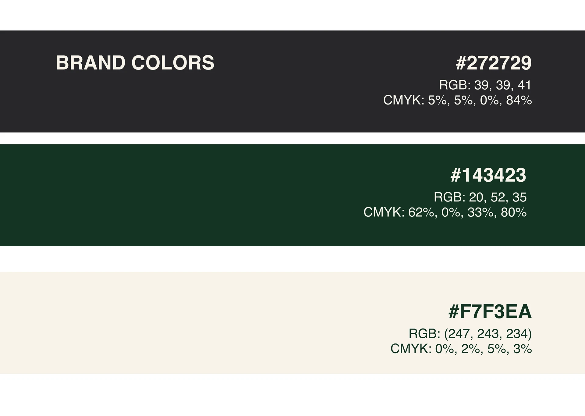 Verdant Roots' brand colors: earthy greens to represent health, nature, and growth.