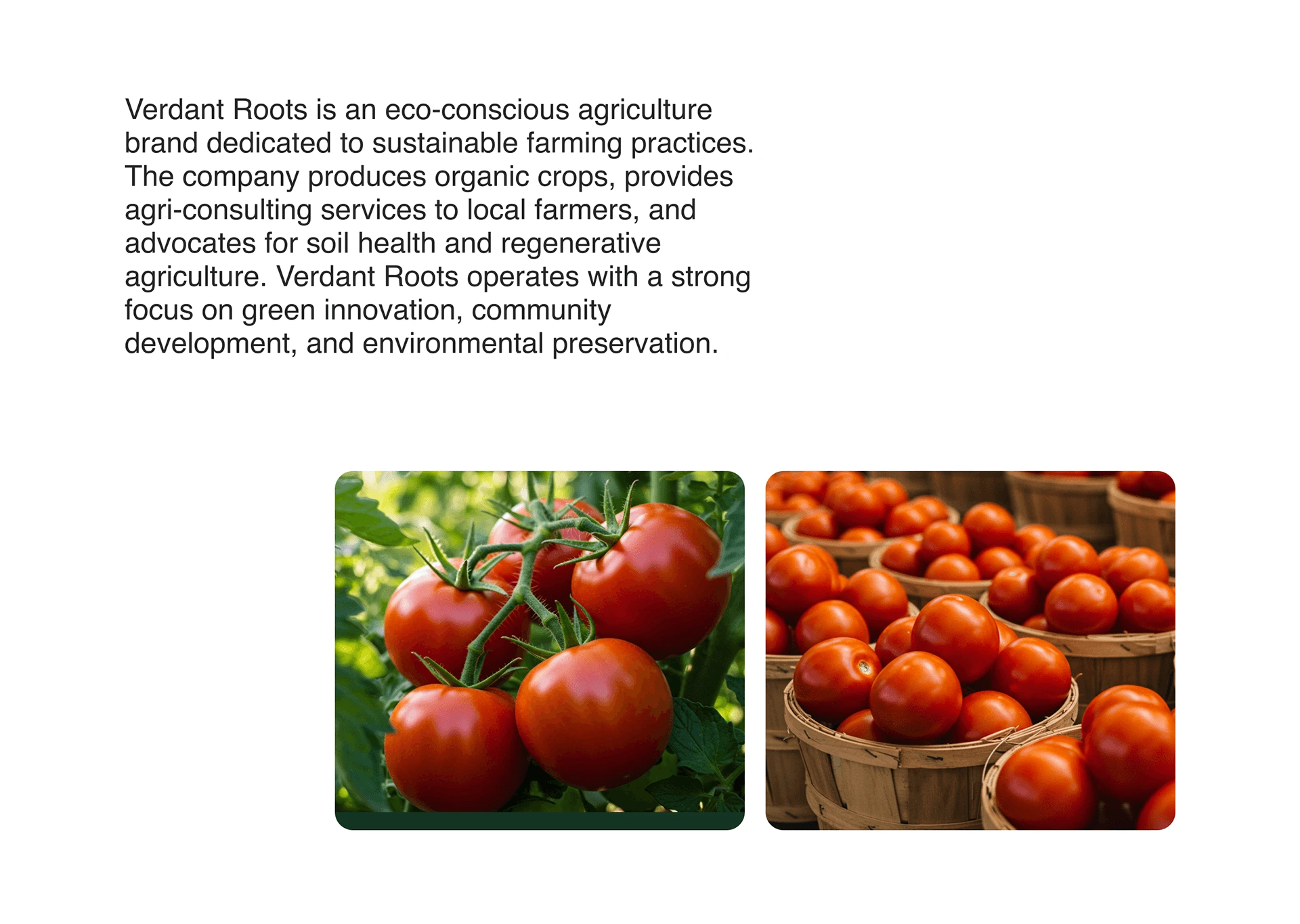 Verdant Roots: Cultivating sustainable agriculture with an eco-conscious passion.