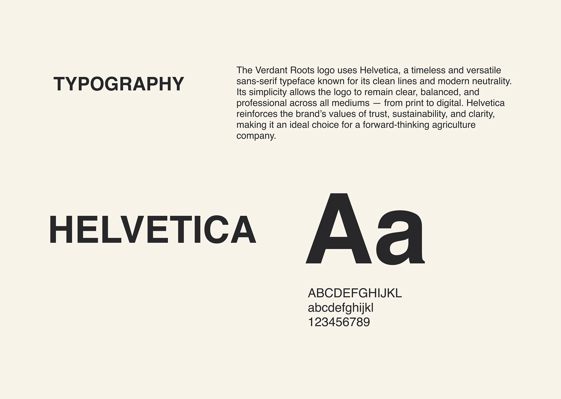 The elegant and legible fonts chosen for Verdant Roots reflect professionalism and organic simplicity.
