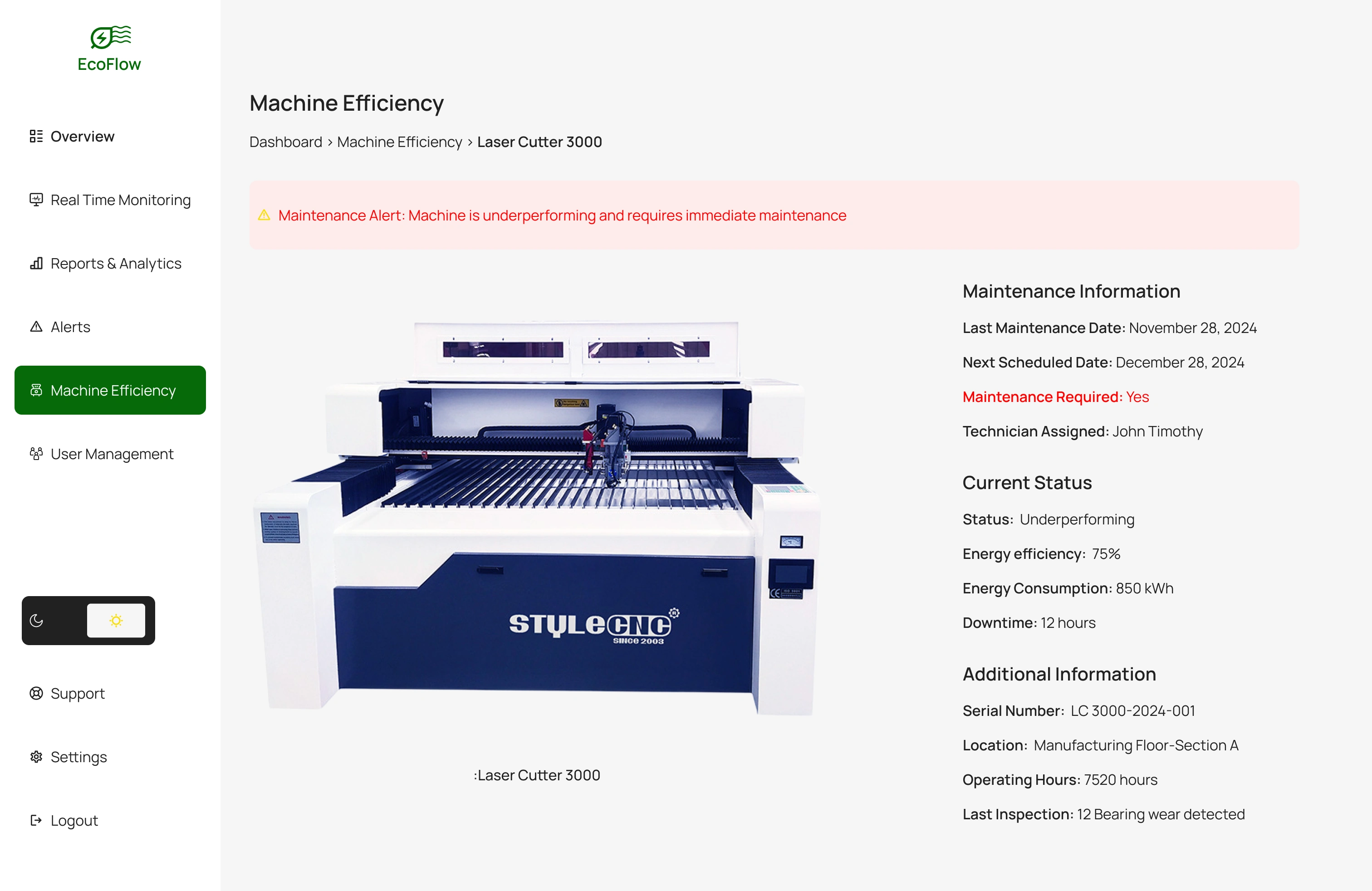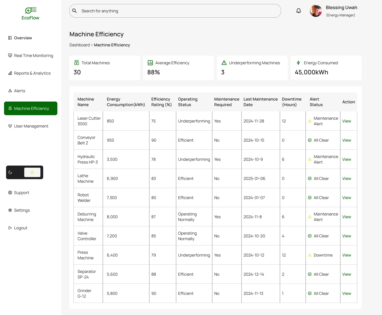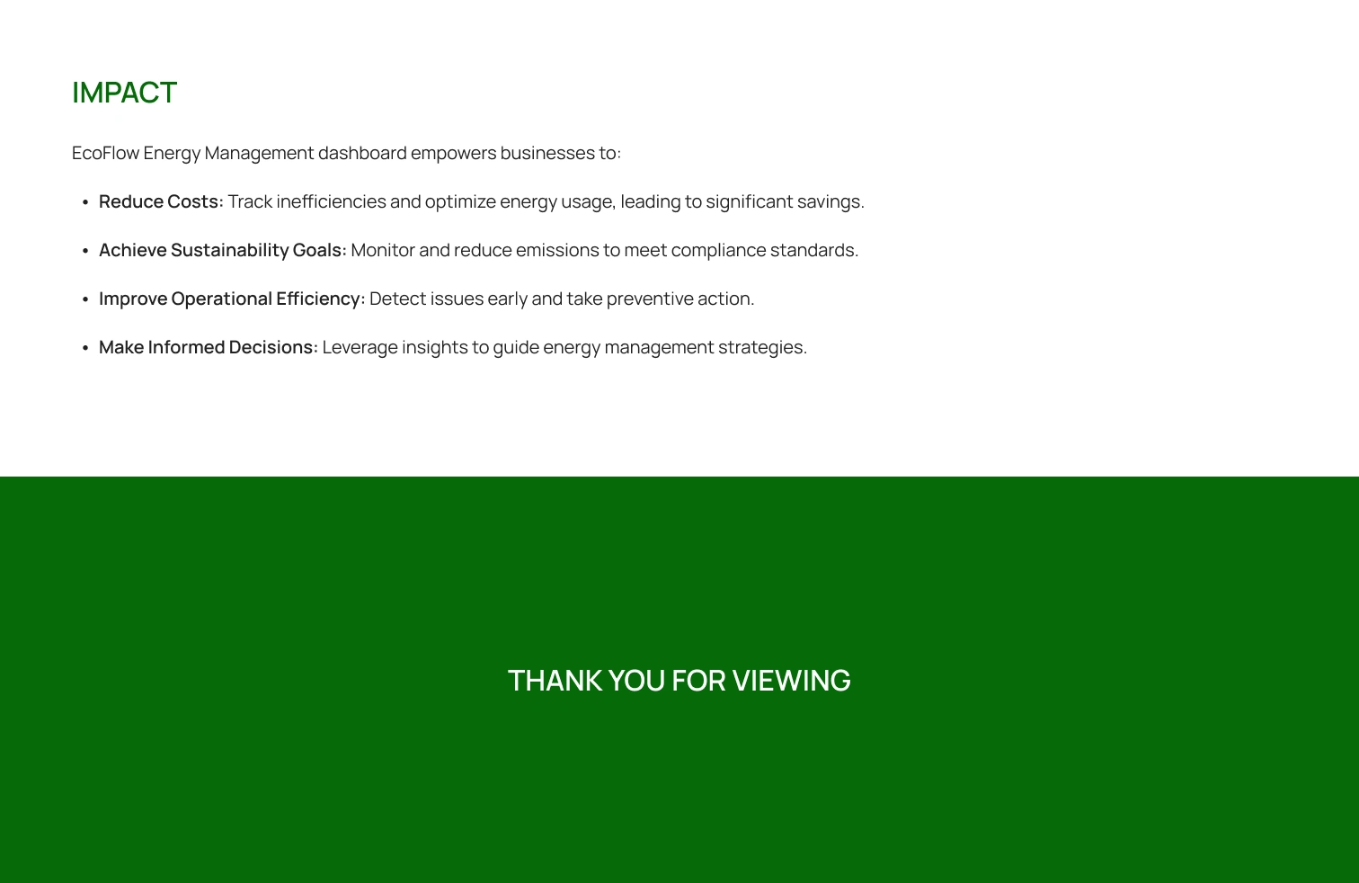 The EcoFlow Energy Management Dashboard is a comprehensive solution designed to address the challenges of energy inefficiencies in industrial operations.
