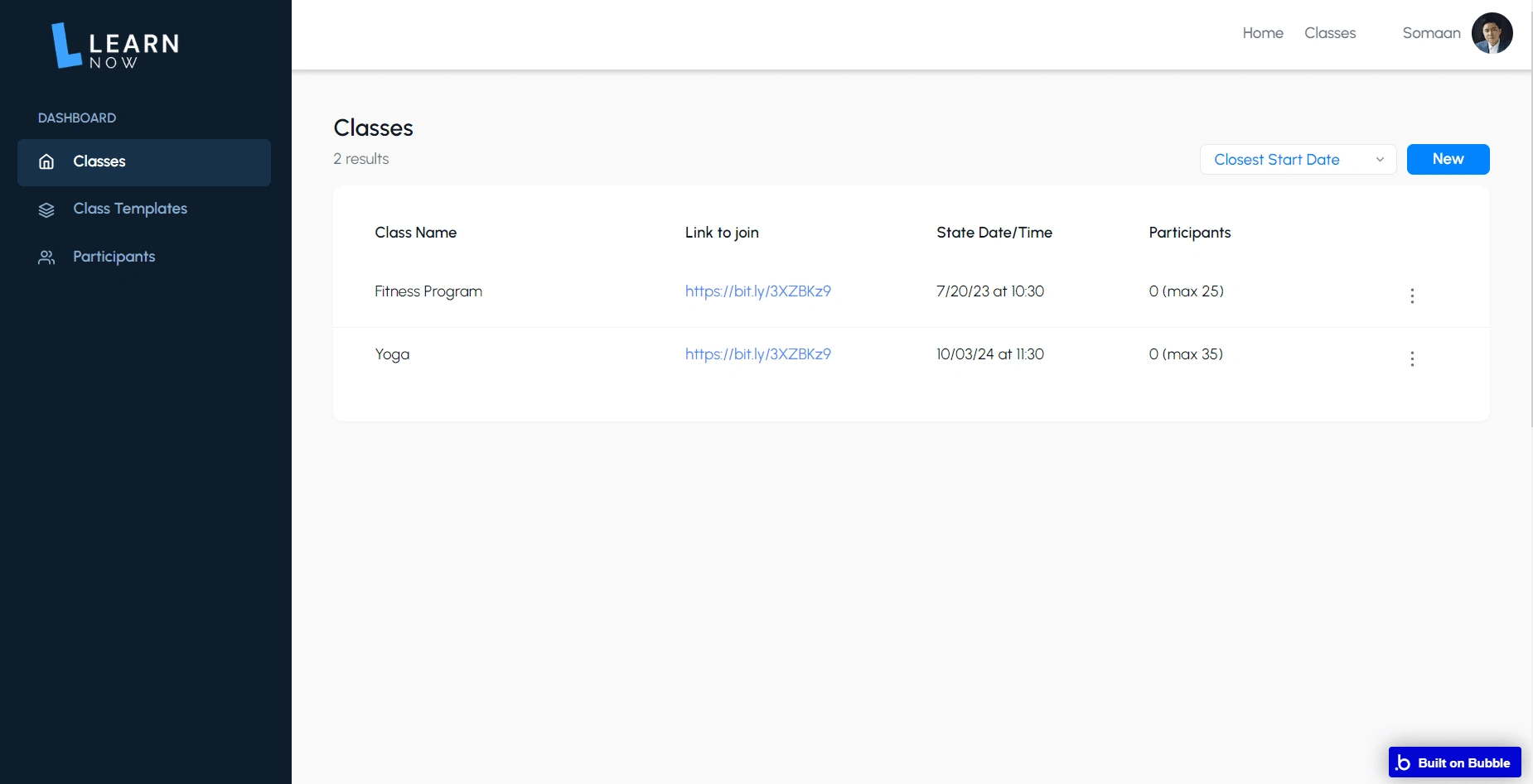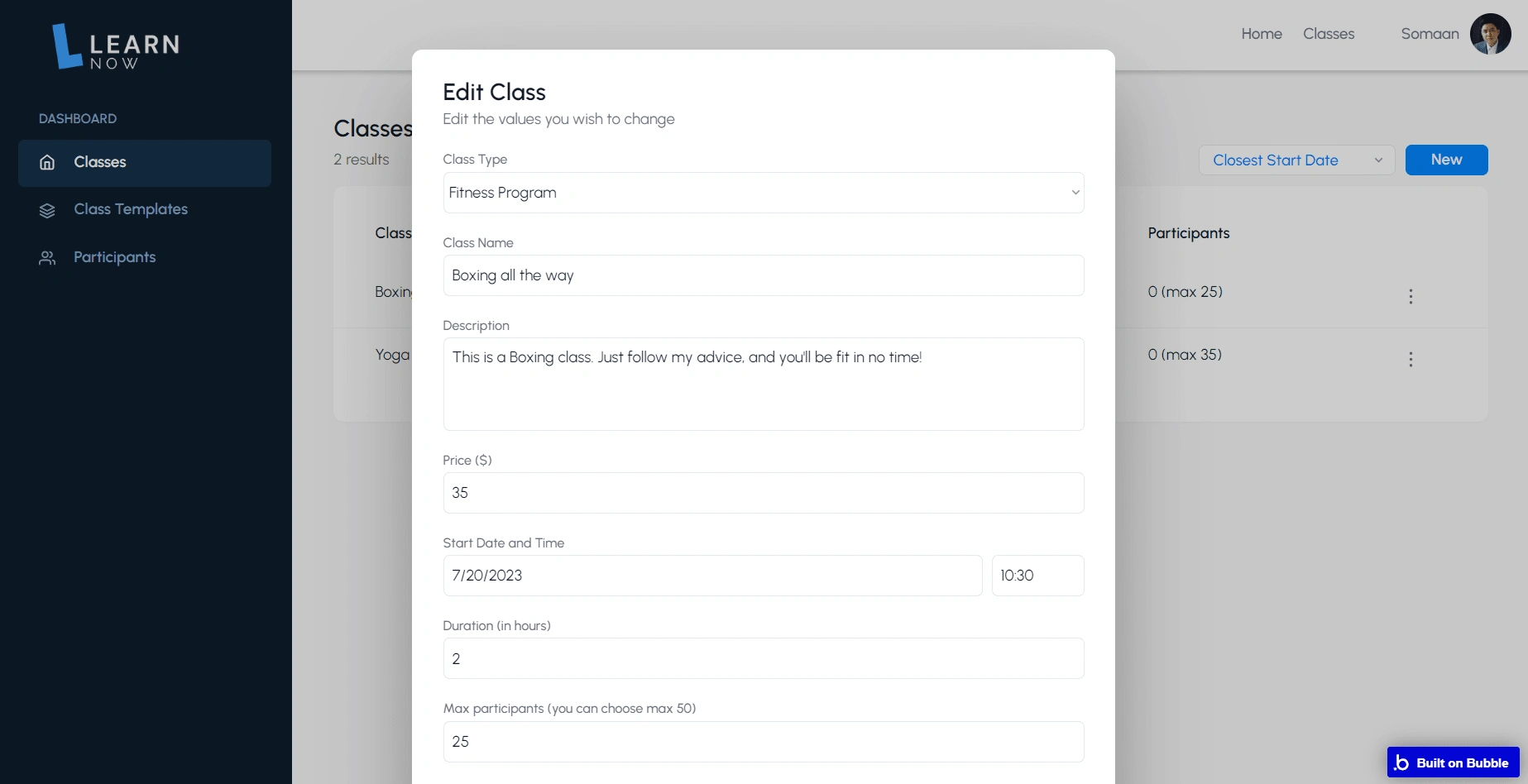 An easy-to-use functionality to add new classes from the Instructor's backend
