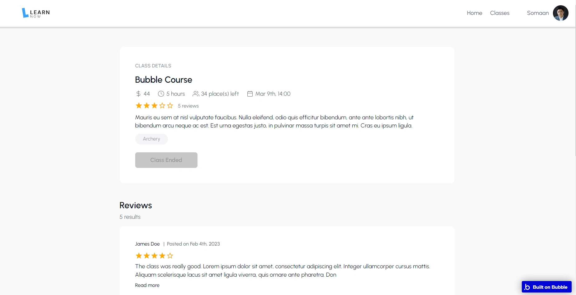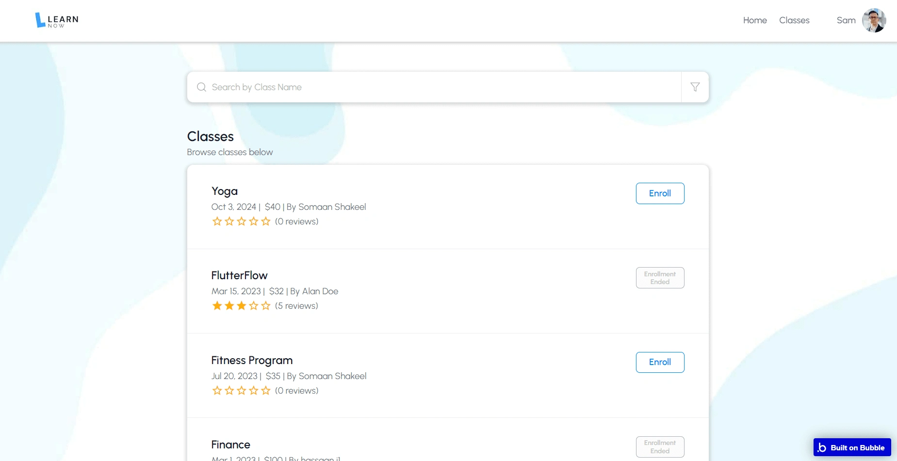 Further details of a class are provided once clicked. Students can even give reviews for the classes they have attended