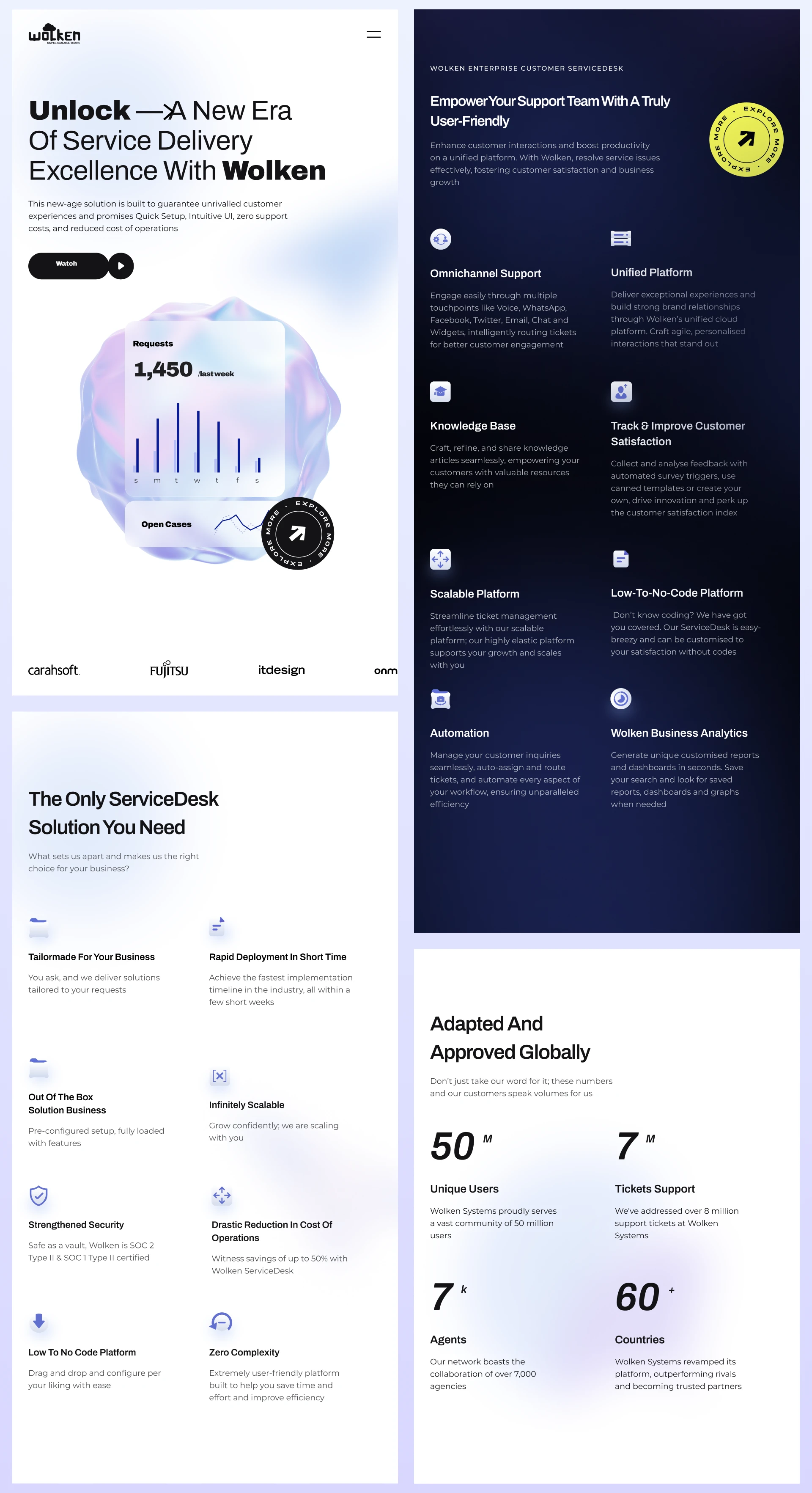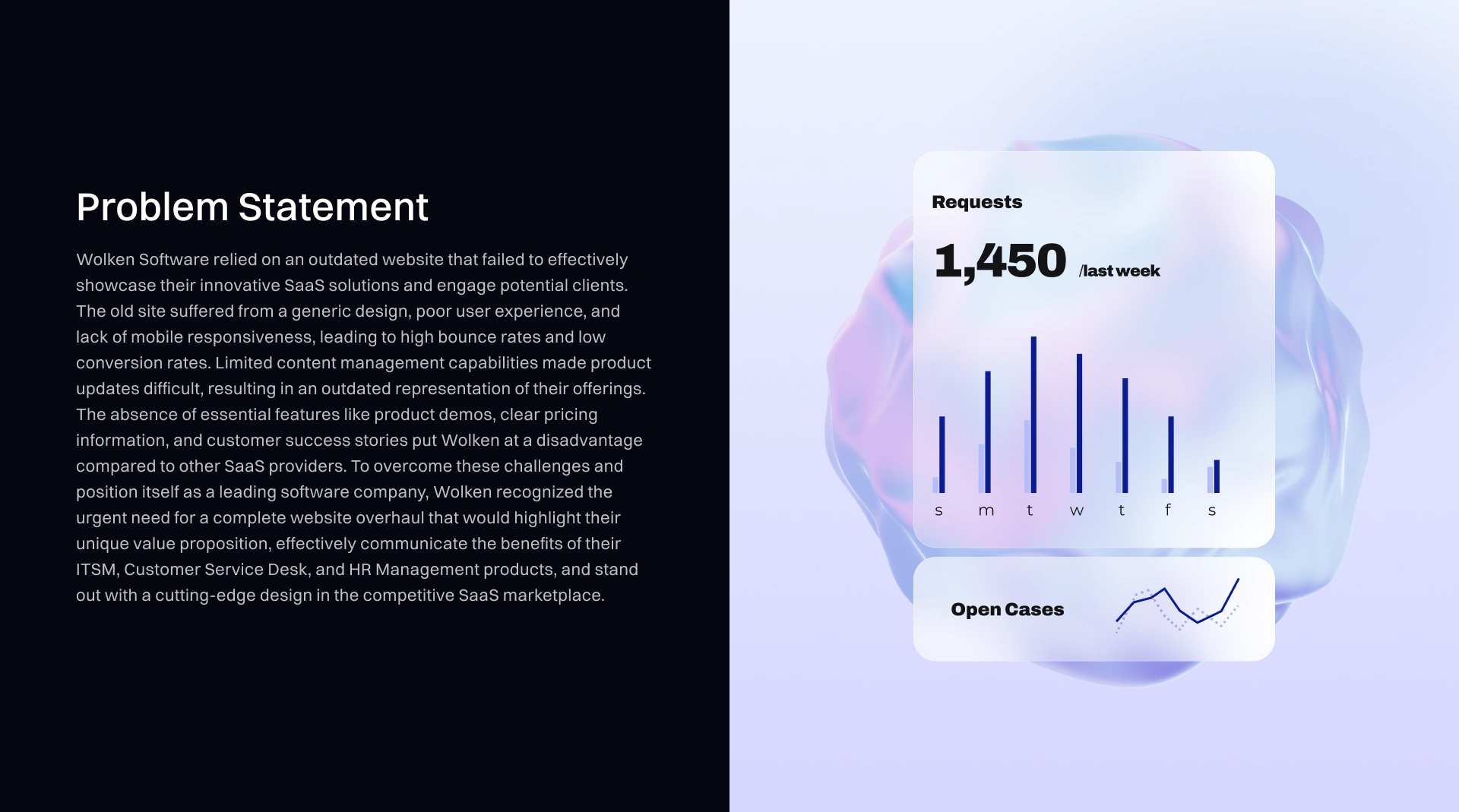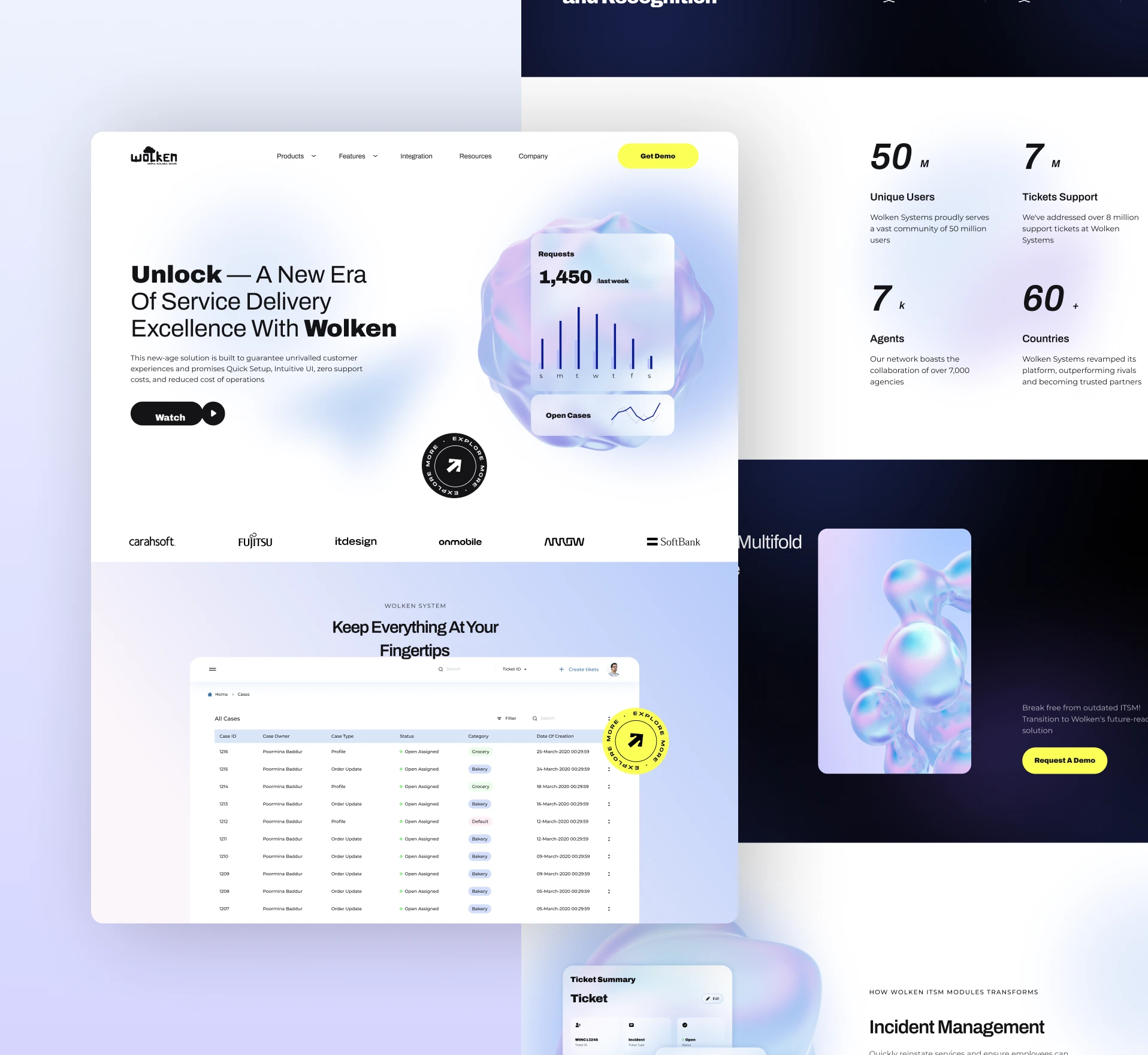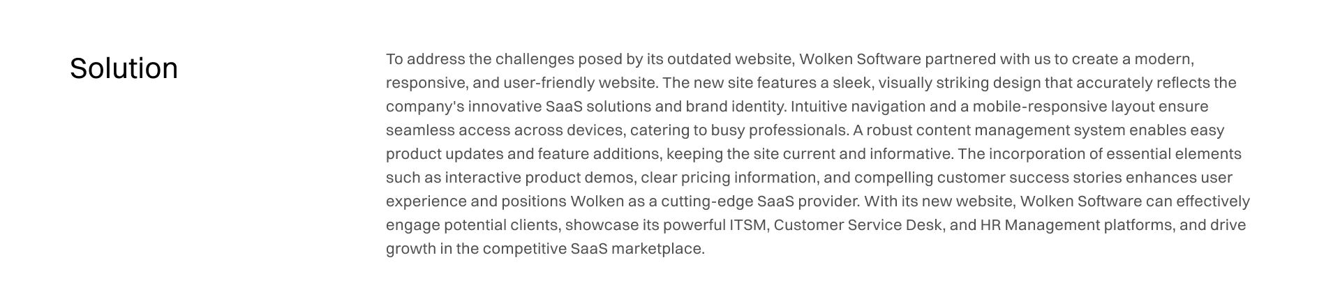Complete website redesign for Wolken Software's SaaS platform. Modern, mobile-responsive site with product demos, pricing info, and success stories.
