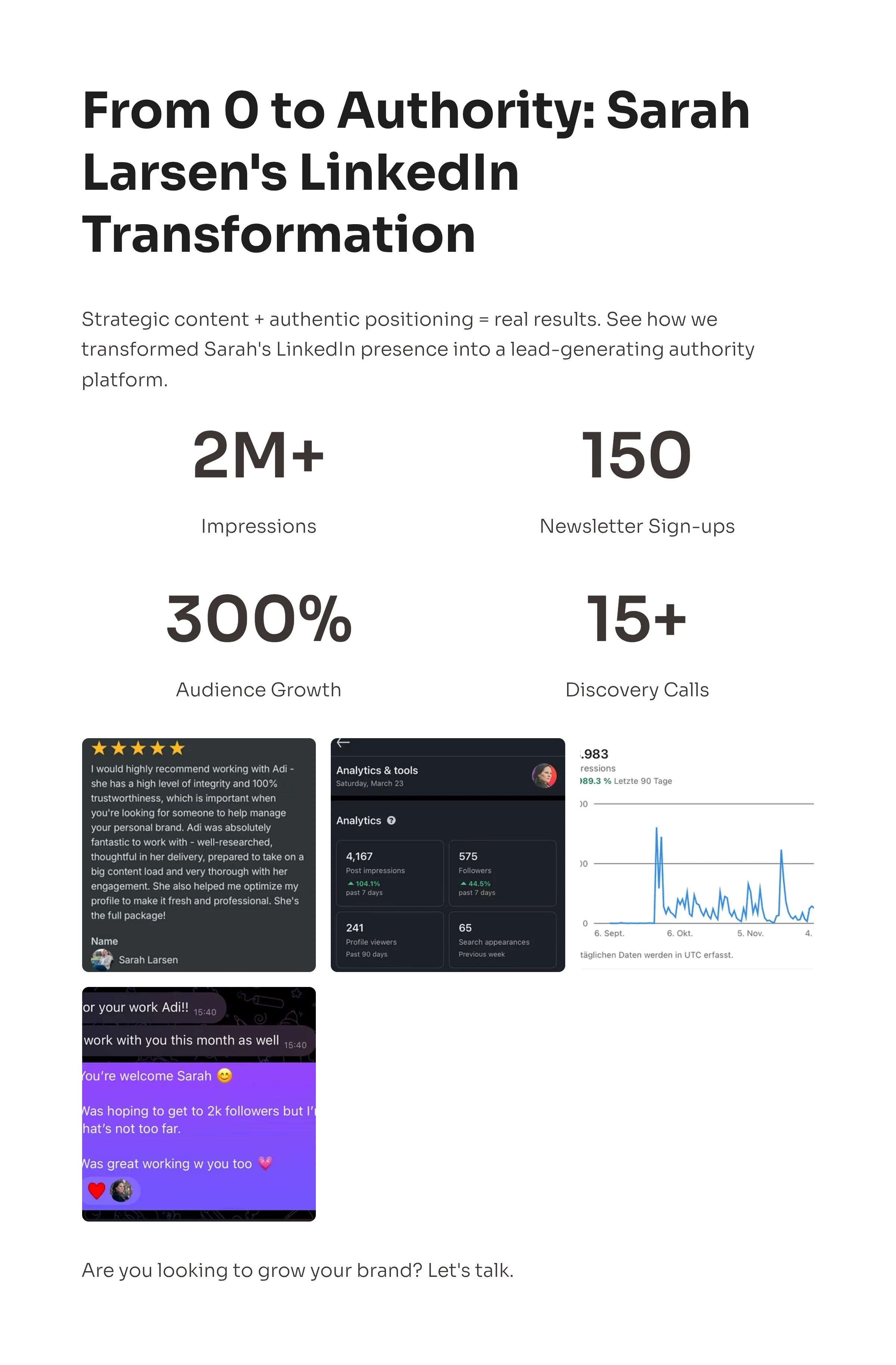 I partnered with her as her ghostwriter, positioning strategist, and content manager to amplify her voice and create a consistent system for visibility and conversions.