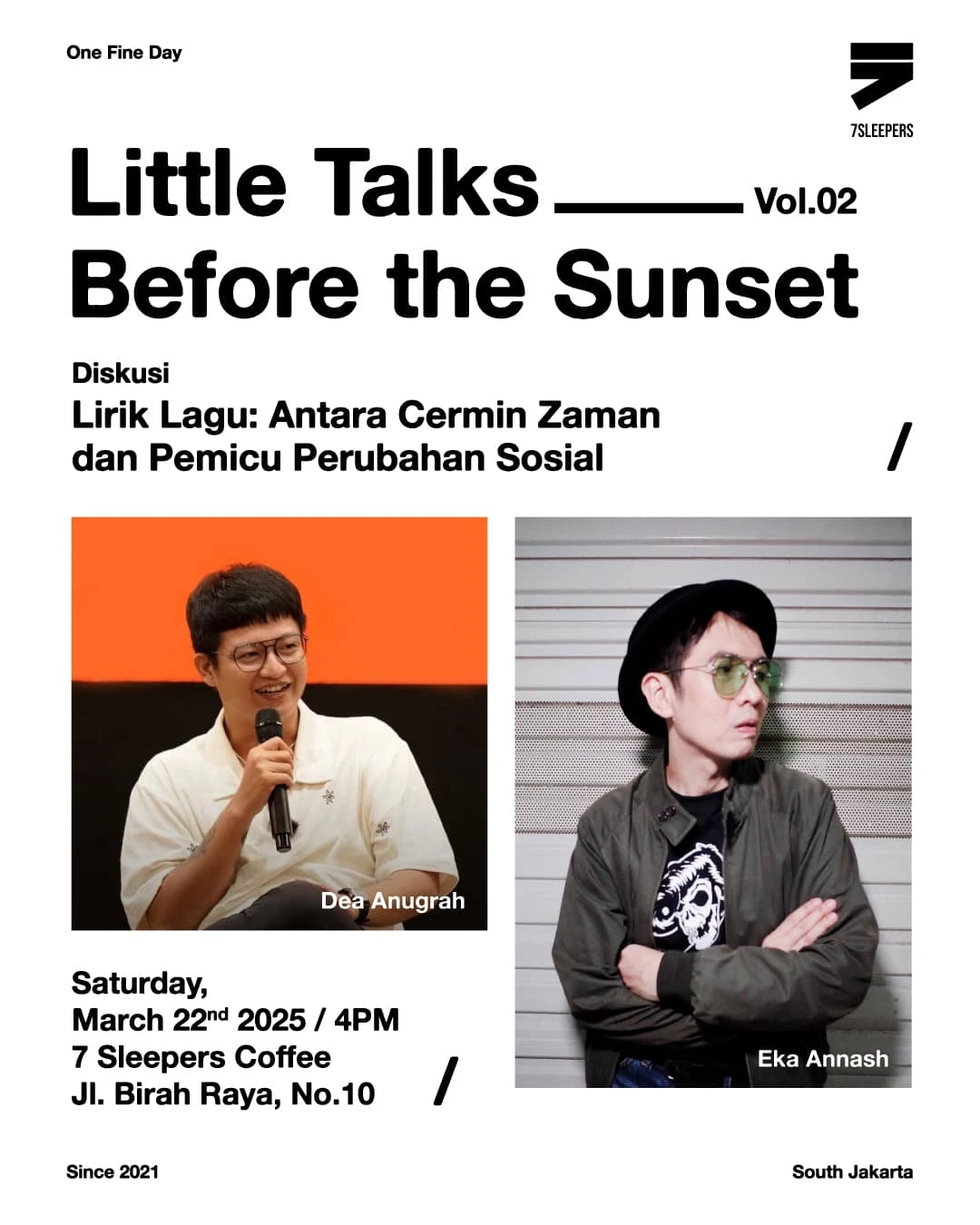 Little Talks Before the Sunset Vol.02 is a casual, thought-provoking discussion event that explores the impact of song lyrics on social life.