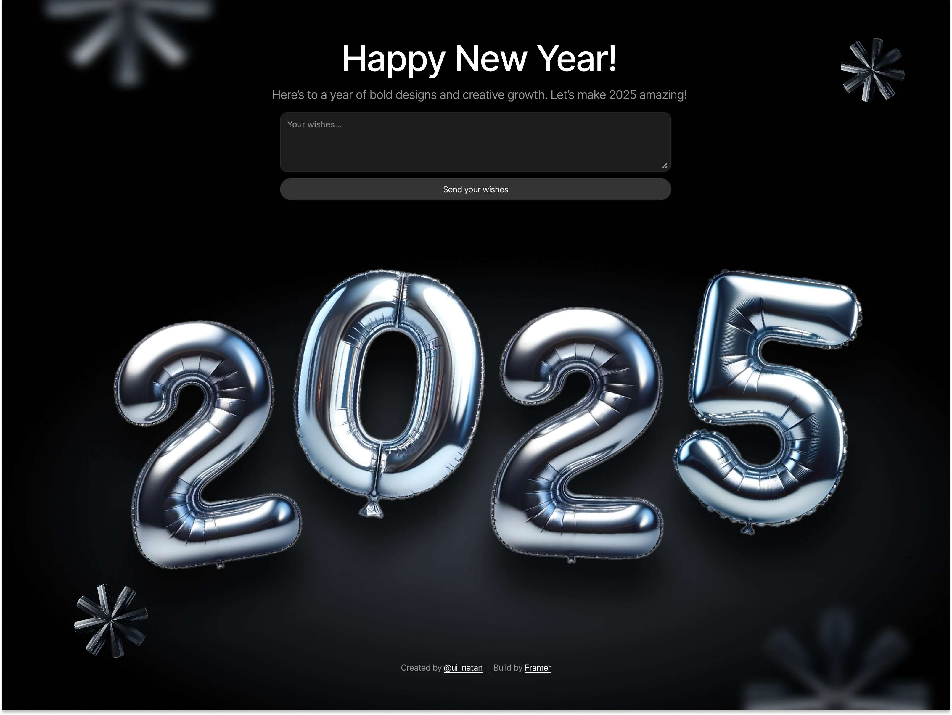 UI/UX design of a greetings concept for the new year 2025. The design allows you to send your wishes.Design, animation and development made in Framer