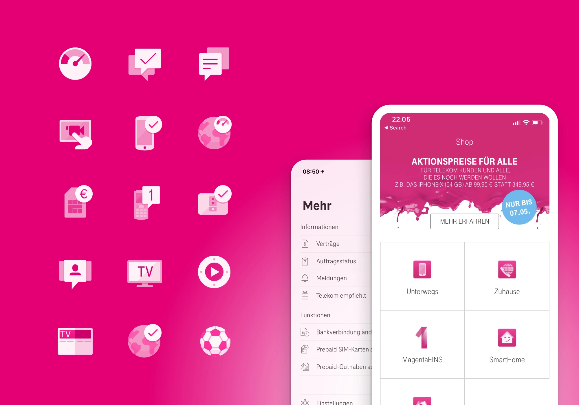 Deutsche Telekom's existing icon library was becoming outdated. With rapid digital transformation and a company-wide shift towards Design Thinking, there was a clear need to establish a central brand portal, consolidating assets, and rebuilding the icon system from the ground up – making it accessible and scalable across the entire organisation.