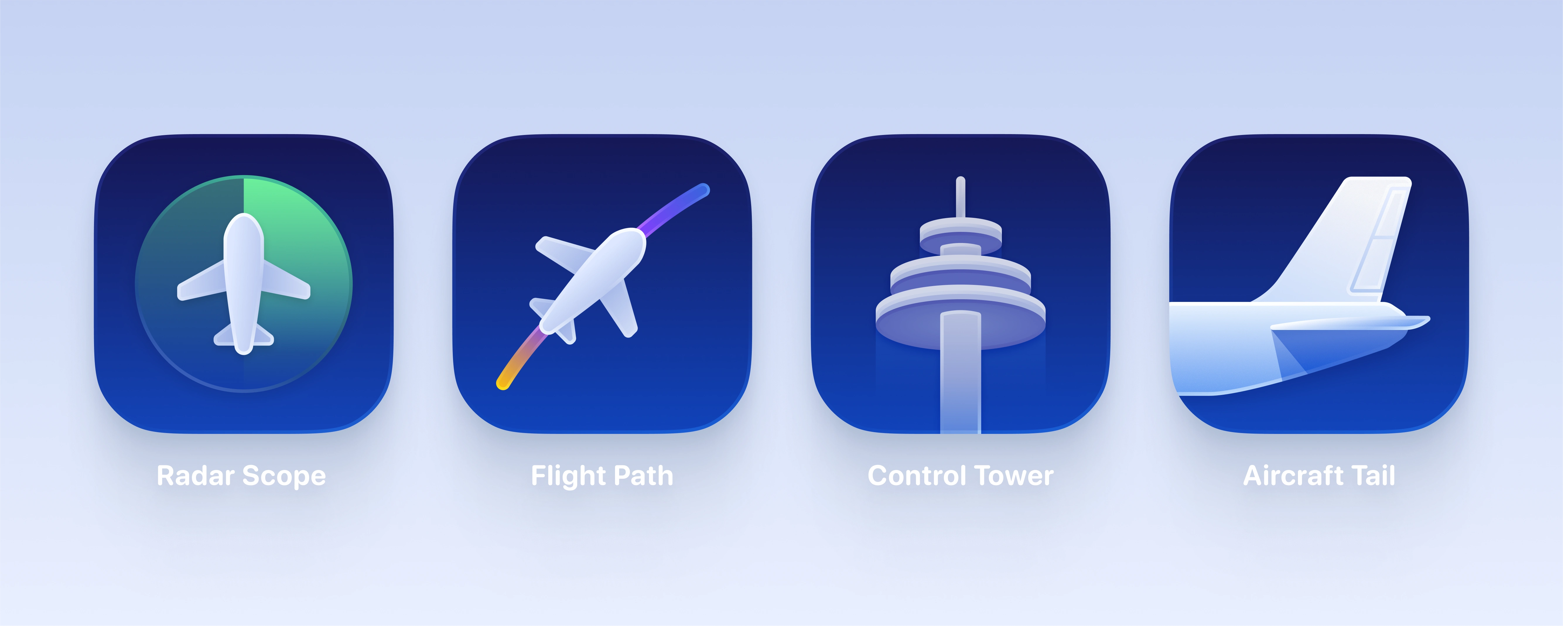 A venture-backed aviation tracking startup needed a premium app icon that would stand out in the App Store while maintaining versatility across iOS contexts.